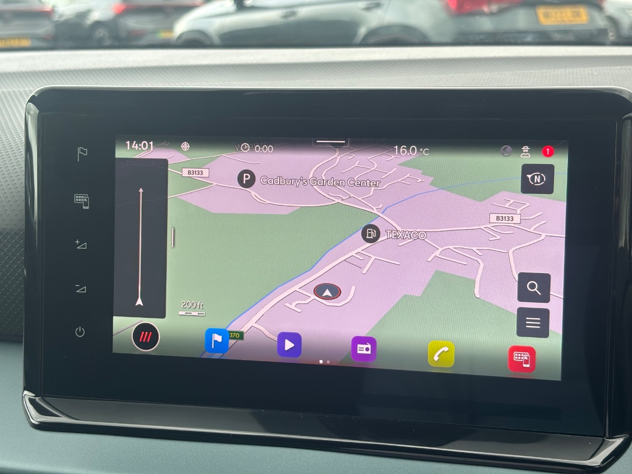 "Flat bottomed leather effect steering wheel",