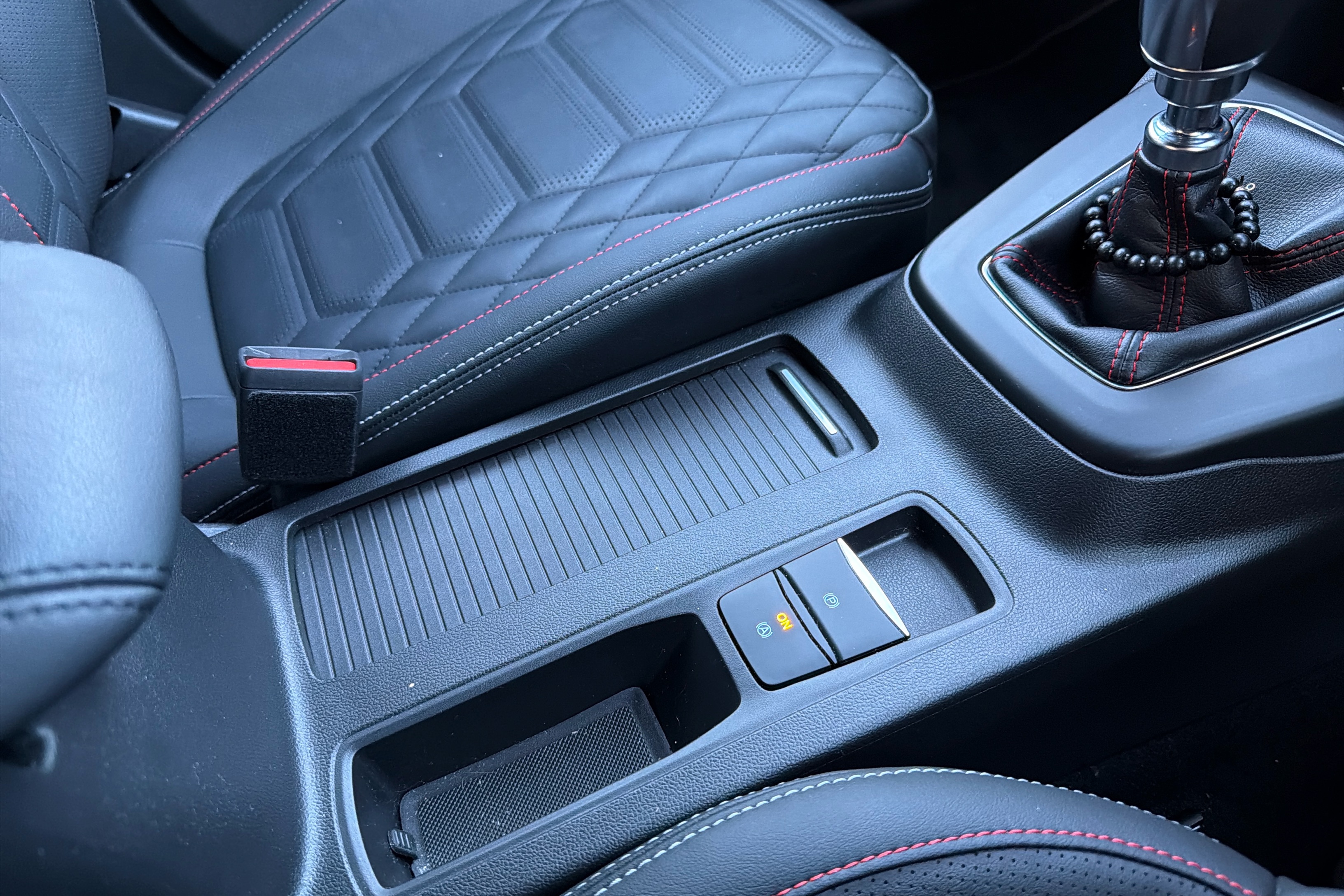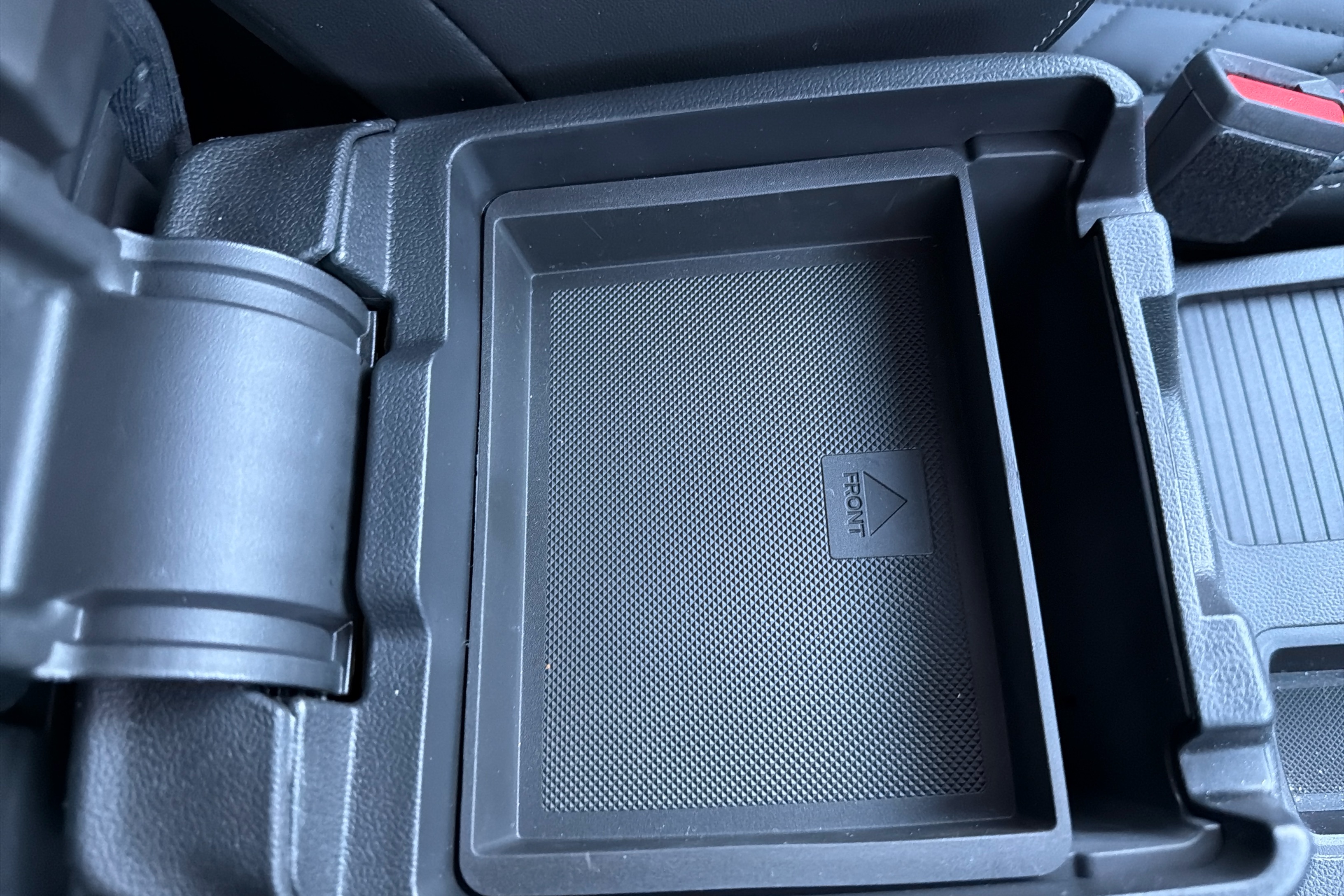 "Center console and armrests in the front seats",
