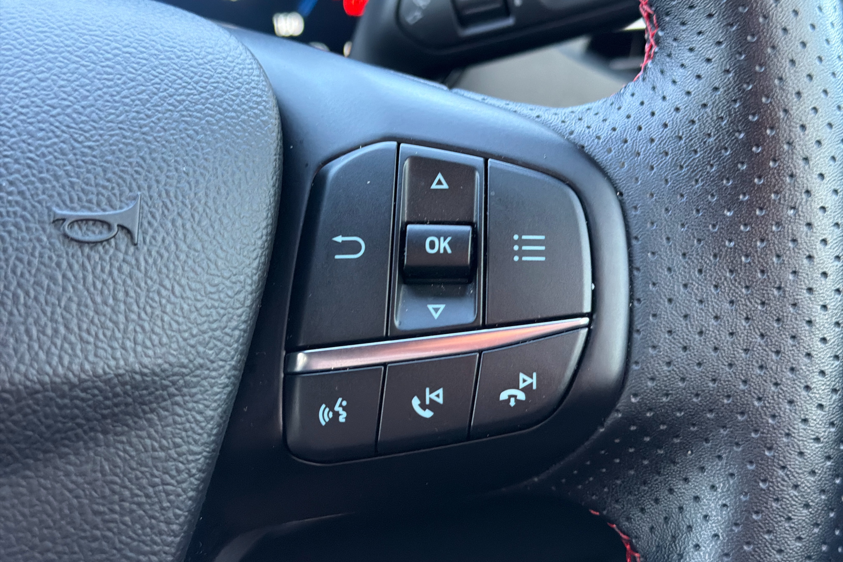 "Leather wrapped multifunction steering wheel with decorative aluminum inserts",