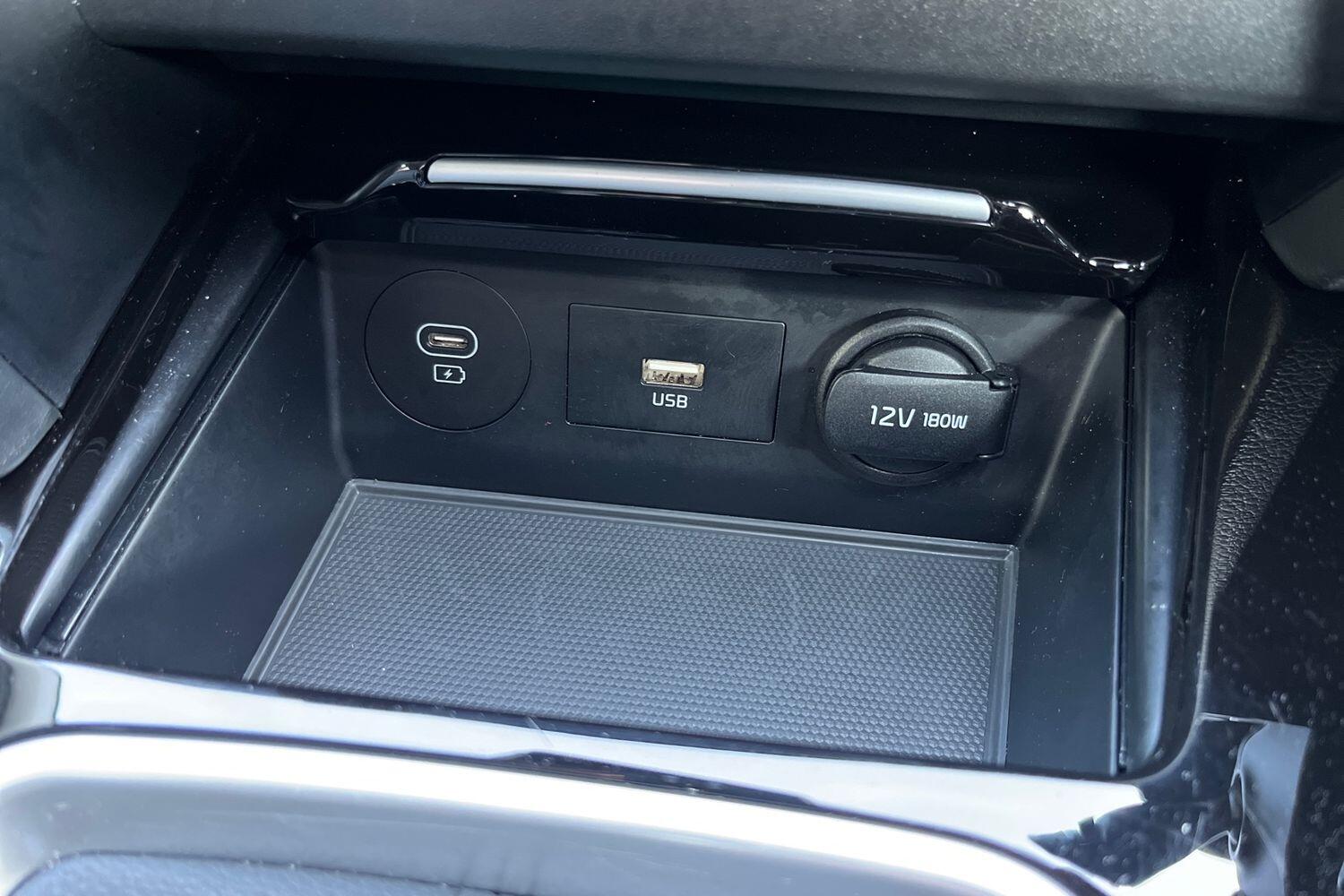 "2 USB-C ports in the front, 2 USB-C charging sockets on the center console in the rear",