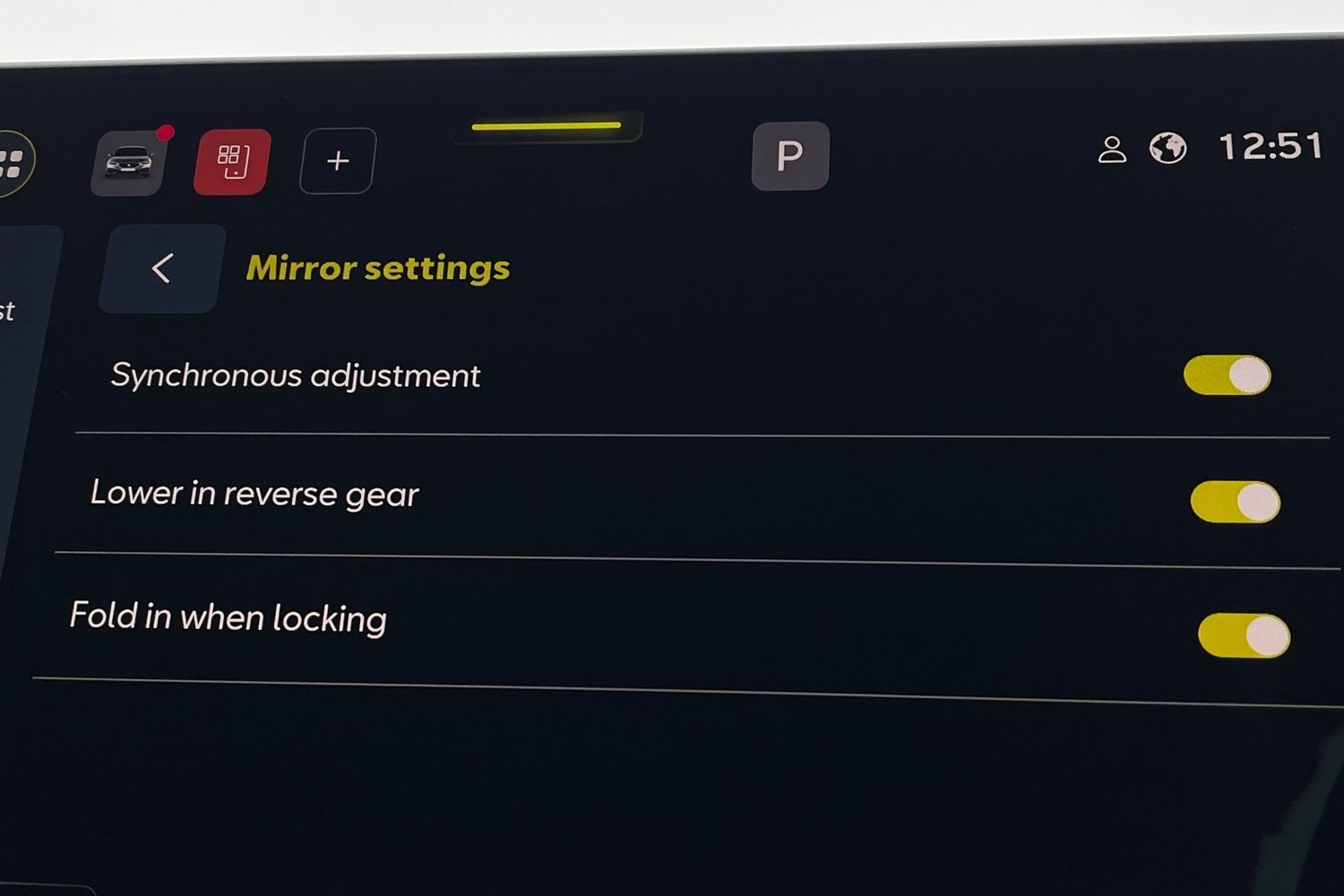 "Power folding adjustable/heated exterior mirrors and front passenger exterior mirror lowering function",