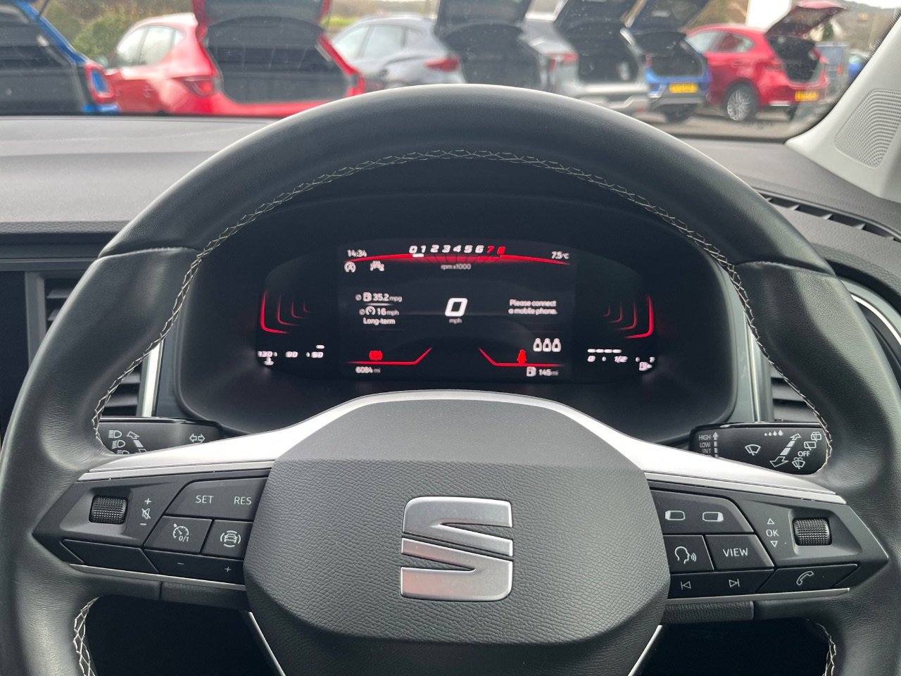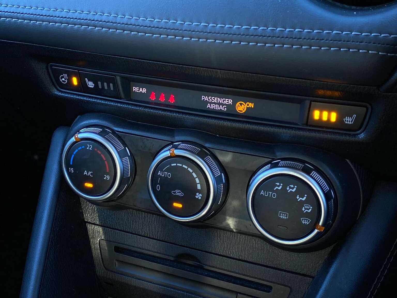 "Copper stitching on dashboard trim"