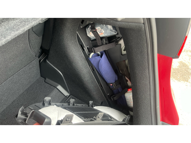 "Rear armrest with storage + through load",