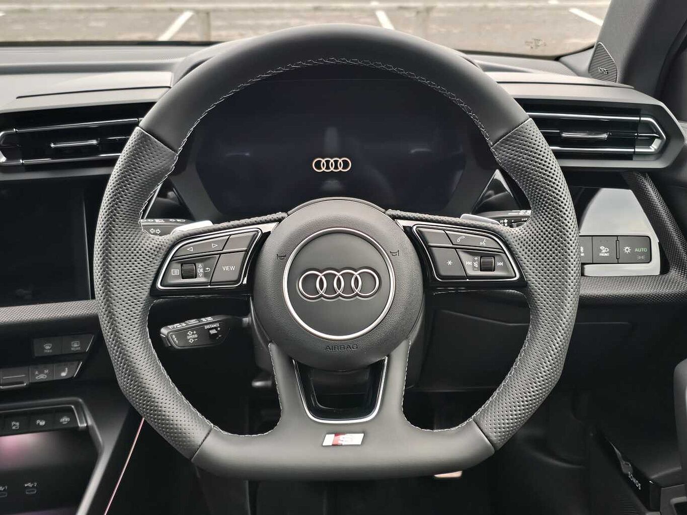 "features": "Adaptive cruise control (ACC), Adjustable speed limiter, Audi drive select (Auto, Comfort, Dynamic, Efficiency and Individual), Audi virtual cockpit plus - 12.3\" full HD resolution dynamic digital instrument cluster, Automatic start/stop system with recuperation, Bluetooth interface, Camera based traffic sign recognition, Collision avoidance assistant, Driver attention and fatigue detection, e-Call (emergency call), Electromechanical power speed sensitive steering, Emergency assist, Intersection assist, Lane departure warning system, MMI Navigation Plus with high resolution 10.1\" colour touch screen display, Park Assist with parking system Plus, Reversing camera, Service indicator, Smartphone interface with app store includes wireless Apple carplay, Android auto and Amazon alexa integration, Trip computer, Voice control system with natural language interaction, CCS socket for DC charging, Charging cable for public charging, mode 3 (type 2), 32 A, Standard suspension, Type 2 socket for AC charging, Audi Phonebox light with wireless charging, Audi sound system - 10 loudspeakers including centre loudspeaker and subwoofer, DAB Digital radio, USB ports with charging function in the rear, Acoustic glass windscreen, All weather light, Aluminium window trim, Auto dimming frameless rear view mirror, Automatic dynamic range control, Body colour exterior mirrors, Dipped beam, main beam, position light and turning light, Electrically adjustable/heated/folding/auto dimming door mirrors with integrated LED indications + kerb view function for passenger side, Exterior model badging, Front and rear side air inlets in grained matt black with dark liquid chrome frame, Front electric windows, Front radiator grill in high gloss dark chrome, Heat insulating glass windscreen, Illuminated door sills with aluminium inserts at the front with S logo, Intersection light, Invisible tailpipe, LED 3rd brake light, LED brake lights, LED daytime running x3, LED headlights with LED rear lights and dynamic rear indicators, LED rear number plate lights, LED reverse light, LED tail lights, Light and rain sensors, Manoeuvring light, Motorway light, Privacy glass - dark tinted rear window, rear door and side windows, Rear diffuser and grill in grained matt black with inlay in dark liquid chrome, Rear electric windows, Rear side wing doors, Rear wiper, S line bumpers, S roof spoiler, Side S line emblems on front wings, Side sill trim in dark liquid chrome, Static cornering light, 12V socket and storage compartment in front centre console, 3 seat bench in 2nd row, 3 spoke flat bottomed leather multifunction sport steering wheel with gear shift paddles, 3-zone deluxe automatic air conditioning, 4 way electrically adjustable lumbar support for driver and front passenger, 40/20/40 split folding rear seat bench, Black cloth headlining, Black front and rear floor mats, Convenience auxiliary air conditioning, Front and rear centre armrest in artificial leather with contrasting stitching on armrests and instrument panel, Front and rear headrests, Heated front seats, Height and reach adjustable steering wheel, i-Size child seat mounting on the front passenger side and outer rear seats, i-Size and top tether on the outer rear seats, Manual boot compartment lid, Manually adjustable front seats, Rear centre armrest with cupholder, S badging on the steering wheel, Seat side bolsters, Single front passenger seat, Stainless steel pedals and front footrest in black, Twin leather upholstery with front sports seats S embossed logo, Aluminium interior elements pack - A3, Multi-coloured LED interior lighting package with Multi-coloured contour lighting of instrument panel - A3, 3x3 point rear seat belts, Acoustic vehicle alerting system, Driver and front passenger airbag with passenger airbag deactivation, Electronic Stabilisation Control (ESC) including ABS, ASR and EDL, First aid kit with warning triangle and 2 safety vests, Front side airbags with head airbags and interaction airbag, Hill hold assist, Pre-sense front with pedestrian and cyclist detection, Seatbelt monitoring, Tyre pressure loss indicator, Anti theft alarm, Anti-theft wheel bolts, Electronically operated child locks, Immobiliser, Black dashboard, Inlay in dark aluminium spectrum, Tyre repair kit, ",