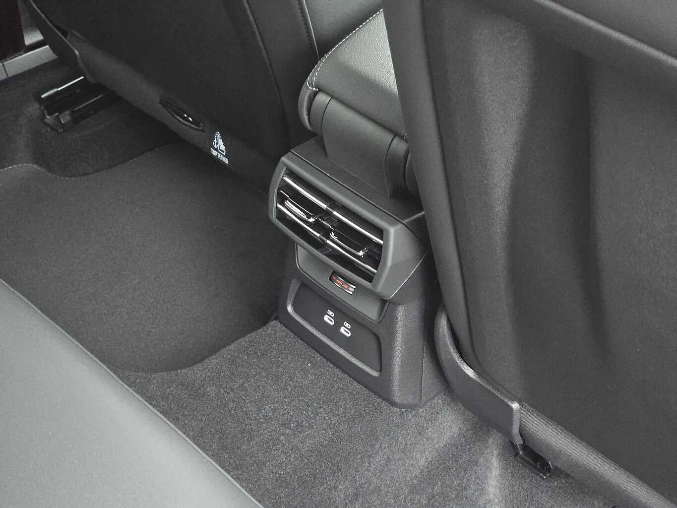 "Flying console with central storage, sliding armrest and 2 rear air vents",