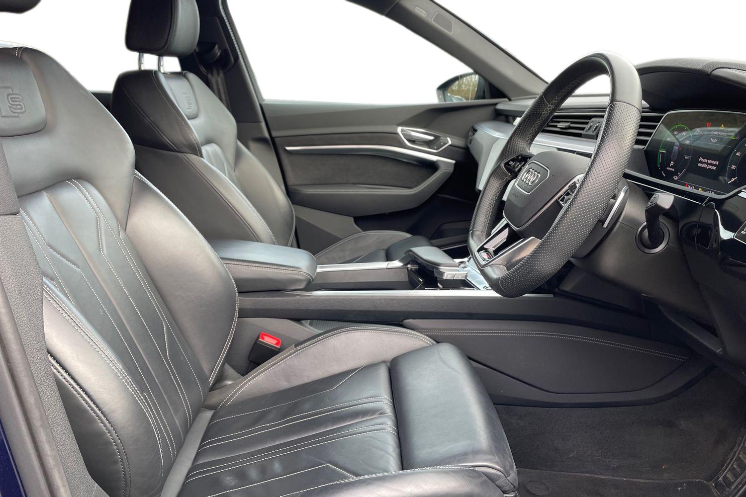 "features": "Audi connect safety and service (e-call), Audi drive select, Audi Smartphone Interface with wireless functionality, Audi virtual cockpit, Bluetooth interface, MMI navigation plus with MMI touch + Twin touch screens with haptic feedback, Parking system plus with 360 degree sensors and function on demand preparation, Power operated tailgate, Progressive steering, Rear view camera, 11KW onboard charger, AC and DC charging access point on drivers side and second AC charging access point on passenger side, Adaptive sport air suspension, Compact e-tron charging system, Household plug type G (GB), Industry plug CEE 32 A/230 V/6 h/long + straight, Mode 3 AC charging cable 22 kW, Quattro all wheel drive, 2 USB-C ports with charging functionality in the rear, Audi sound system with 6 channel amplifier, 180 watt amplifying capacity and 10 loudspeakers including subwoofer, DAB Digital radio, 3rd brake light, Audi matrix LED headlights and dynamic front and rear indicators with coming and leaving home animations, Black roof rails, Body colour bumpers, Daytime running lights, Frameless auto dimming interior rear view mirror, Front and rear illuminated door sill trims with aluminium inlays and S logo in front, LED rear lights, Rear boot lip spoiler, Rear side wing doors, Rear wiper, Side and rear window privacy glass, Windscreen with acoustic glazing, 3 bench rear seats in 2nd row, 3 rear head restraints, 4-way lumbar support for front seats, 40:20:40 split folding rear bench seat, Black cloth headlining, Comfort front centre armrest, Electrically adjustable front seats - driver seat with memory, Front head restraints, Front passenger seat, Front/rear floor mats, Heated front seats, ISOFIX child seat mounting for front passenger seat with airbag deactivation, Isofix child seat mounting points on outer rear seats, Luggage compartment cover, Luggage compartment floor, Manually adjustable steering column, Operating buttons in black + glass look with haptic feedback, Sunvisors with illuminated vanity mirrors, Vehicle inlet Combo 2, Black styling pack - E-tron, Extended twin leather pack - E-tron, Gloss styling pack - E-tron, LED interior lighting pack - E-tron, 3x3 point rear seatbelts, Active vehicle alerting system (AVAS), Audi pre sense front and basic, Child locks on rear doors, Seatbelt reminder + electric contact in buckle + advanced safety equipment, Side, front and head airbag system, Tyre pressure warning light, Warning triangle and first aid kit, Anti theft alarm, Anti-theft wheel bolts and wheel loosening detection, Keyless Go, Tool kit, ",
