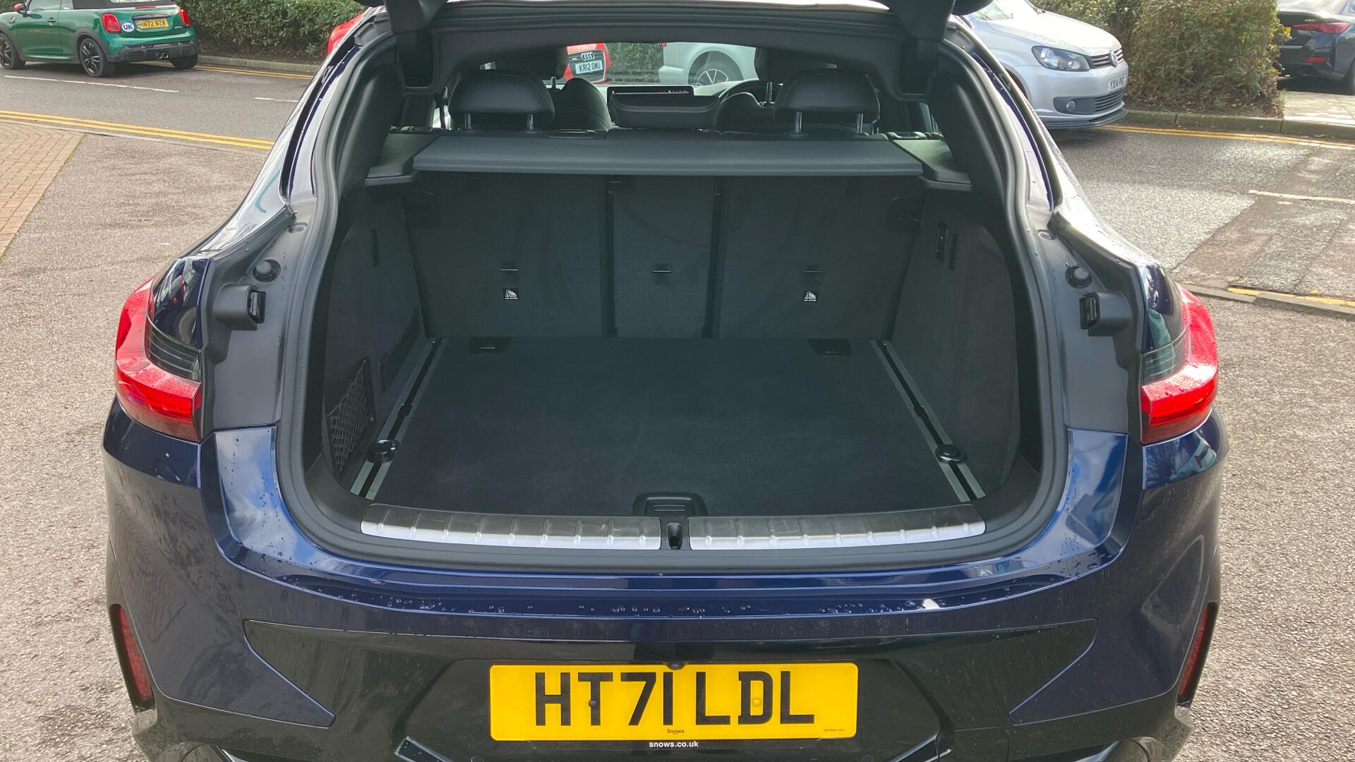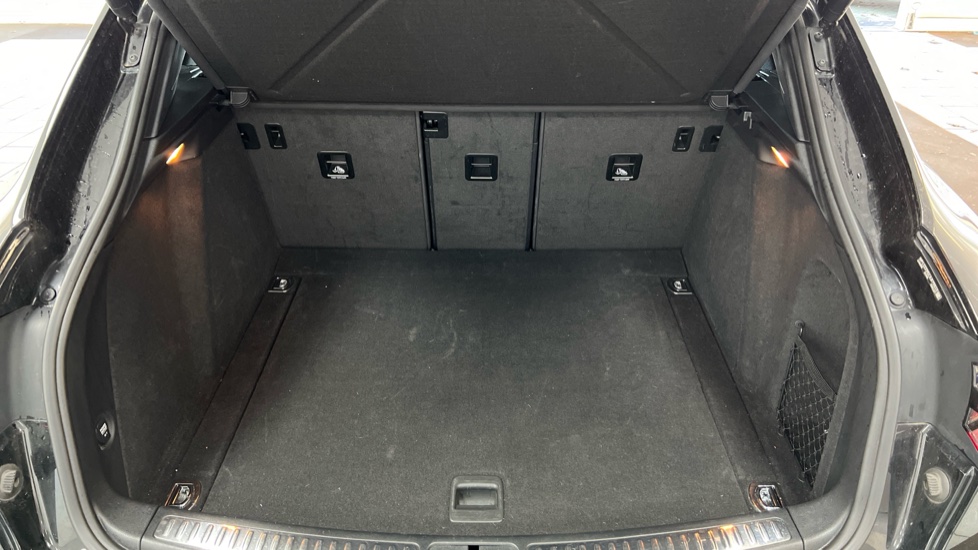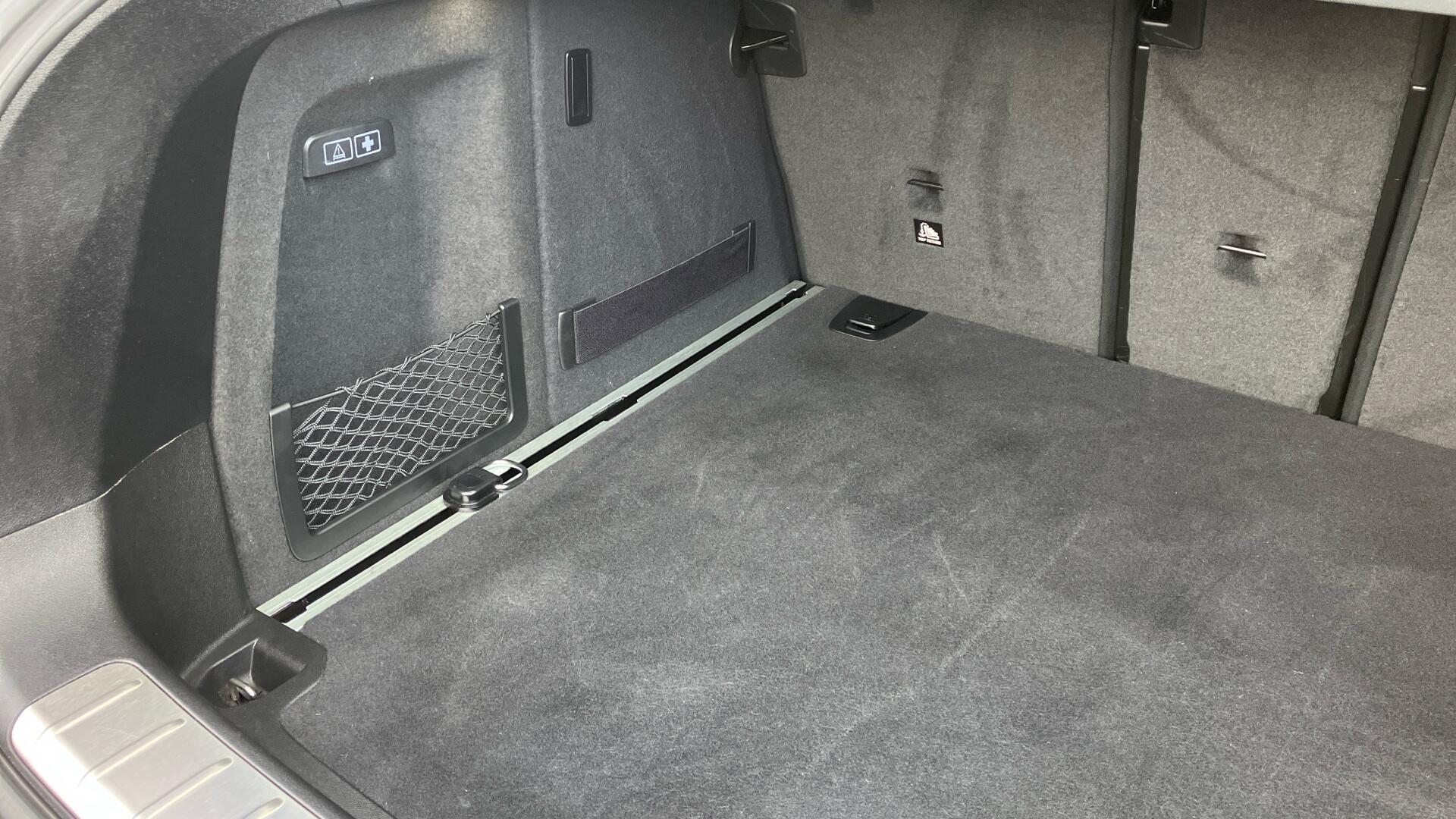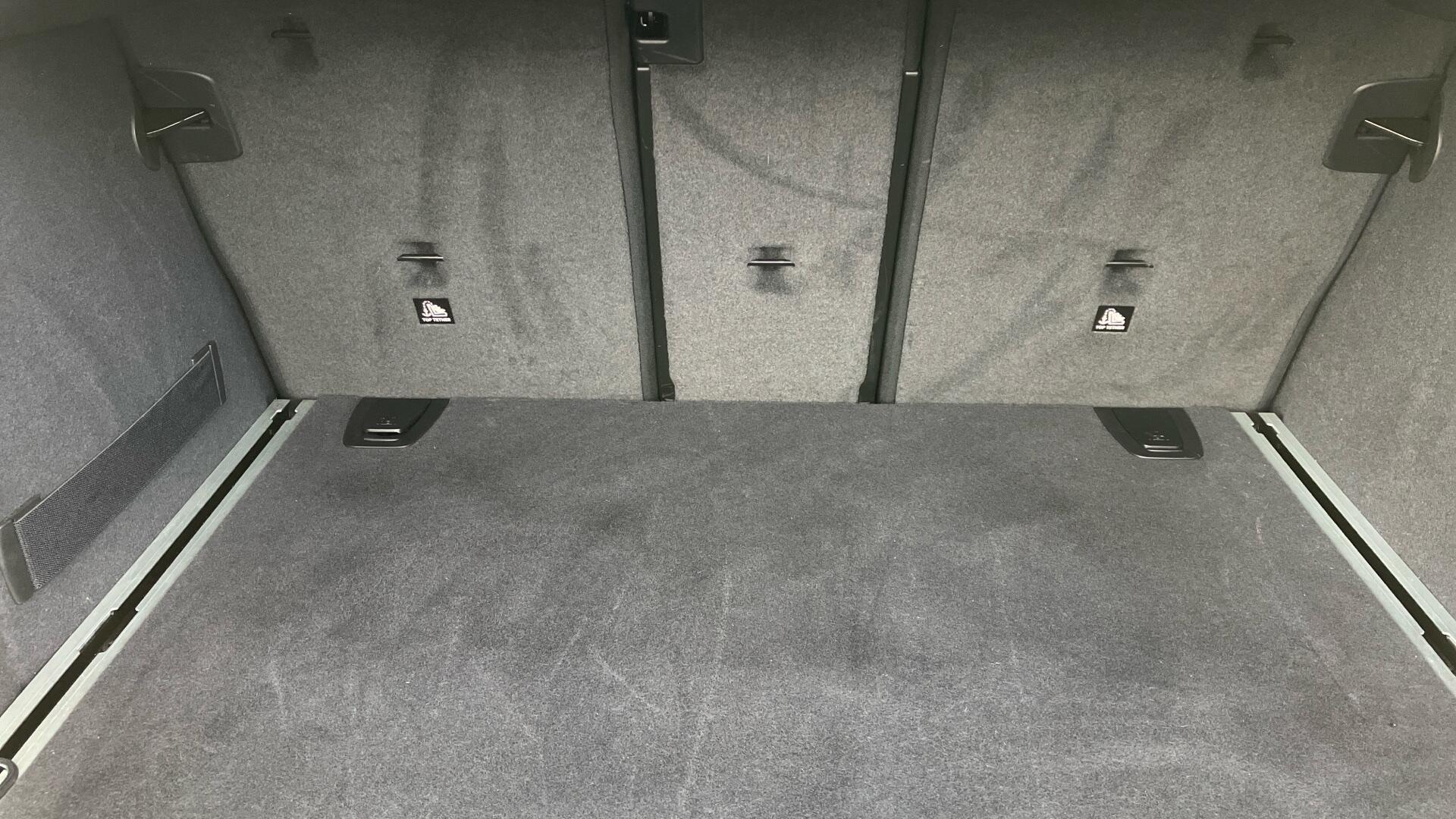 "Luggage compartment for bag hooks on left and right, foldable luggage compartment liner and four lashing eyelets",