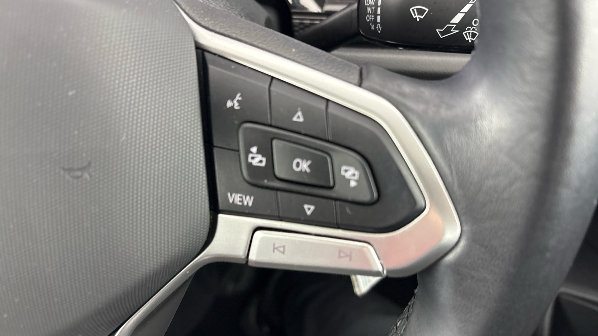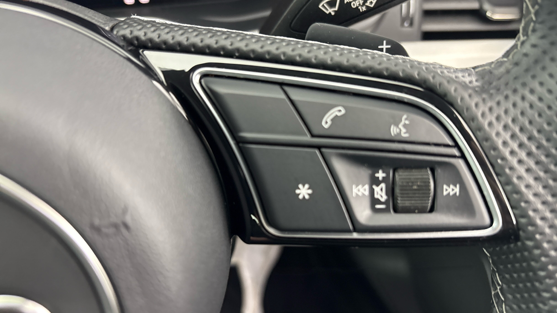 "Premium sensico perforated flat bottomed steering with metal grey stitching",