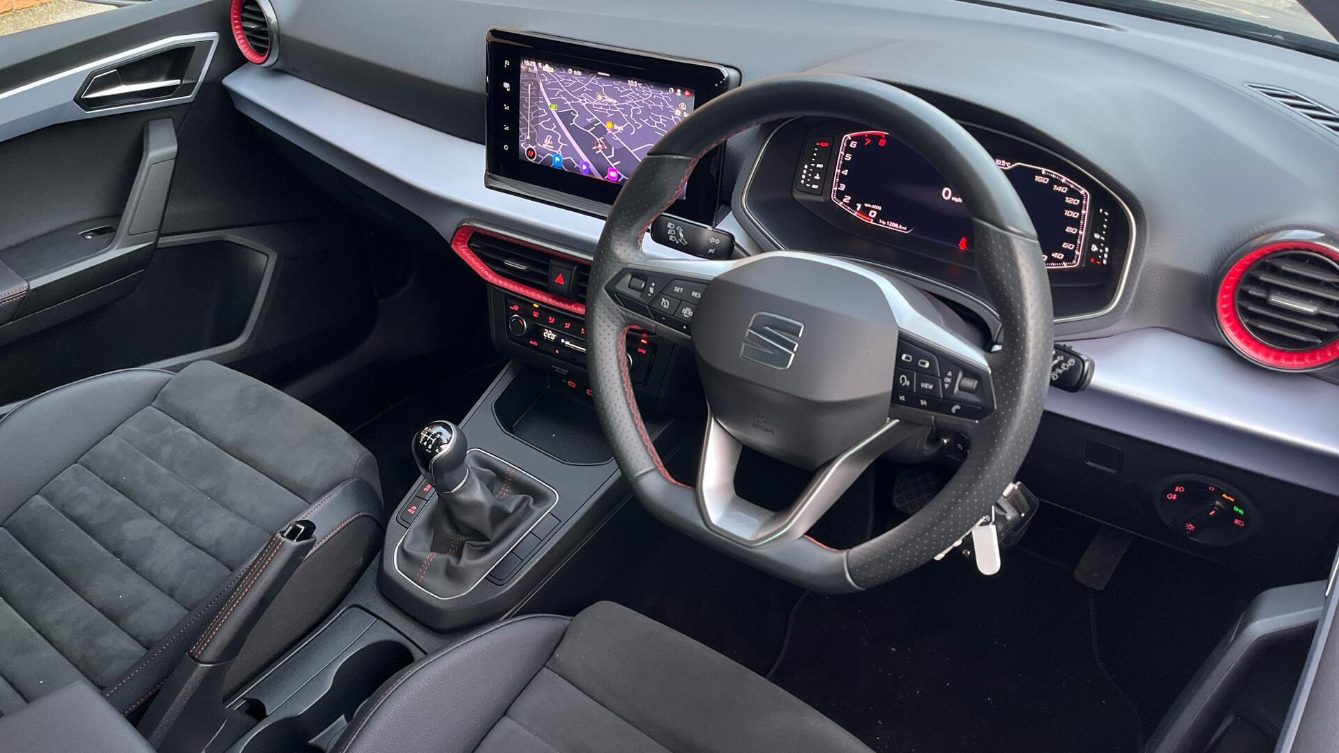 "Premium sensico leather upholstery with metal grey stitching",