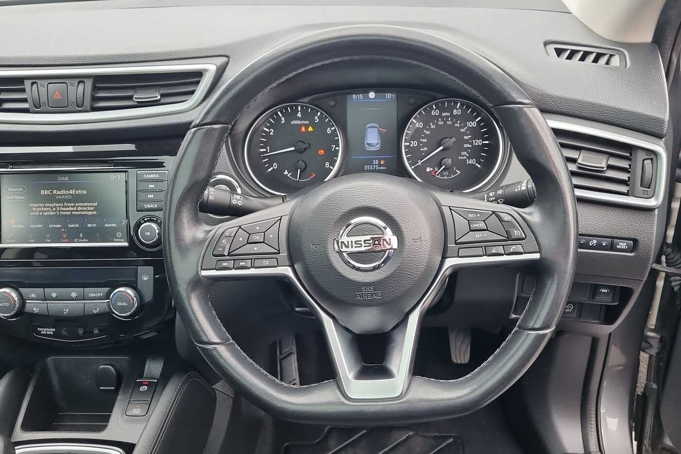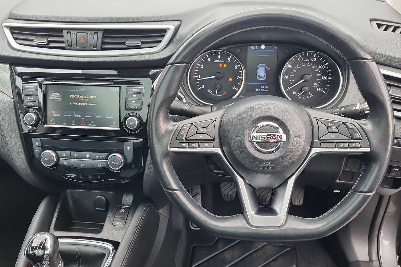 "features": "7\" full colour TFT screen combimeter, Apple CarPlay and Google Android auto, Drive modes select (Eco, normal and sport), eCall emergency call system, Emergency and breakdown call, Front parking sensor, Idle start/stop system, Intelligent lane intervention, Lane departure warning system, Nissan connect 8\" touch screen entertainment system, Nissan connect nav with TomTom traffic, Nissan connect services and Wifi connection, Outside temperature sensor, Power Steering, Rear parking sensor, Traffic sign recognition, Trip computer, Voice recognition, Gasoline particulate filter, 6 speakers, Bluetooth system, USB, Aux-in and 12V socket, DAB Digital radio, Rear console USB port, Auto dimming interior rear view mirror, Auto headlights, Automatic hazard signal with emergency stop signal, Body colour bumpers, Body colour door handles, Electrically adjustable door mirrors with integrated indicators, Follow me home headlights, Front and rear electric window with one touch driver window, Heated and auto folding door mirrors, High beam assist, LED daytime running lights, LED headlamps, LED rear fog lamp, LED rear lamps, Rain sensor windscreen wipers, Rear privacy glass, Rear side wing doors, Rear wiper, Three blink turn signal, 3 height adjustable rear headrests, 3 seat bench in 2nd row, 60/40 split folding rear seat, Automatic climate control, Card holder on driver sunvisor, Cloth upholstery, Driver and passenger sliding and reclining seats, Driver side rear coat hanger, Driver/passenger sunvisors and vanity mirrors, Front and rear cabin lights, Front armrest, Front door pockets with bottle holders, Front head restraints, Front/rear passenger grab handles, Grey synthetic leather kneepad, Height adjustable driver's seat, Internal chrome door handles, Leather gearshift knob, Leather steering wheel, Luggage board, Luggage space lighting, Monoform sporty seats, Multifunction steering wheel, Rear door bottle holders, Single front passenger seat, Telescopic steering wheel adjustment, Two cupholders in front centre console, Two rear isofix child seat anchorage points with top tether, Welcome light and console tray ambient lighting, ABS with EBD and brake assist, Active ride control, Active Trace Control, Driver and passenger airbags, Driver and passenger side airbags, Electric handbrake with auto hold function, Electronic Stability Programme (ESP), Front and rear curtain airbags, Height adjustable seatbelts, Hill start assist, Intelligent emergency braking with pedestrian and cyclist recognition, Rear door child safety locks, Seatbelt reminder for driver/front passenger and rear seats, Single tone horn, Three 3 point rear seatbelts, Traction control, Tyre pressure monitoring system, VDC Dynamic Vehicle Control, Ventilated rear brake discs, Alarm, Immobiliser, Intelligent Key with push button starter, Remote central locking, ",