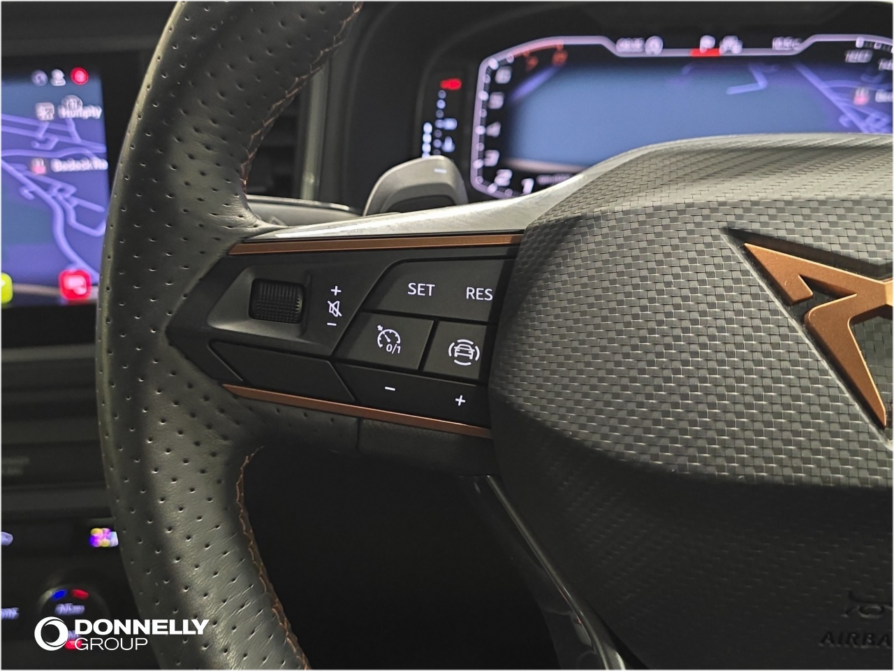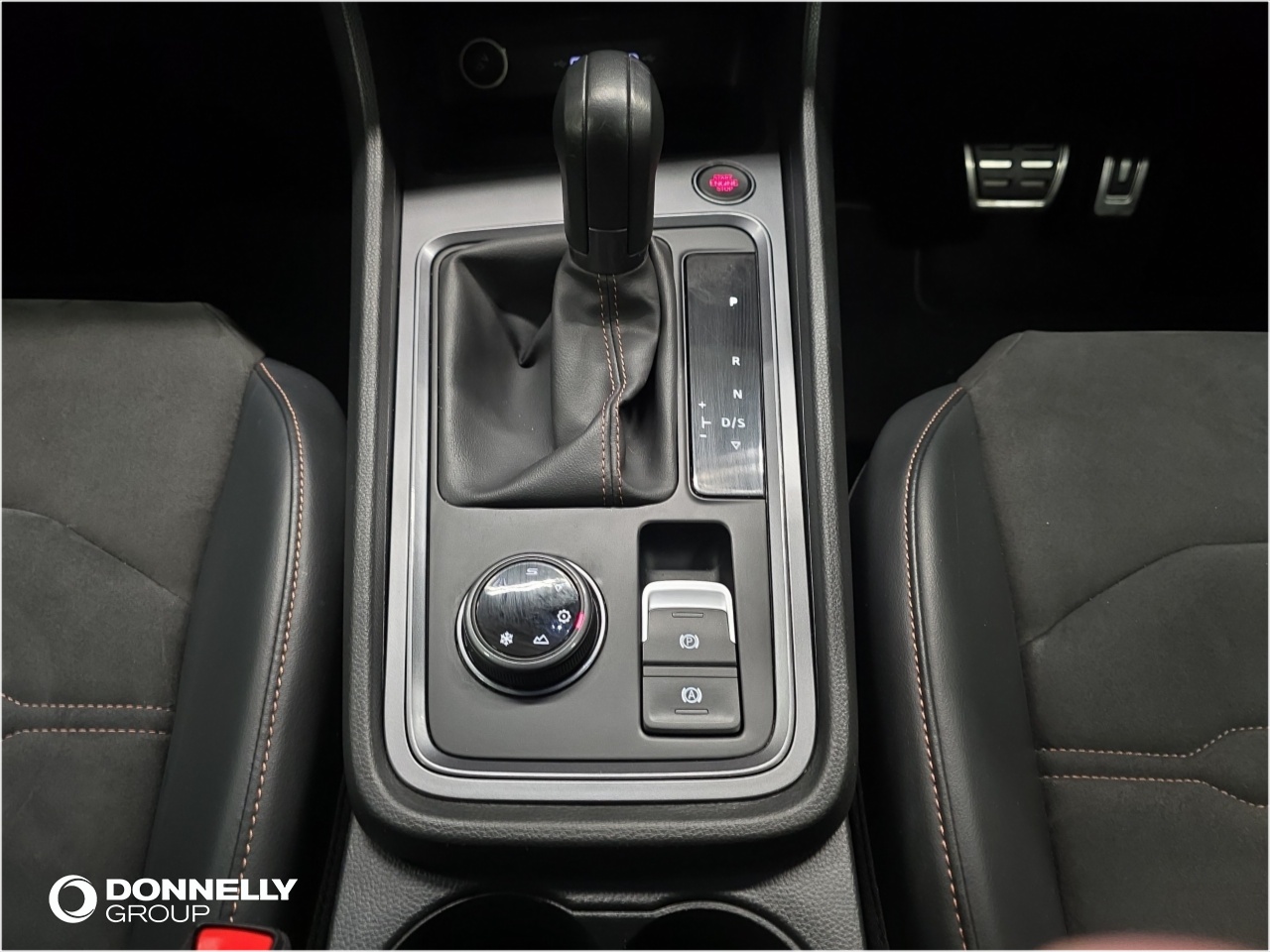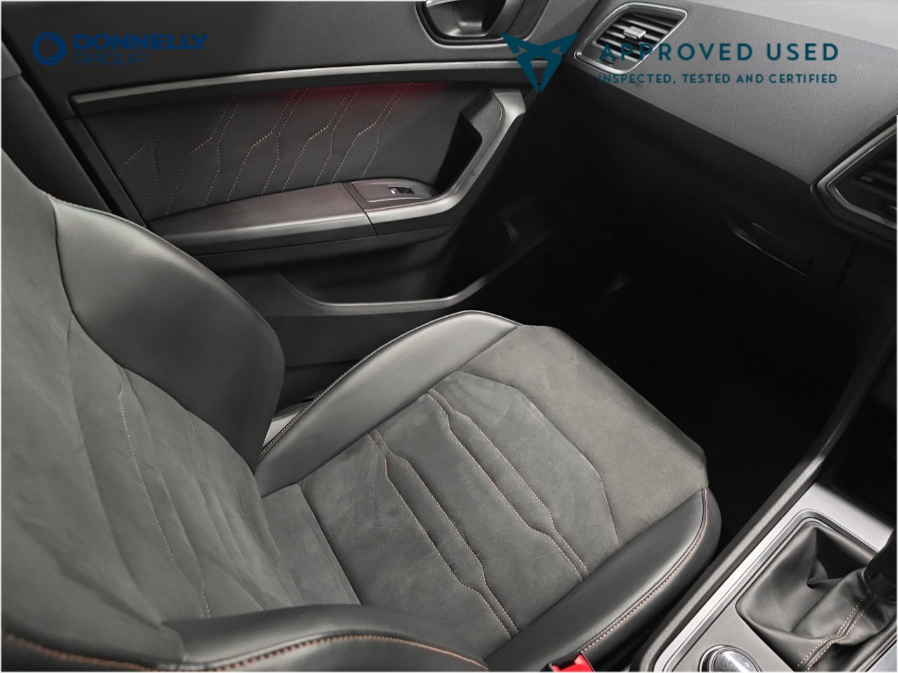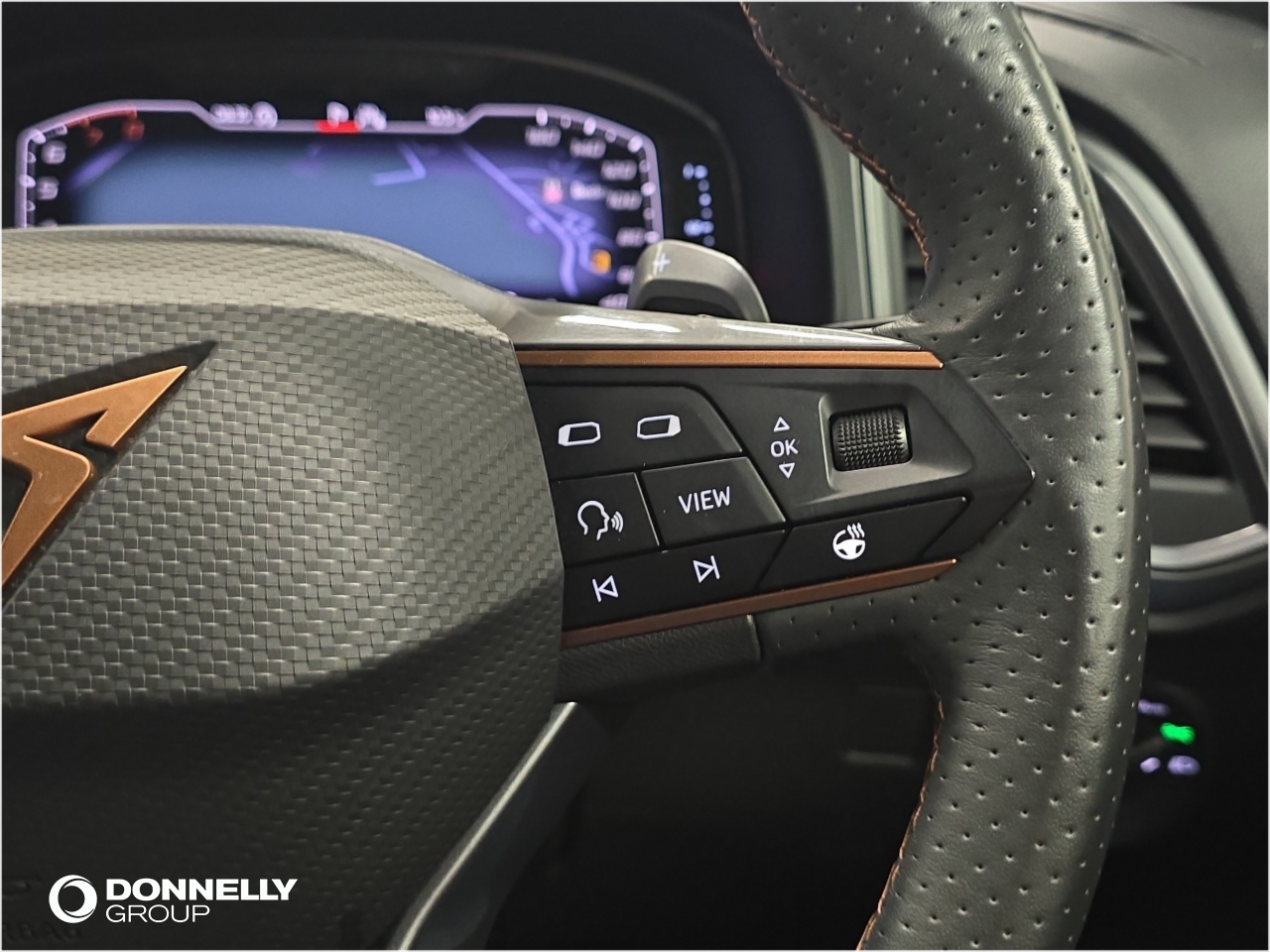"Dashboard in ARTICO man-made leather with metallised look finish and rose gold piping",