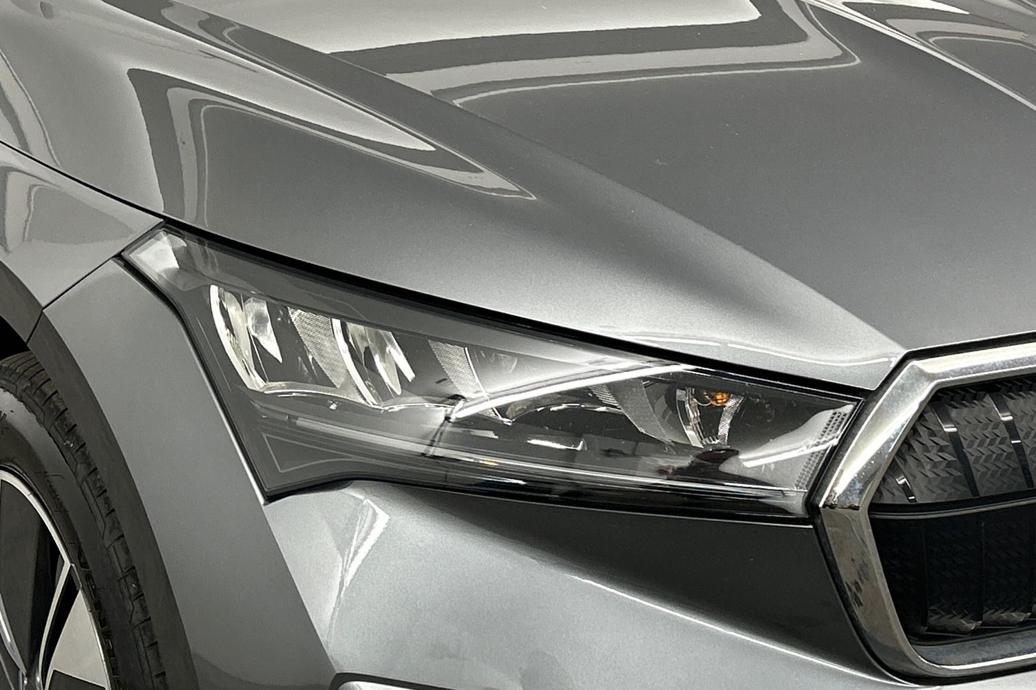 "Badge on the wing in high gloss black with chrome stripes and blue EQC lettering",