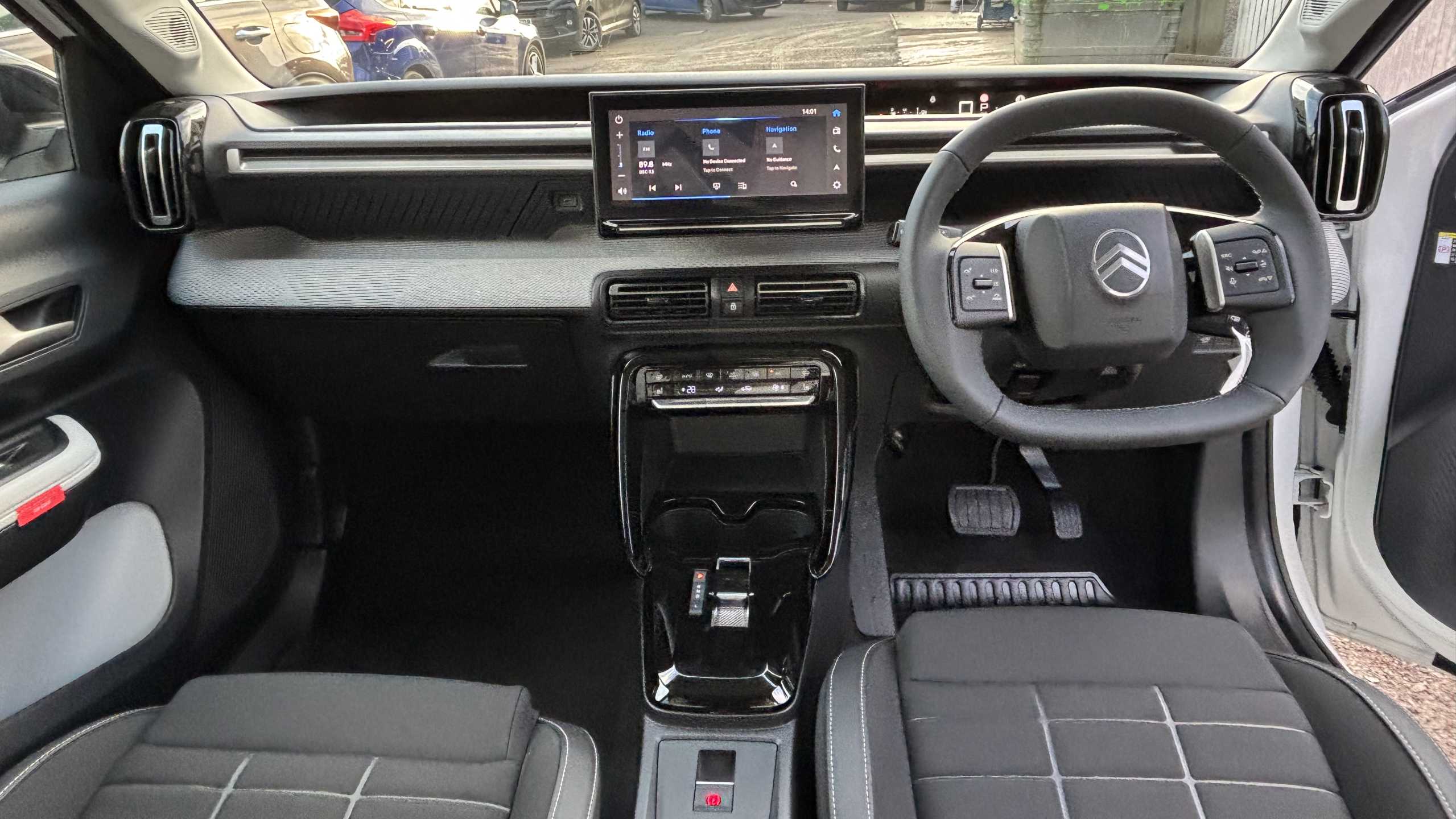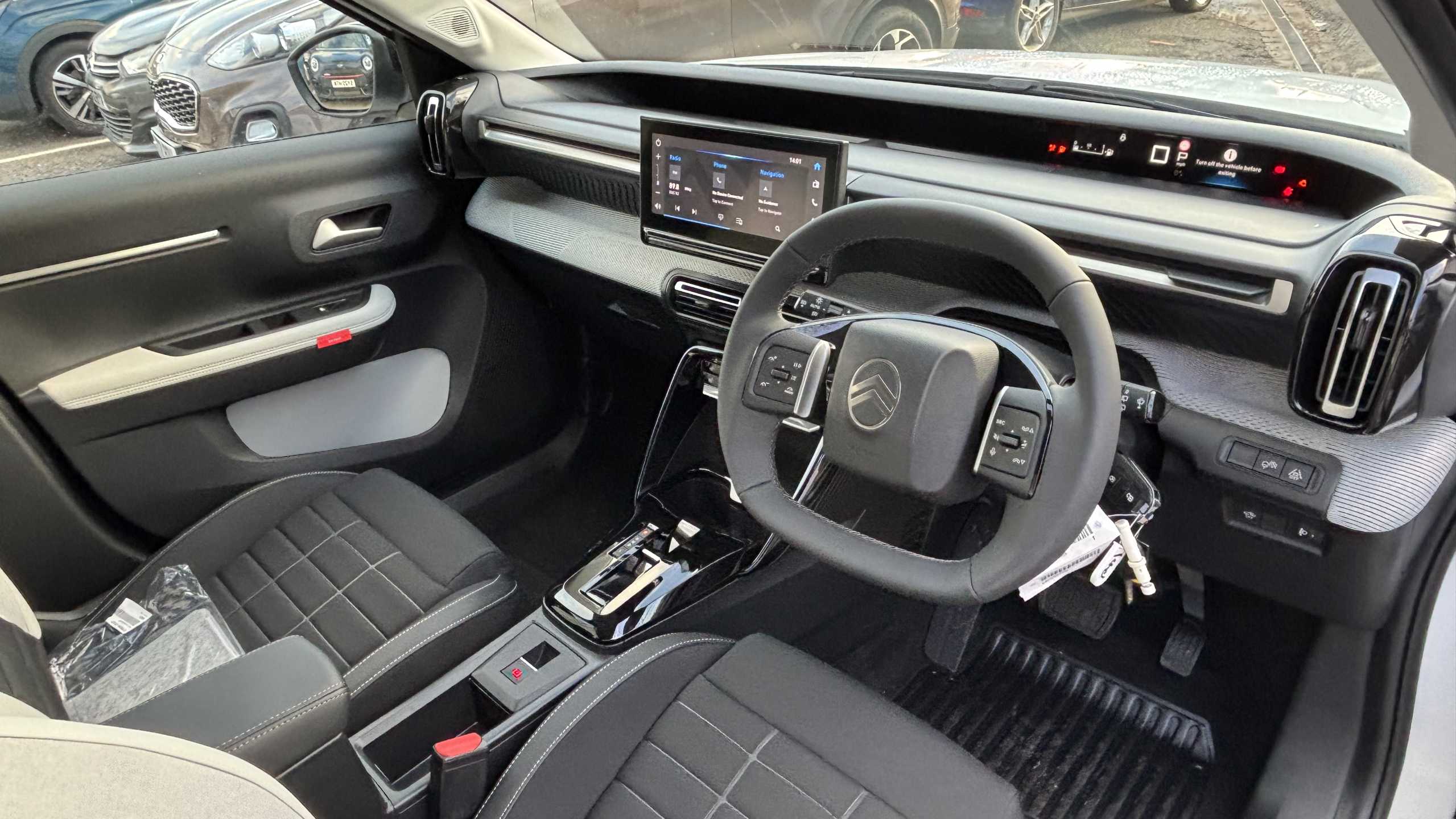 "features": "1x USB-C connection on dashboard, 1x USB-C fast charge in row 2, 1x USB-C fast charge on high console, Active lane departure warning system, Citroen connect box emergency and assistance system, Connected services, Cruise control + speed limiter, e-toggle gear selector, eCall emergency call system, Electric power steering, Exterior temperature display, Head up Display, Multi function trip computer, Rear parking sensors, Reversing camera, Wireless Smartphone charger, Advanced comfort suspension with progressive hydraulic cushions, Citroen connect nav with DAB radio, 6 speakers, 10.25\" capacitive touchscreen, wireless mirror screen, apple carplay/android auto and bluetooth, 3D rear light signature, Automatic activation of hazard warning lights, Automatic headlights, Black roof bars, Black wheel arch extensions, Body colour bumpers, Dark tinted tailgate and rear side windows, Electric front power windows with auto up/down for the driver and auto down for passenger, Electric rear power windows, Electrically heated, folding and adjustable external rear view mirrors, Electrochrome auto dimming interior rear view mirror, Fog lights integrated into front bumper, Front and rear skid plates in grey, Front intermittent wipers, Gloss black exterior door handles, Gloss black finish B and C pillar, Gloss black rear view mirror caps, Heated acoustic windscreen, Heated rear window, Intelligent beam headlights, LED daytime running lights, LED headlights with electric levelling, LED rear lights, LED third brake light, Rear roof spoiler, Rear side wing doors, Turn indicators integrated into rear view mirrors, 1 litre bottle storage in front and rear door pockets, 1/3 to 2/3 split folding rear seat, 12V socket on console, 4x anchoring rings on boot, Advanced comfort front and rear seats, Automatic air conditioning, Bag support hook in boot, Cabin temperature pre-conditioning, Central storage with 2 cupholders, Chrome effect interior door handles, Closed glove box, Cloth/leather effect upholstery, Driver and passenger's sun visor with courtesy mirror, Driver's seat height adjustment, Fixed boot light, Front and rear floor mats, Front seats adjustable with forward back slide and adjustable backrest, Heated front seats, Heated steering wheel, Height adjustable front head restraints, Height/reach adjust steering wheel, High console with armrest and closed storage, ISOFIX mounting on outer rear seats with top tether and labels indicating fixing points, Leather effect steering wheel with gloss black and chrome elements and integrated audio/telephone/cruise control/speed limit controls, LED front lighting panel with map reading lights, Map pockets in back of driver and front passenger seats with additional pocket for smartphone storage, Padded fabric armrests in front and rear doors with labels, Parcel shelf, Seatbelt unfastened on the move audible and visual alert for front and rear seats, Single front passenger seat, Three rear headrests, Safety pack - C3 Plus and Max, Visibility pack - C3 Plus and Max, ABS, Child locks on rear doors, Driver and front passenger seatbelts with pyrotechnic pretensioners and force limiters, Driver's airbag, Electric parking brake, ESP with anti skid system, Front passenger airbag, Front passenger airbag deactivation, Front side airbags + front/rear curtain airbags, Hill start assist, Mono-tone horn, Three rear 3-point seatbelts, Tyre pressure monitoring system, Automatic door and boot locking when moving off with automatic unlocking in case of impact, AVAS Approaching vehicle alert system, Central locking with deadlocks, Connected anti theft alarm (Volumetric and perimetric with tilt sensor), Immobiliser, Remote control central locking with 1x plip key and 1x non plip key, 2 side air vents and 2 central air vents on dashboard, Grey decor on dasbhboard, Grey decor on front doors, 17\" Atacamite diamond cut bi-tone alloy wheels with locking wheel nuts, ",