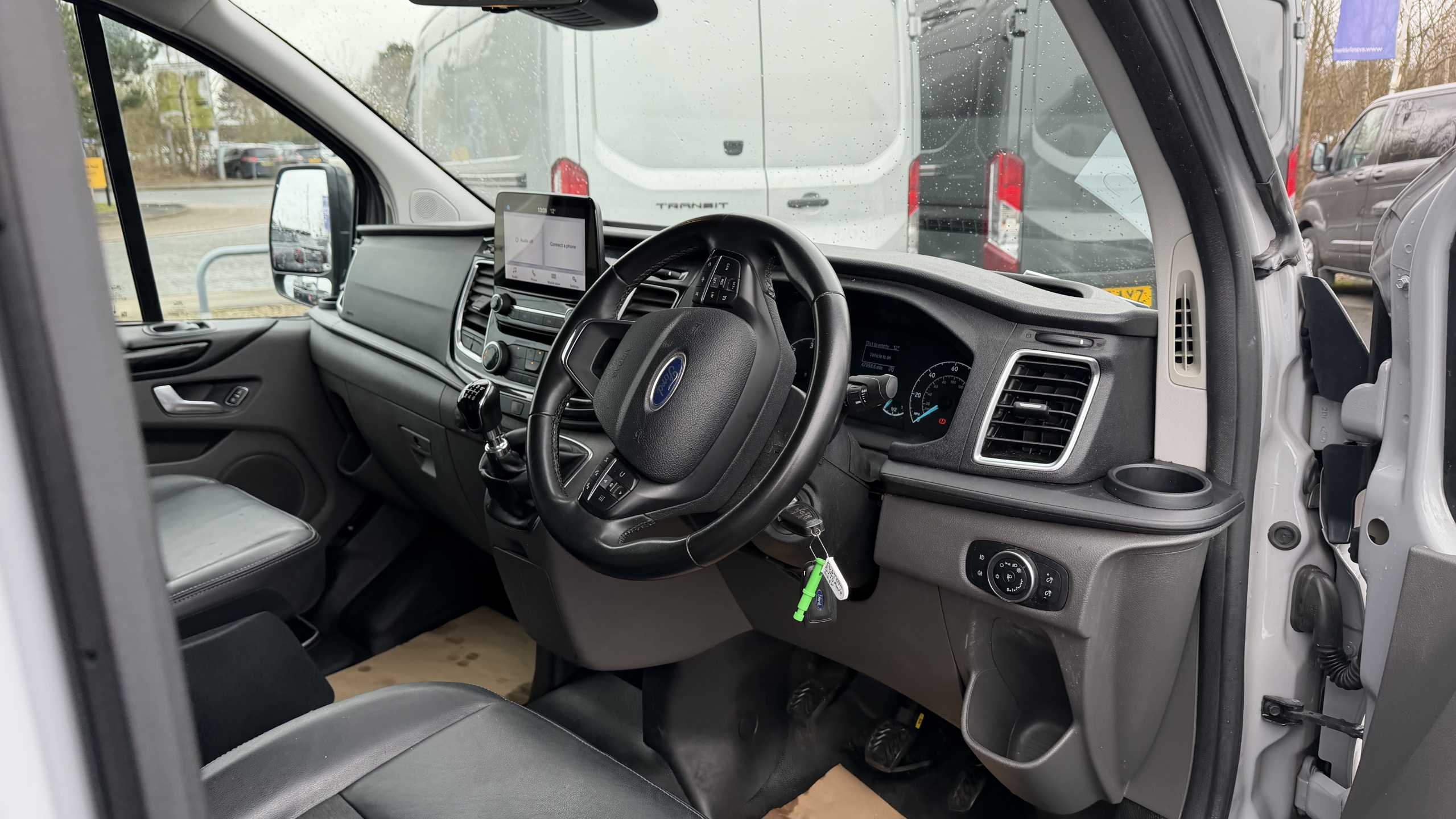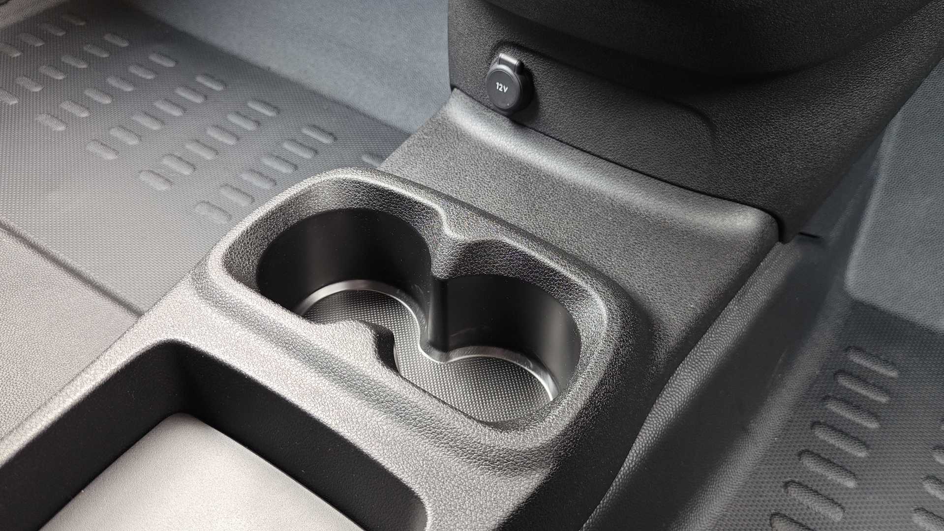 "Two cup holders and mobile phone storage in centre or lower dashboard"