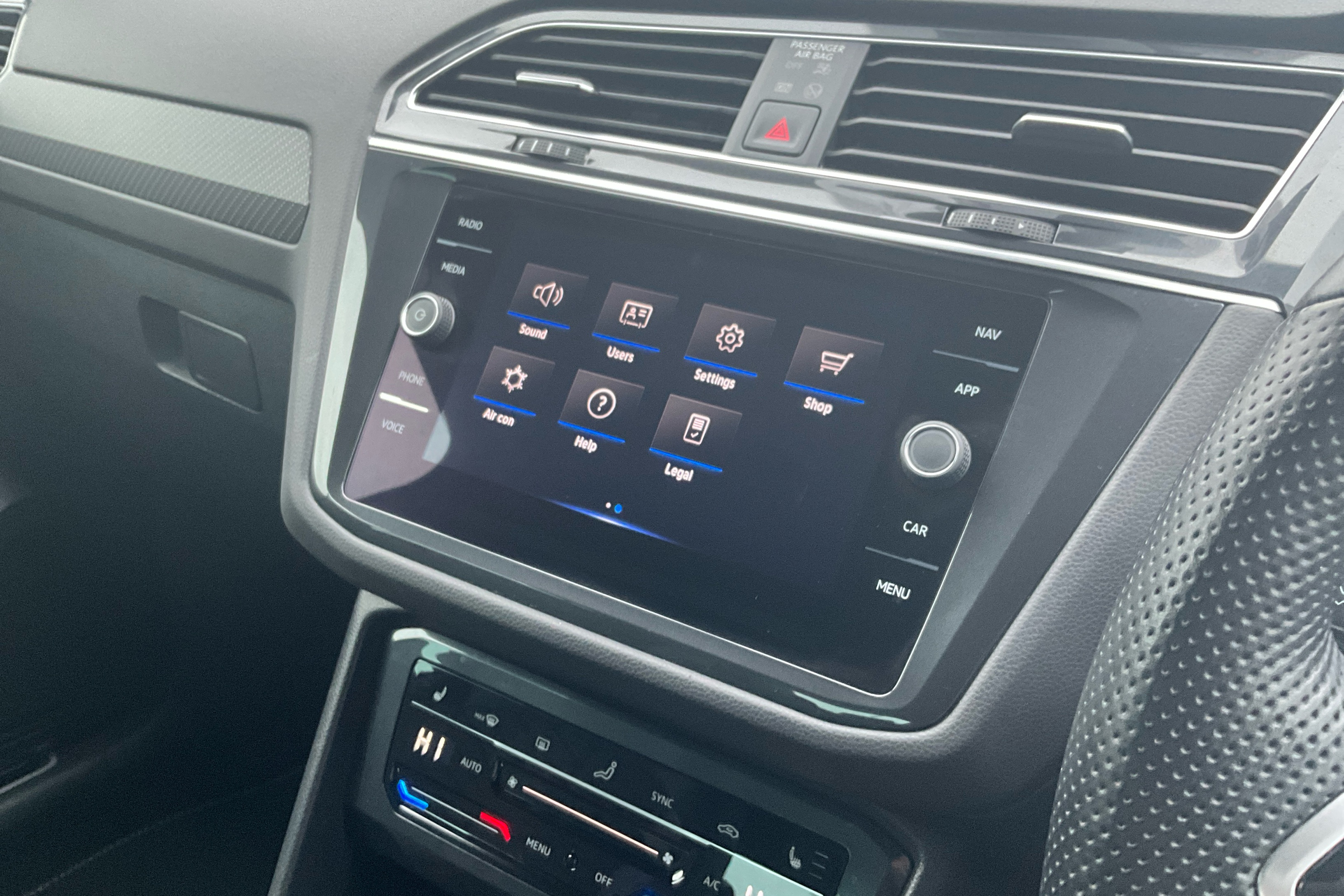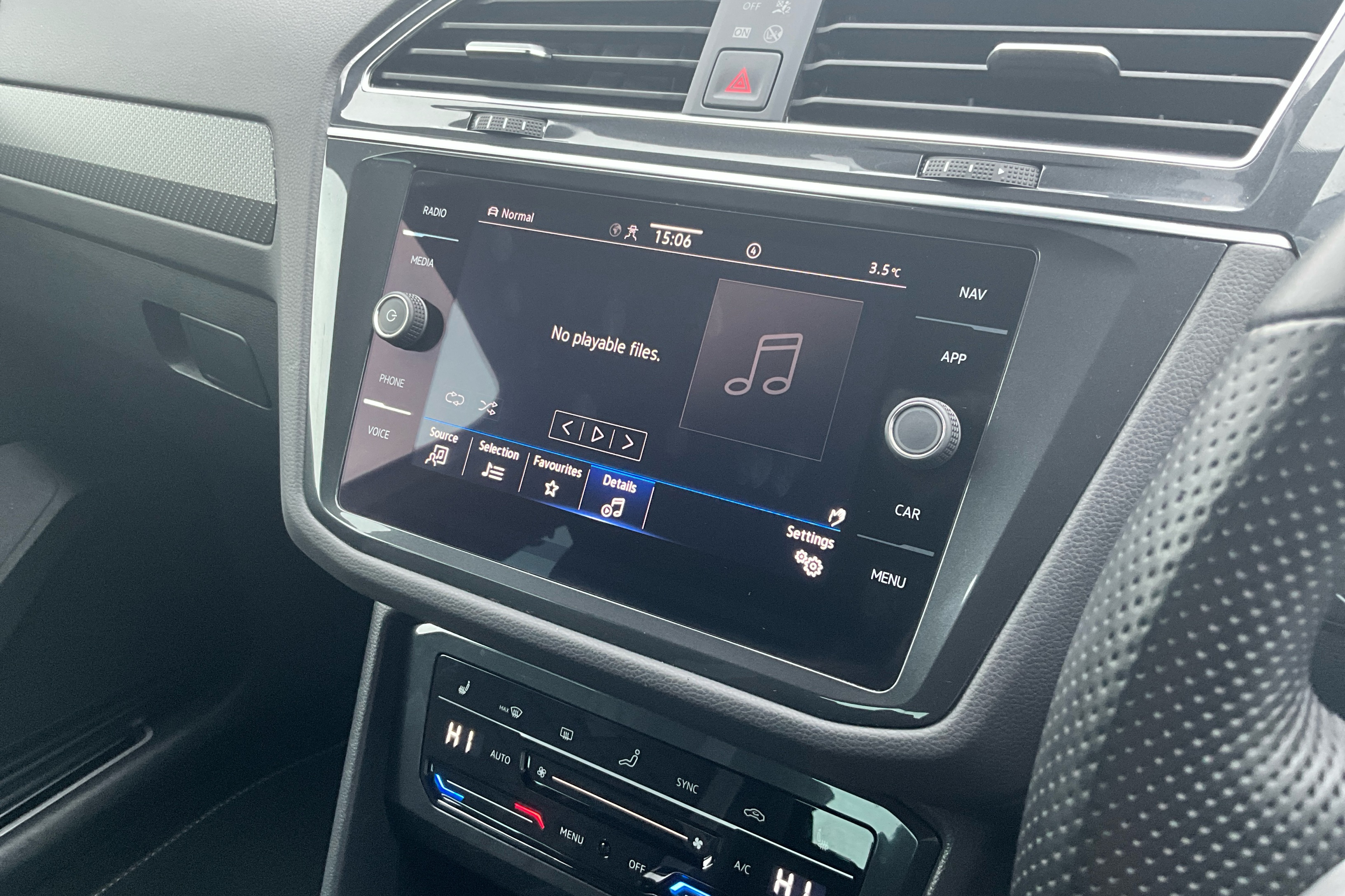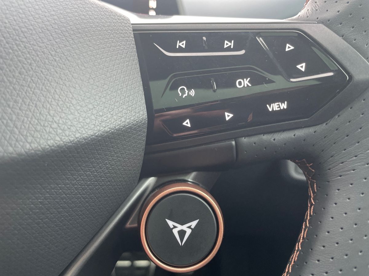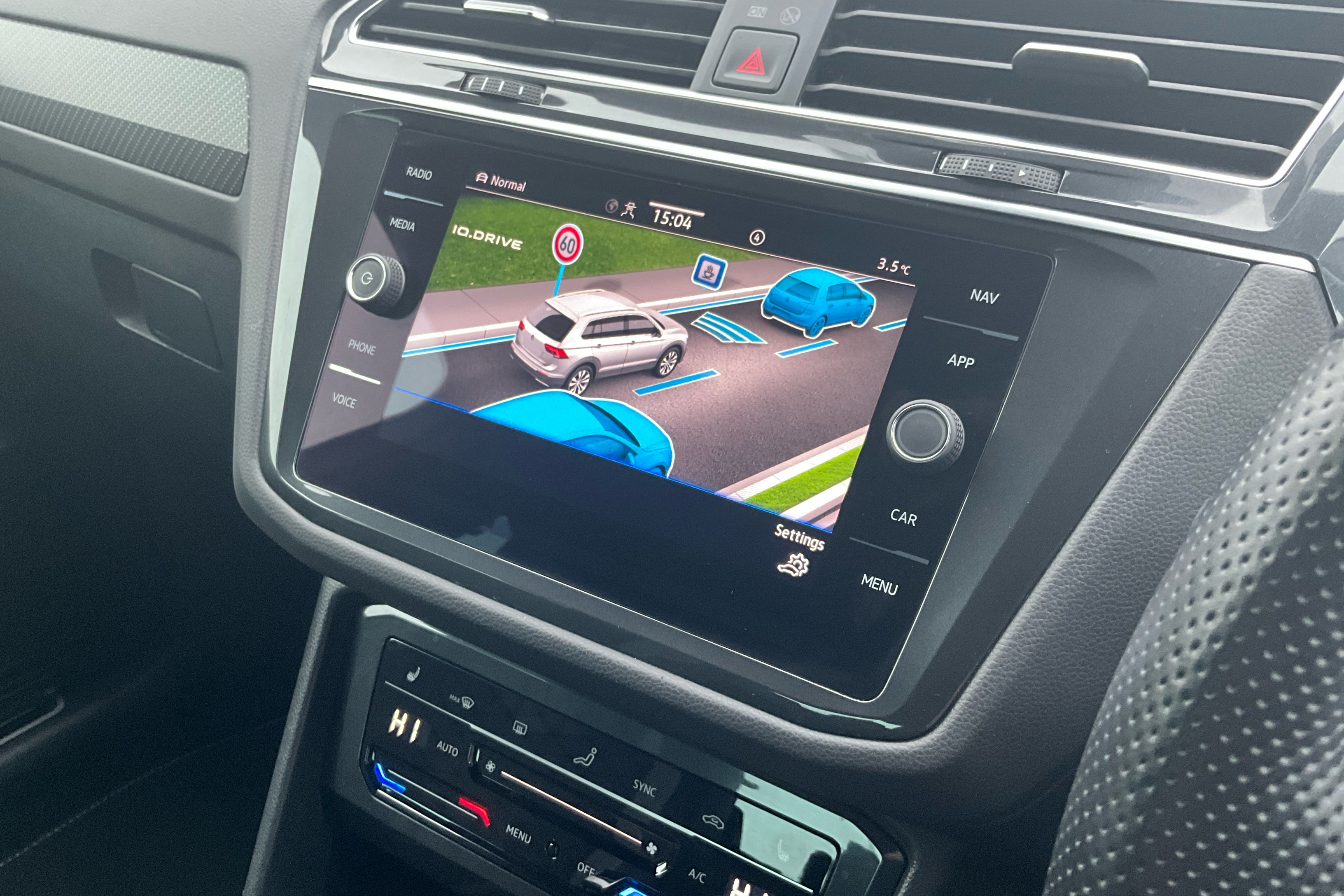 "Three spoke leather wrapped multifunction steering wheel"