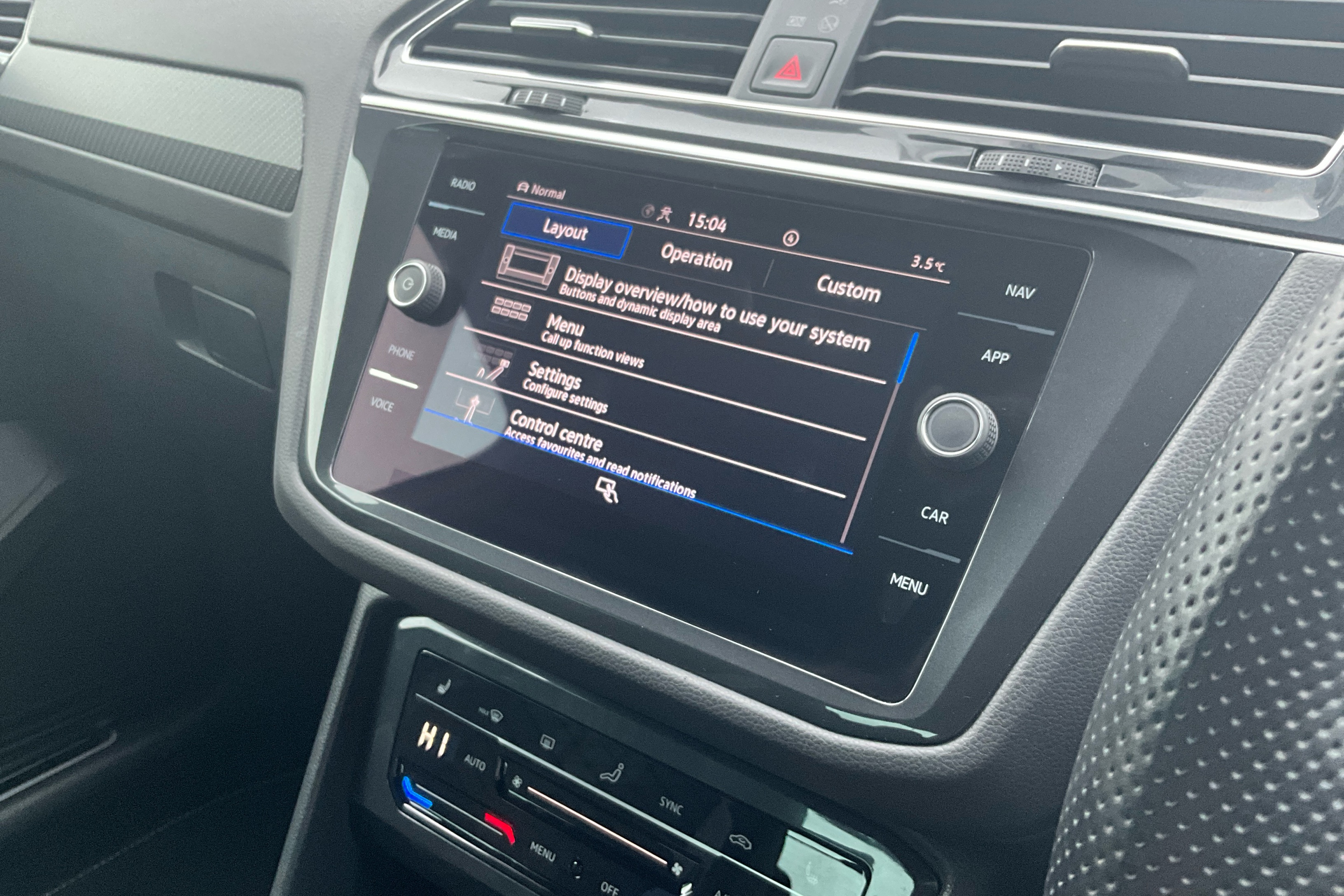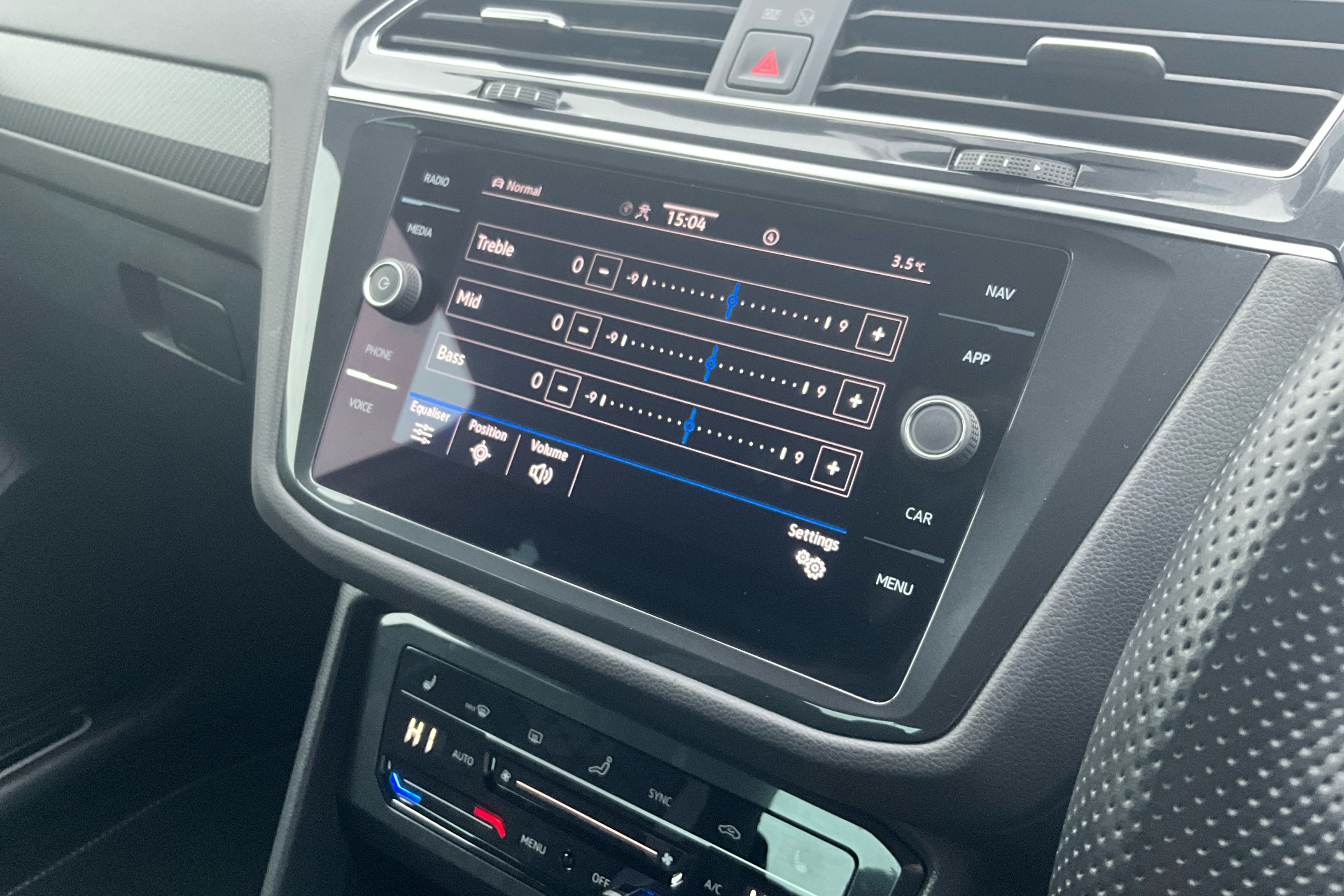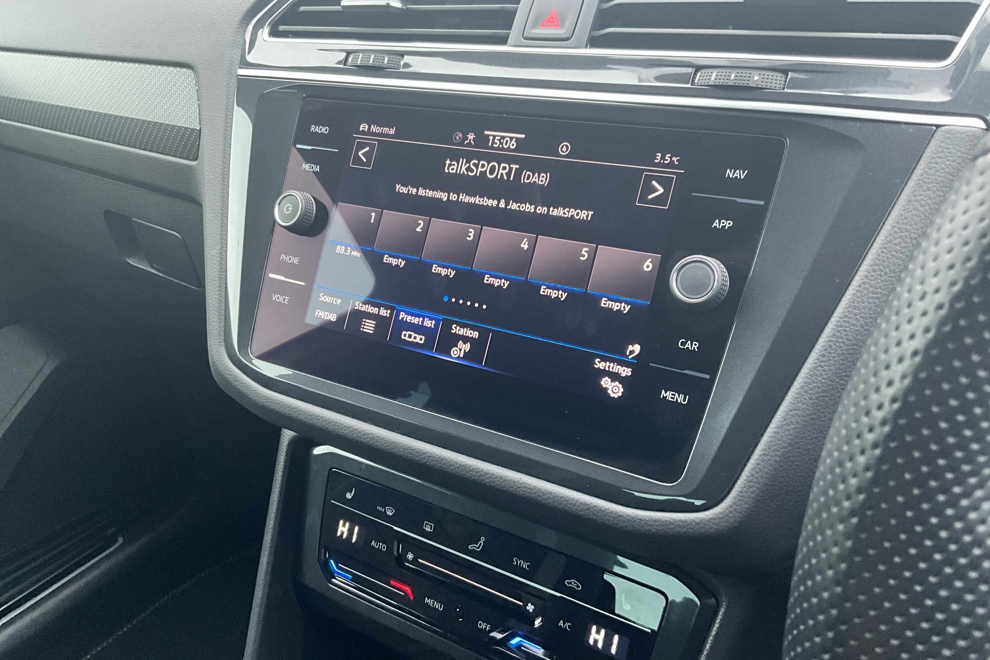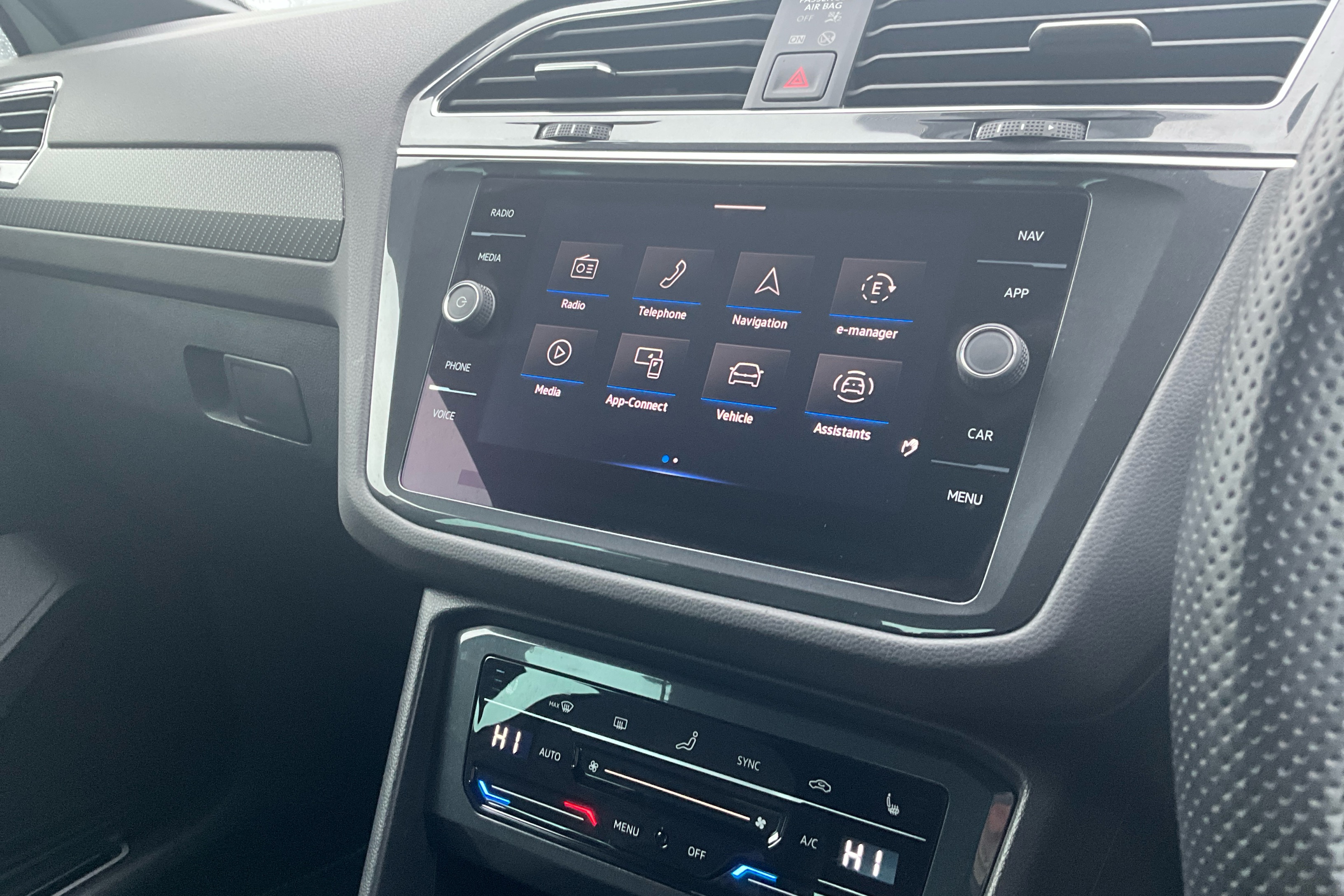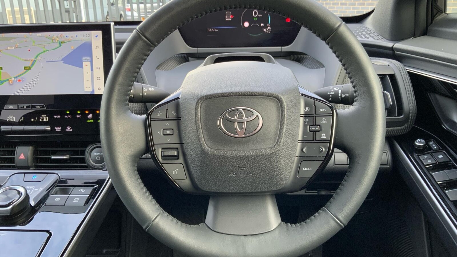 "Three spoke leather wrapped multifunction steering wheel"