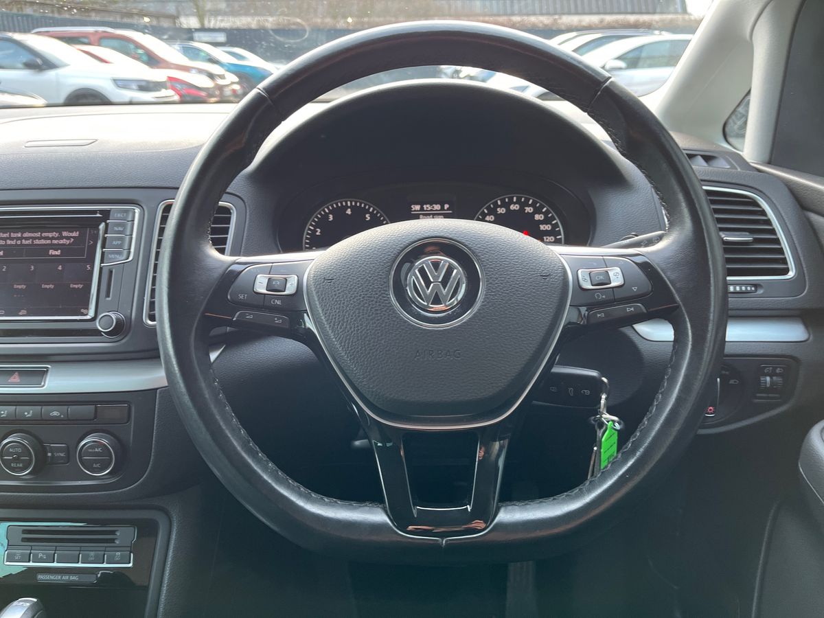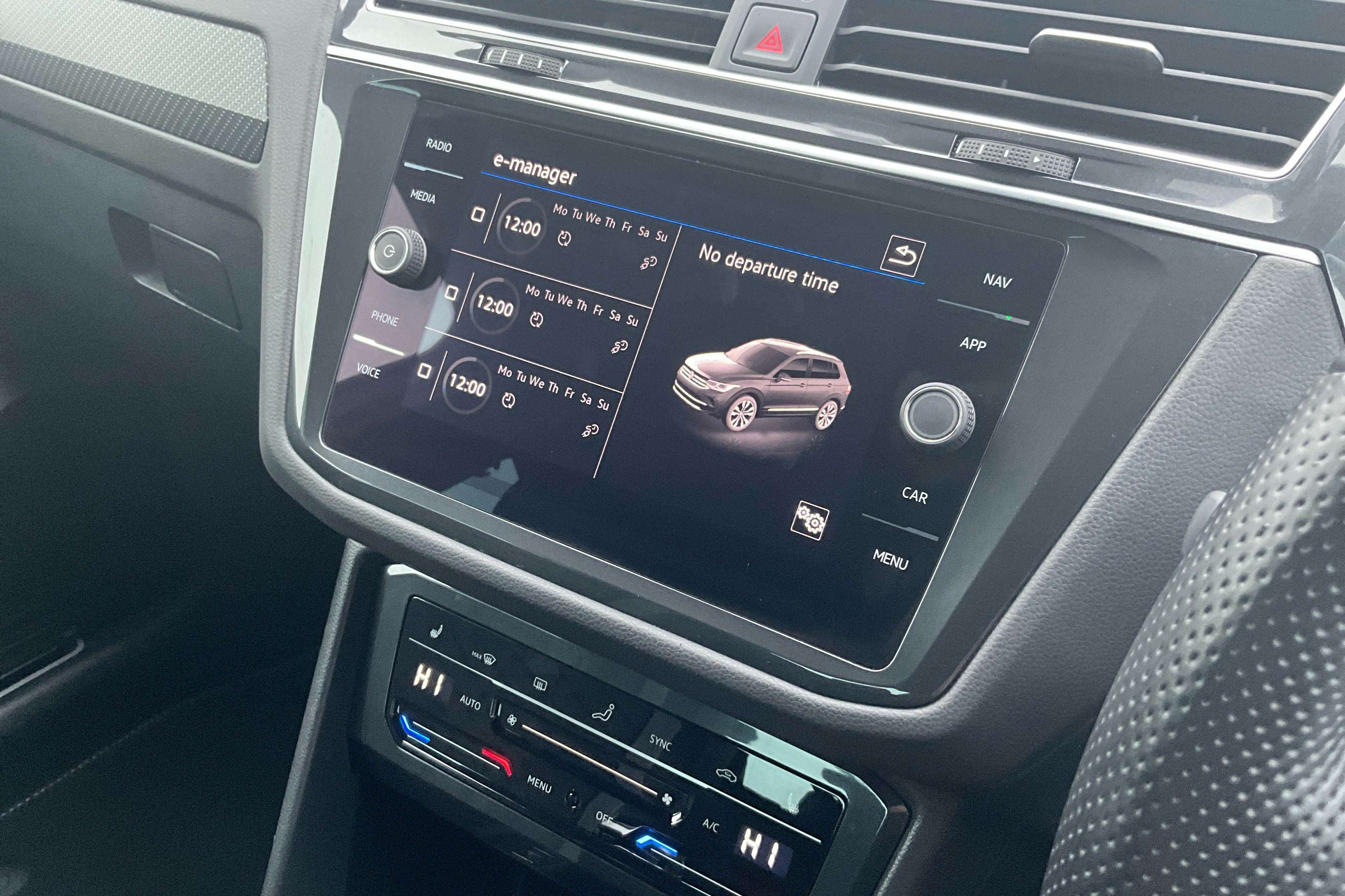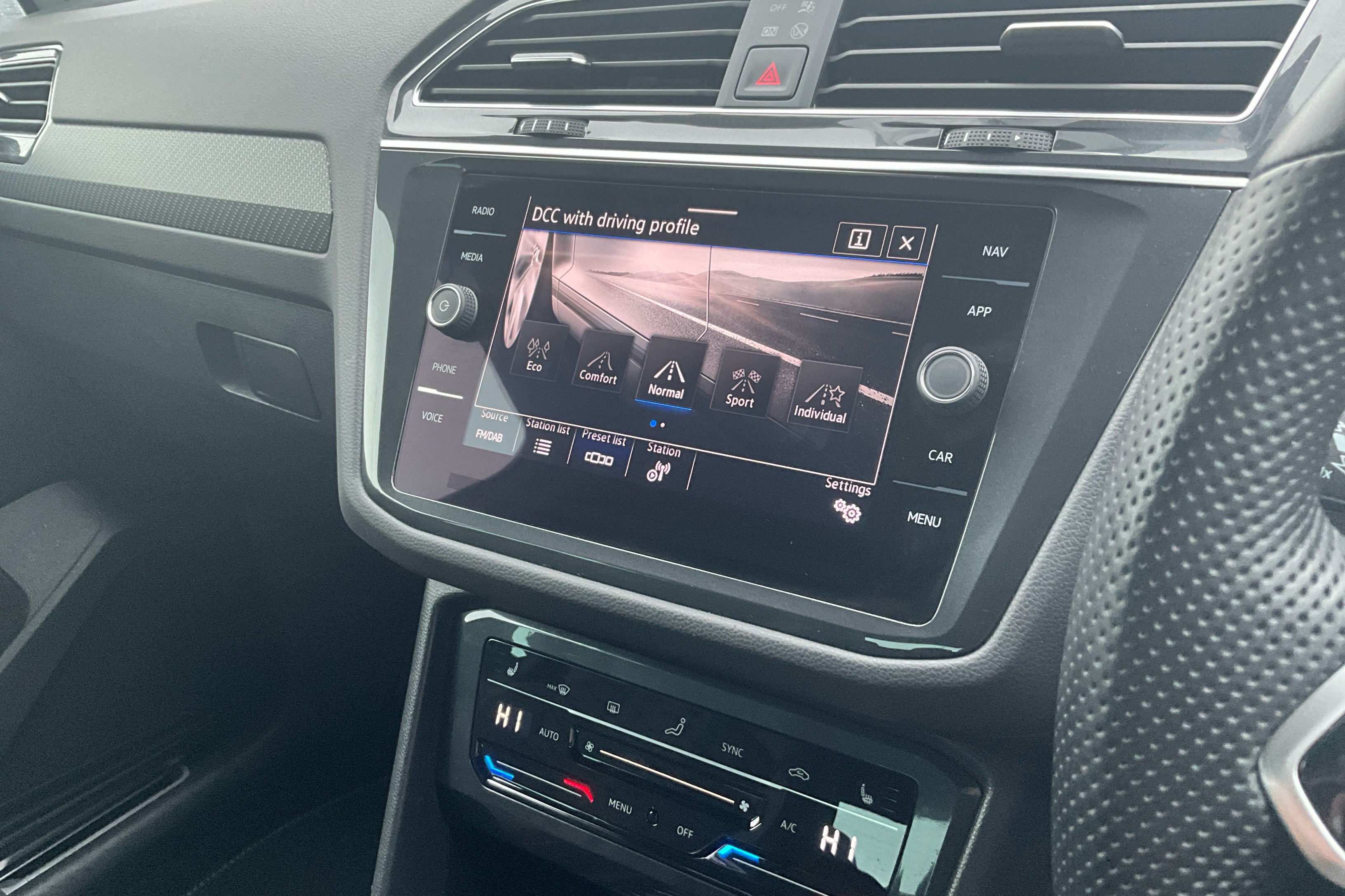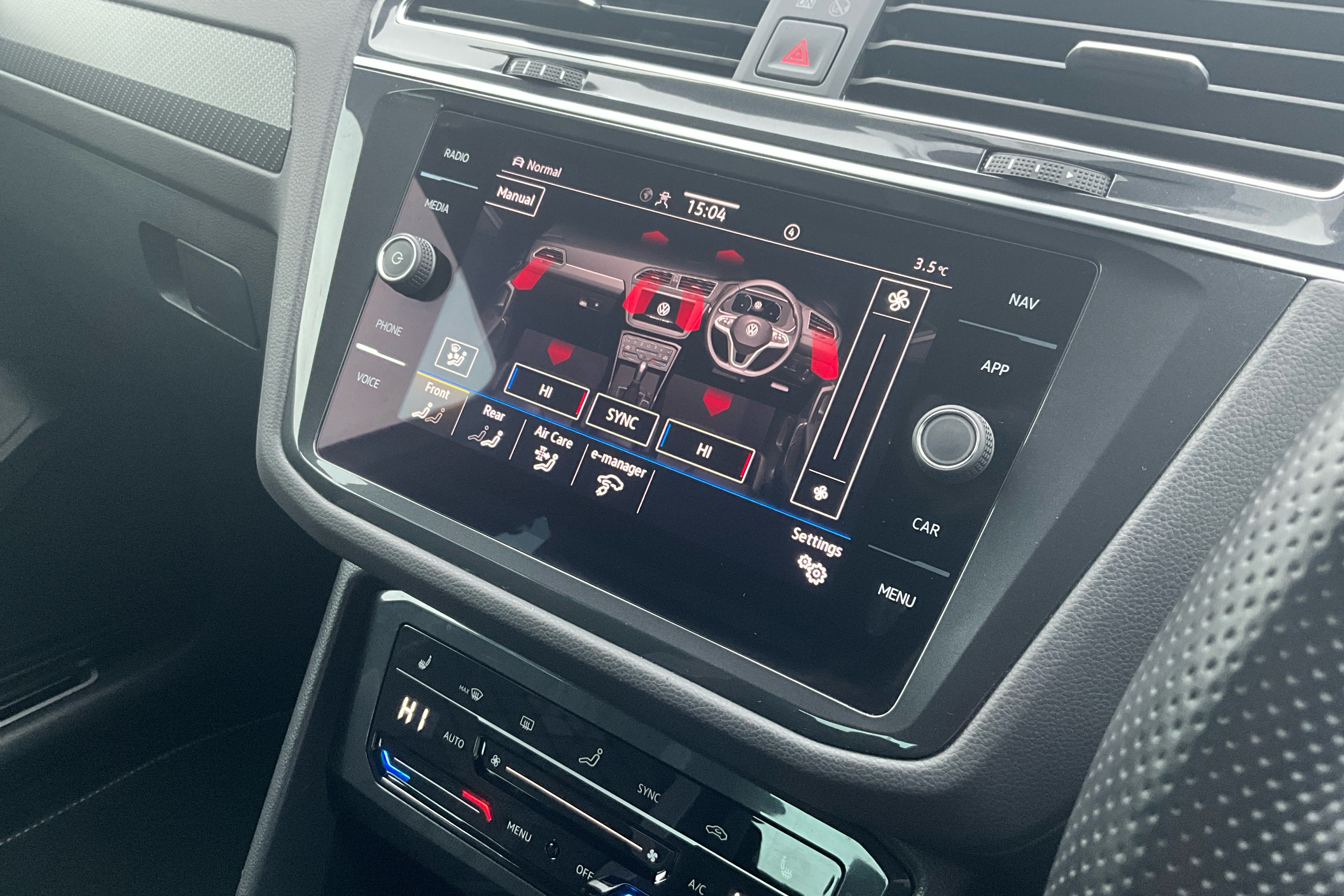 "Three spoke leather wrapped multifunction steering wheel"