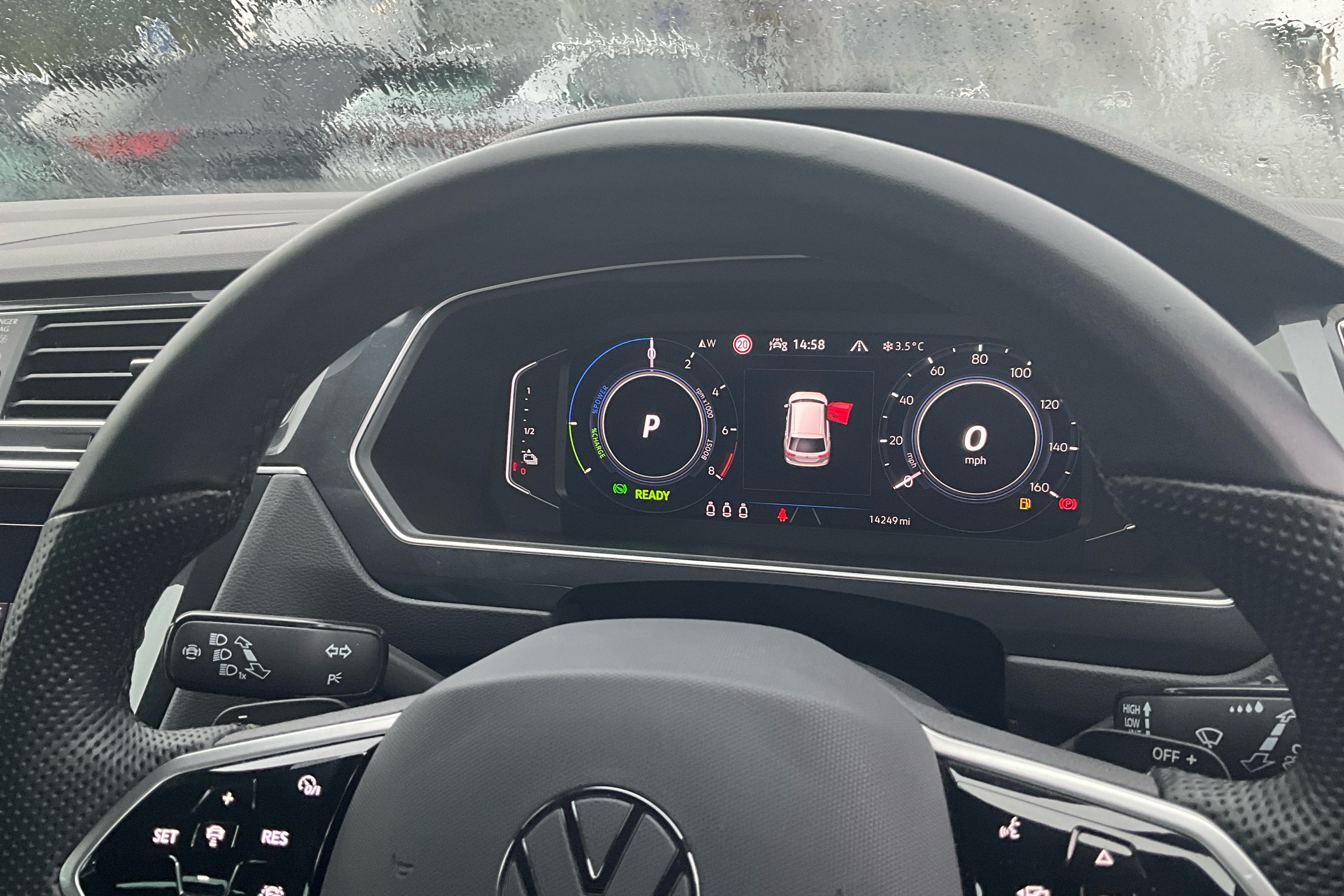 "Speedo and rev counter, electronic odometer, trip, service interval display and exterior temperature gauge",