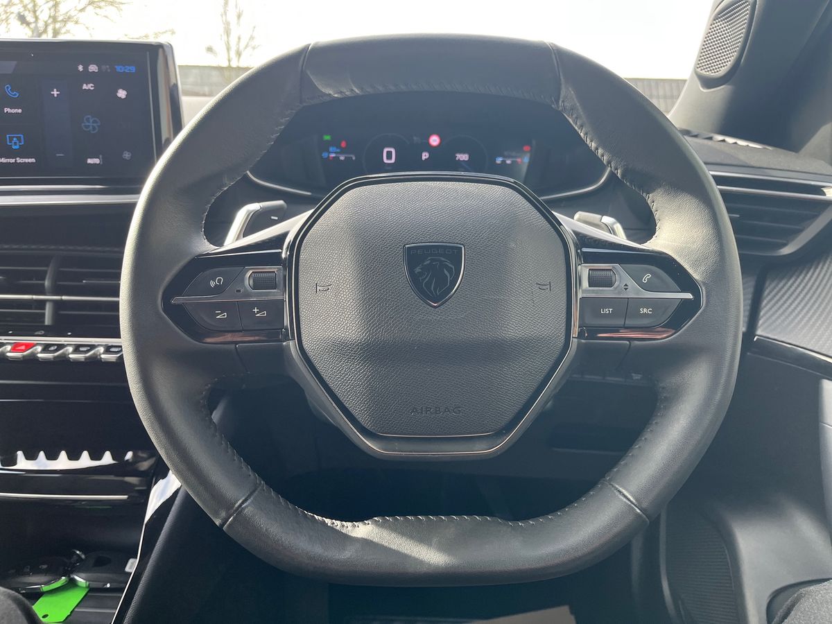 "features": "10\" capacitive colour touchscreen with connected 3D navigation includes Peugeot Connect SOS and assistance, Bluetooth telephone facility, Compact automatic gearbox impulse selector, Driver attention warning, Exterior temperature indicator with ice warning, Front and rear parking sensors, Intelligent speed adaptation, Lane keep assist, Mirror screen with mirror link, apple carplay and android auto, Multi driving mode selector - Electric/HYBRID /Sport mode, Multi function trip computer, Peugeot connect SOS and assistance, PEUGEOT i-Cockpit with 10\" digital instrument panel display, PEUGEOT i-Cockpit with compact steering wheel, Service interval indicator, Speed limit recognition and recommendation, Sport pedals with foot rest, Mode 3 type 2 cable for wallbox charging, 6 speakers radio with mp3 compatible, DAB Digital radio, Peugeot customisable iToggles, Steering column mounted multifunction controls, Voice recognition for radio, navigation and telephony features, Acoustic and tinted windscreen, Automatic triggered rear windscreen wiper in reverse gear, Body colour door handles, Body colour rear spoiler, Dark tinted Rear side and tailgate windows, Dichroic hybrid badging, EcoLED headlights, Electric operated/heated door mirrors, Frameless electrochrome rear view mirror with ZEV indicator, Front and rear electric windows with one touch/anti pinch, Front grille with horizontal chrome stamping, Gloss black finish B pillar, Gloss black rear cluster connecting strip, High beam assist, LED rear number plate lights, LED side indicator lights integrated into door mirrors, Manual headlight position correction/adjustment, Model designation badges on front and rear, Nera black door mirrors, Peugeot signature LED daytime running lights, Power folding door mirrors, Rear full LED 3D peugeot signature claw effect lights with daylight function, Rear lower bumper gloss black diffuser effect trim, Rear reversing lights, Tailgate with heated rear windscreen and wiper blade, Twin exhaust pipes with chrome surround, 1/3 to 2/3 split folding rear seats, 12V socket, 2 front USB socket including 1 USB type c, 2 rear USB socket including 1 USB type c, 8 Colour personalisable ambient lighting, Automatic air conditioning with AQS 3, Central front armrest with storage compartment, Driver and front passenger seat height adjustment, Driver and front passenger seat manual adjustment in longitudinal and back rest angle, Driver seat lumbar adjustment, Dynamic front seats, Electric power steering with reach and rake adjustable steering column, Falgo tri-material with isabella leather effect and cloth upholstery, Front central console with two cup holders, Manual driving mode - change gear manually via steering mounted paddles, Multifunction split leather and gloss steering wheel, Piano keys gloss black plated toggle switches to access main functions of the vehicle, Roof lining - light grey, Seatbelt unfastened on the move audible and visual alert for front and rear seats, Ski hatch with central rear armrest with cup holder, Sunvisor with concealable mirrors and LED lighting, Visibility pack with automatic magic wash windscreen wipers - 308, 2x Isofix child seat fitting on outer rear seats, 3x Rear three-point retractable seatbelts with force limiters in the outer rear seats, ABS + EBD + EBA, Active safety brake with night function/cyclists/pedestrians, Adaptive driver and front passenger airbags with passenger airbag deactivation function, Automatic post collision braking, Child locks on rear doors, Driver/front passenger side airbags, Electronic parking brake, ESP, Front and rear curtain airbags, Front optimised safety headrests and rear retractable headrests (x3), height adjustable, Front three point retractable seatbelts with force limiters, Front/rear disc brakes, Hill start assist, Tyre pressure sensor, Acoustic vehicle alert system (AVAS), Automatic door locking when moving off, Automatic hazard light activation upon heavy brake application, Deadlocking system, Electronic code immobiliser, Locking wheel nuts, Thatcham cat. 1 alarm with anti lift sensor, 17\" Calgary diamond cut alloy wheels, Tyre repair kit, ",