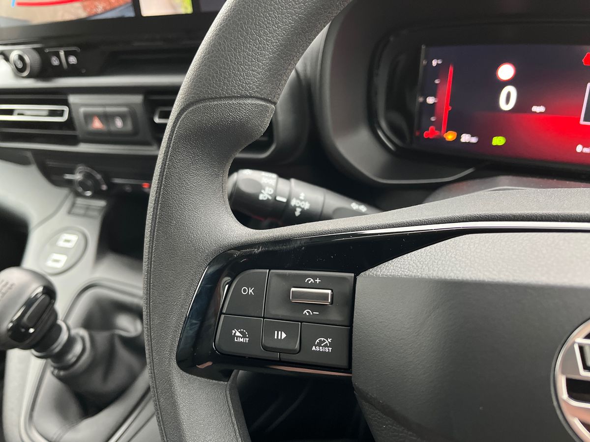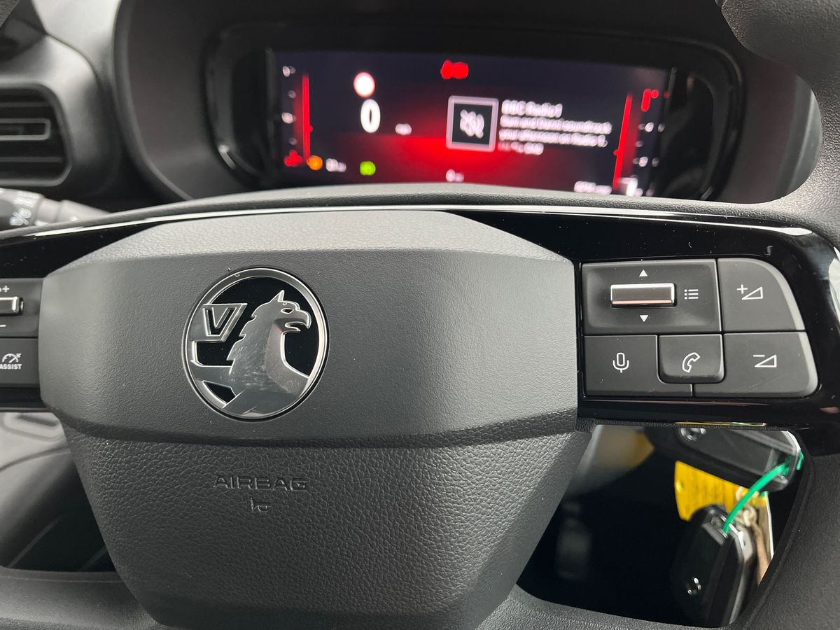 "Vegan leather trimmed steering wheel",