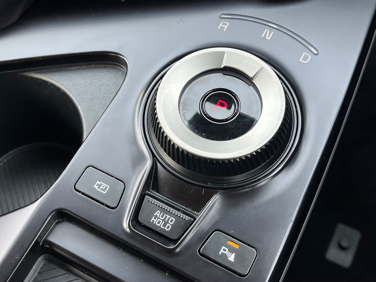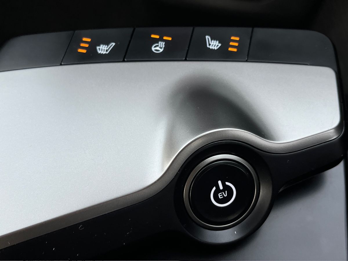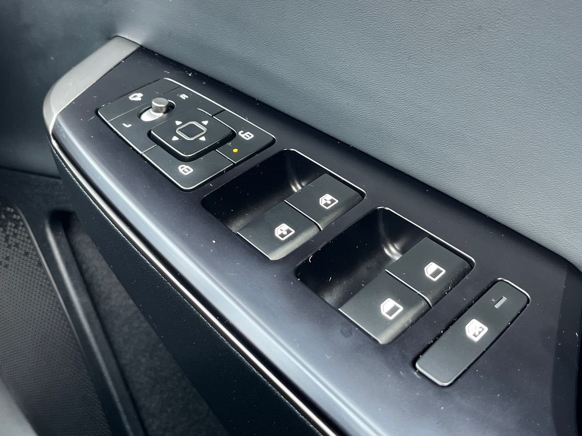 "Charging port door opening button with a small light inside the door",