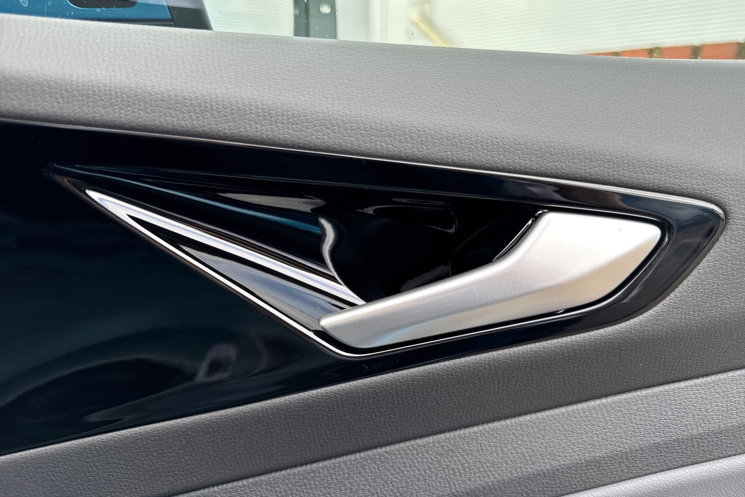 "Interior door handle in matte chrome",
