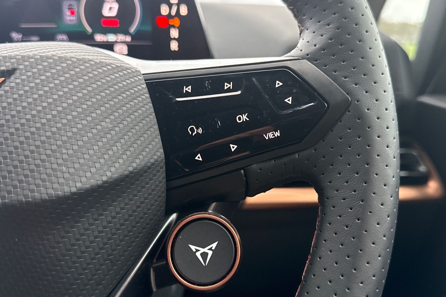 "Skoda lettering on steering wheel",