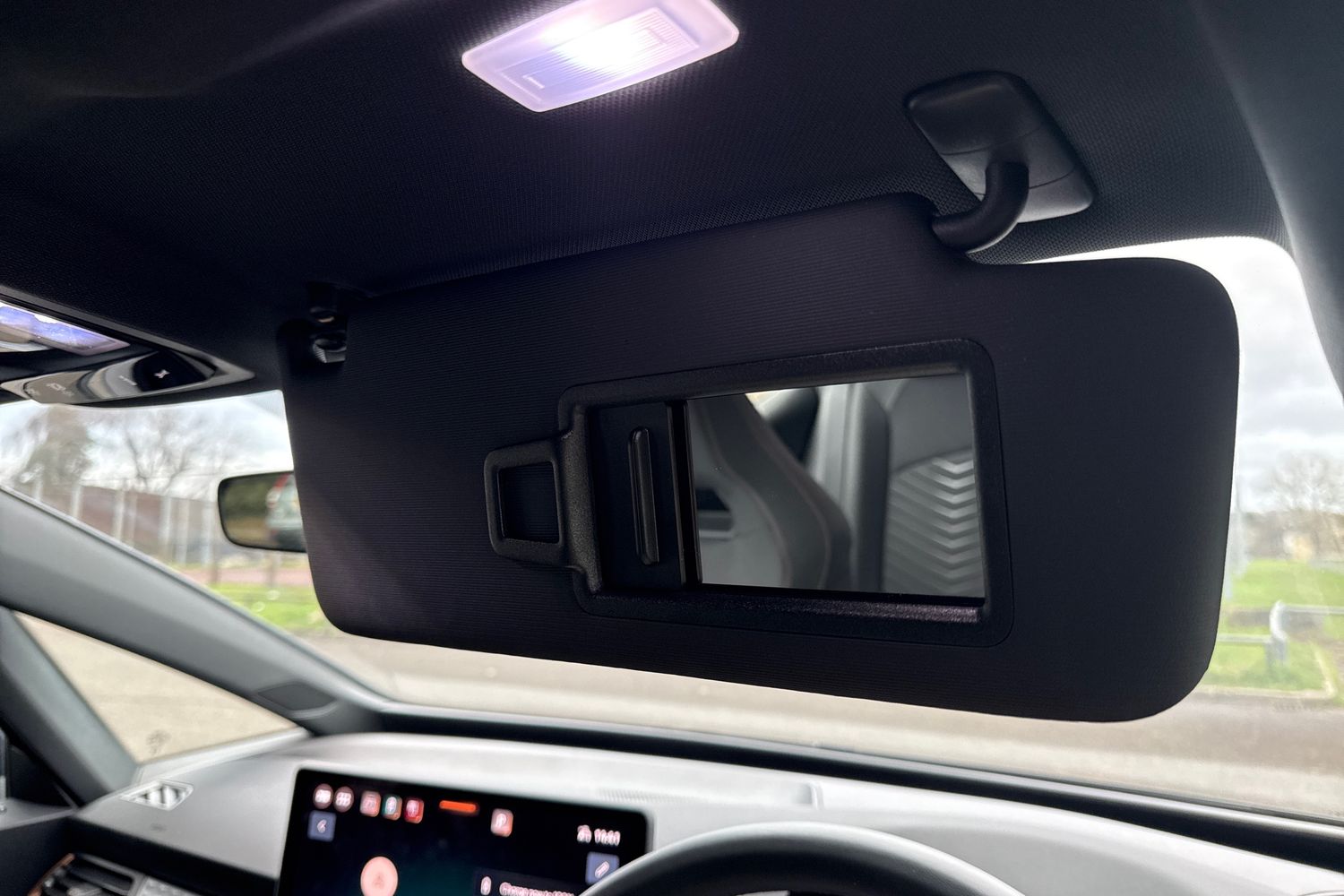 "Frameless auto-dimming rear view mirror with USB-C",