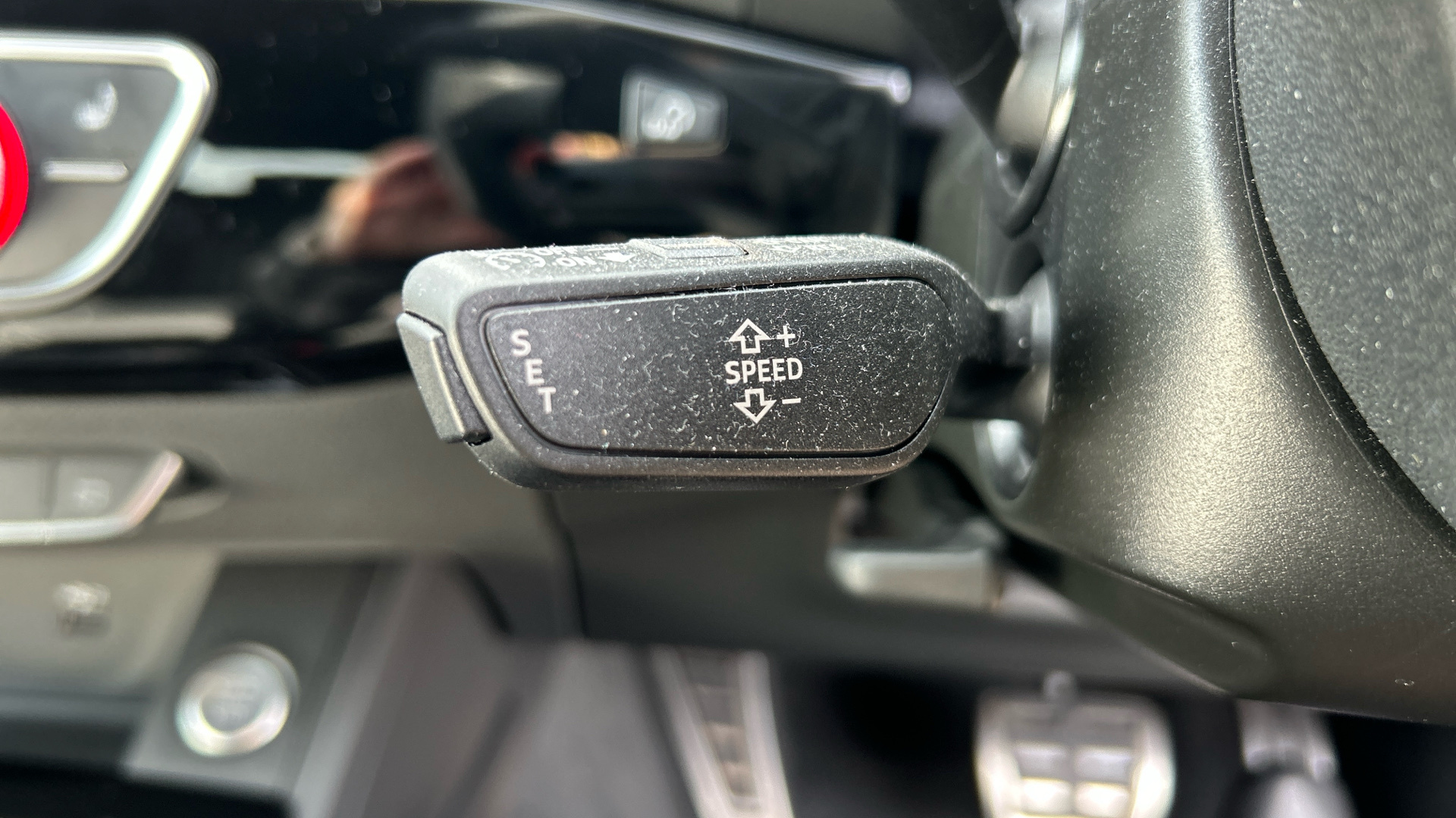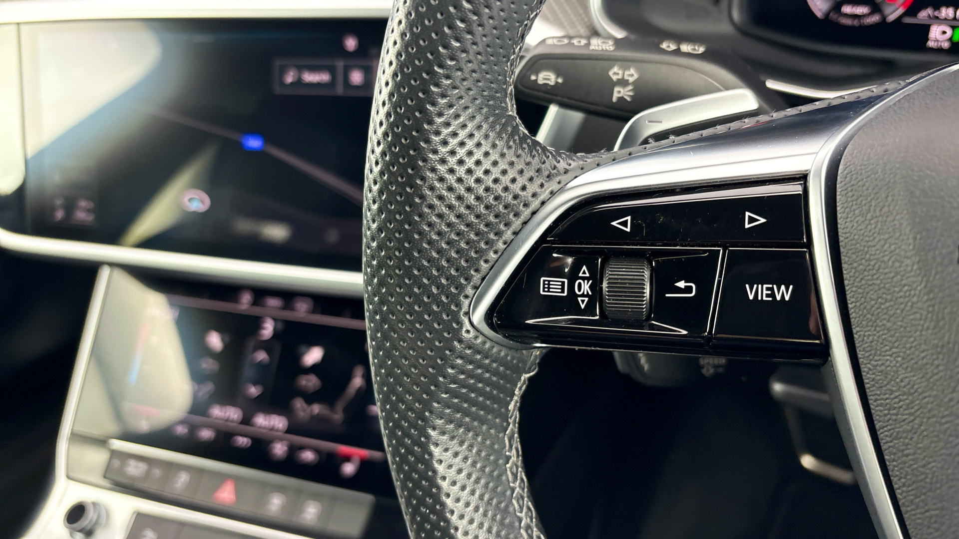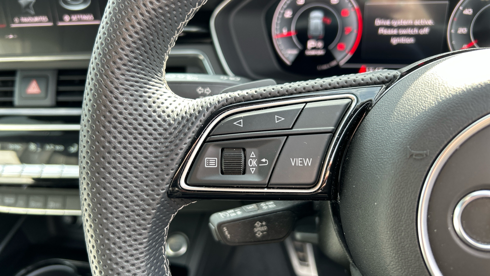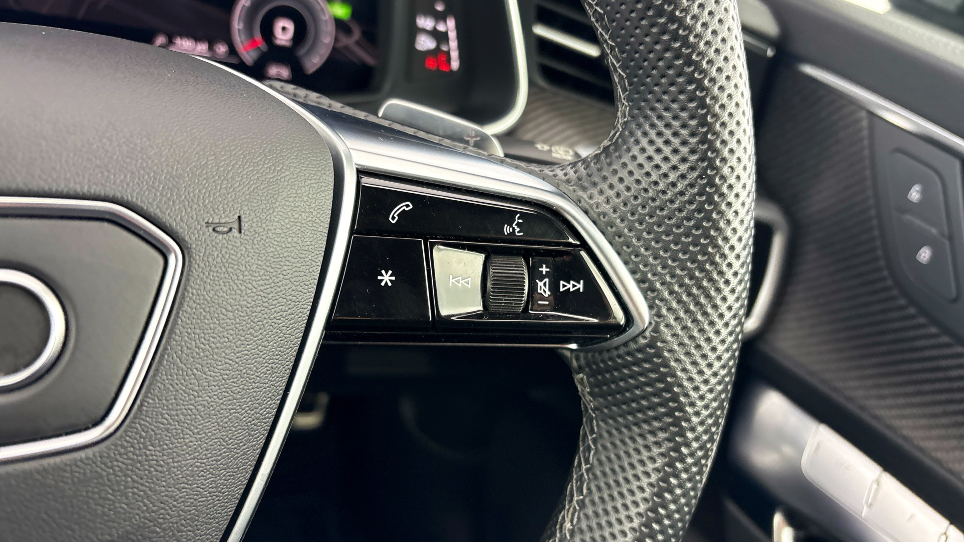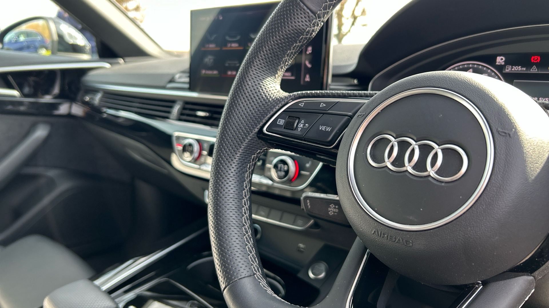 "3 spoke multi-function leather steering wheel with S badging",