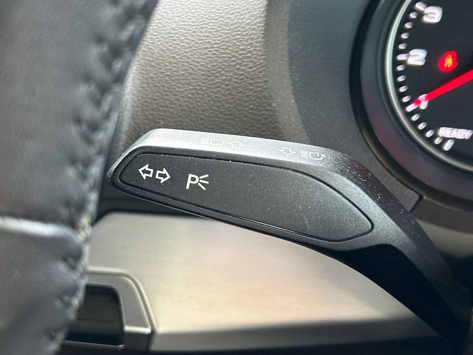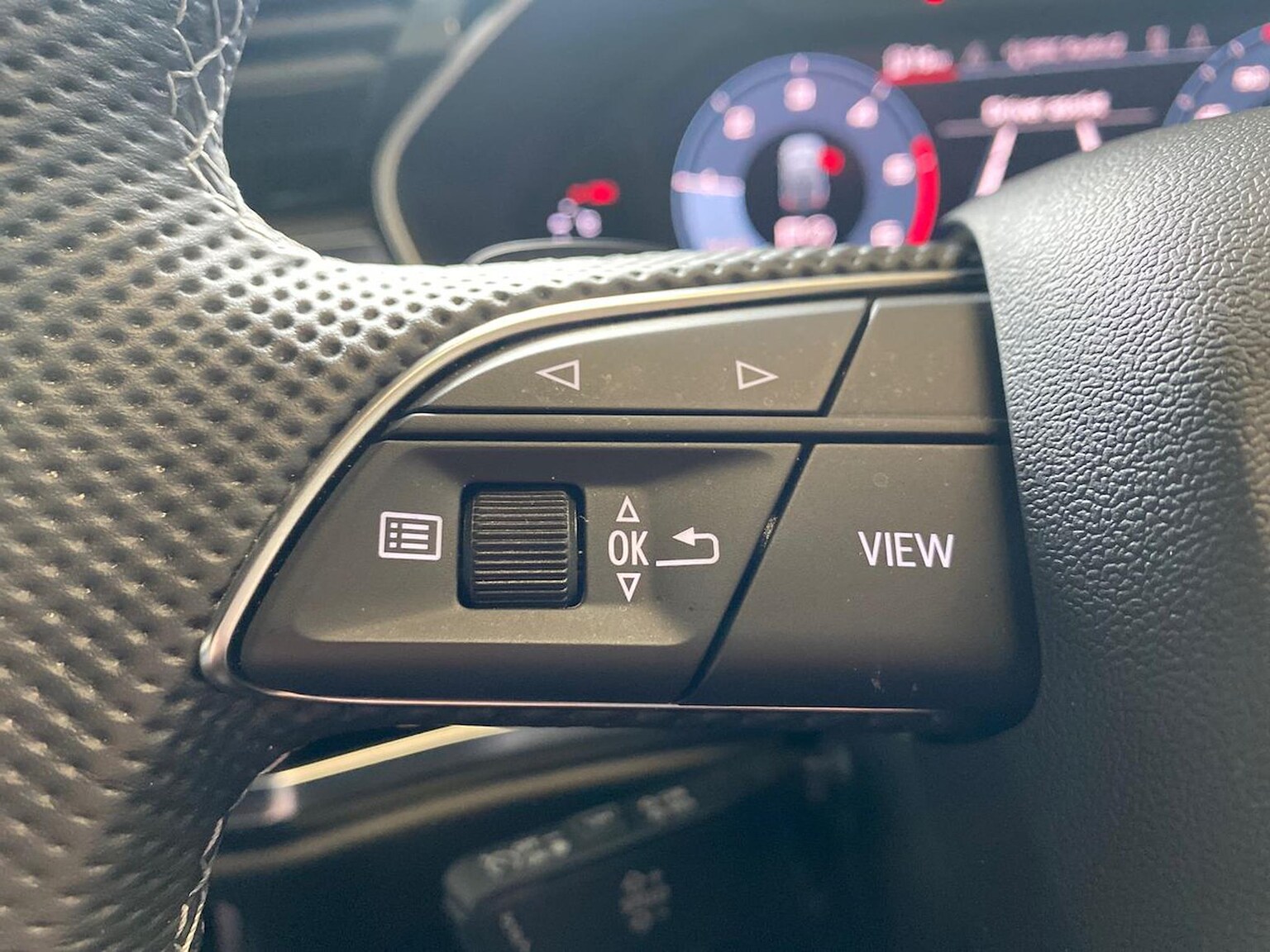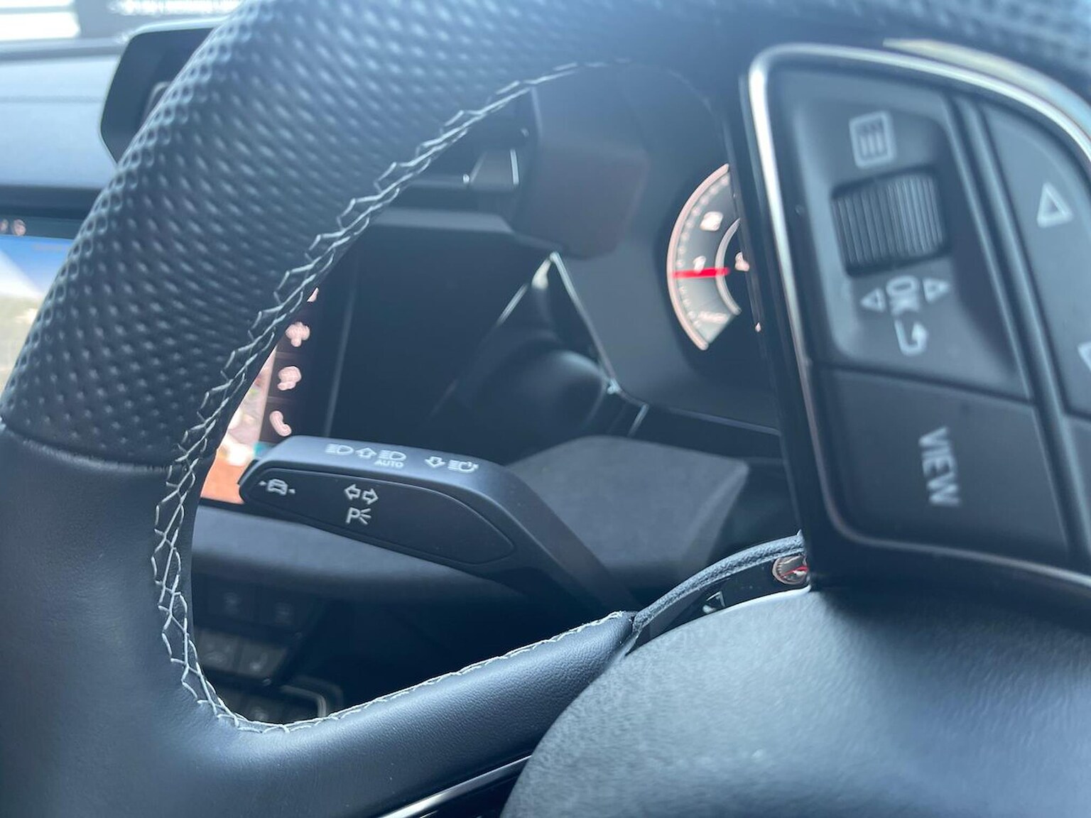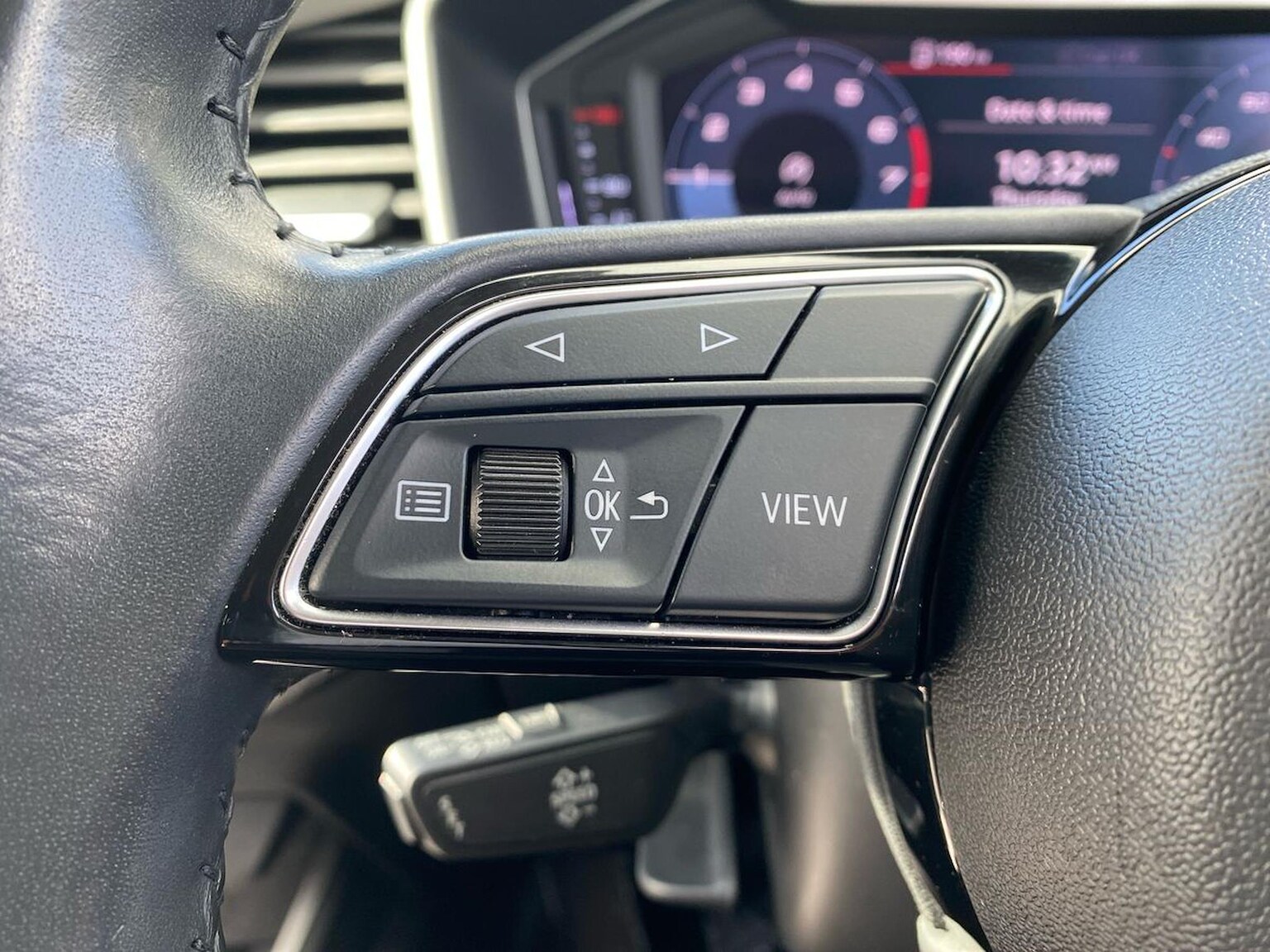 "3 spoke leather trimmed steering wheel with audio control",