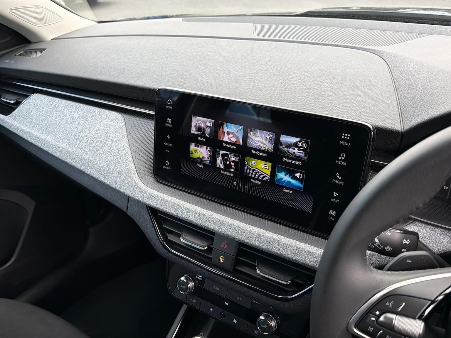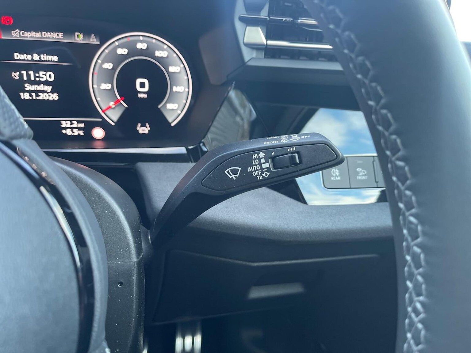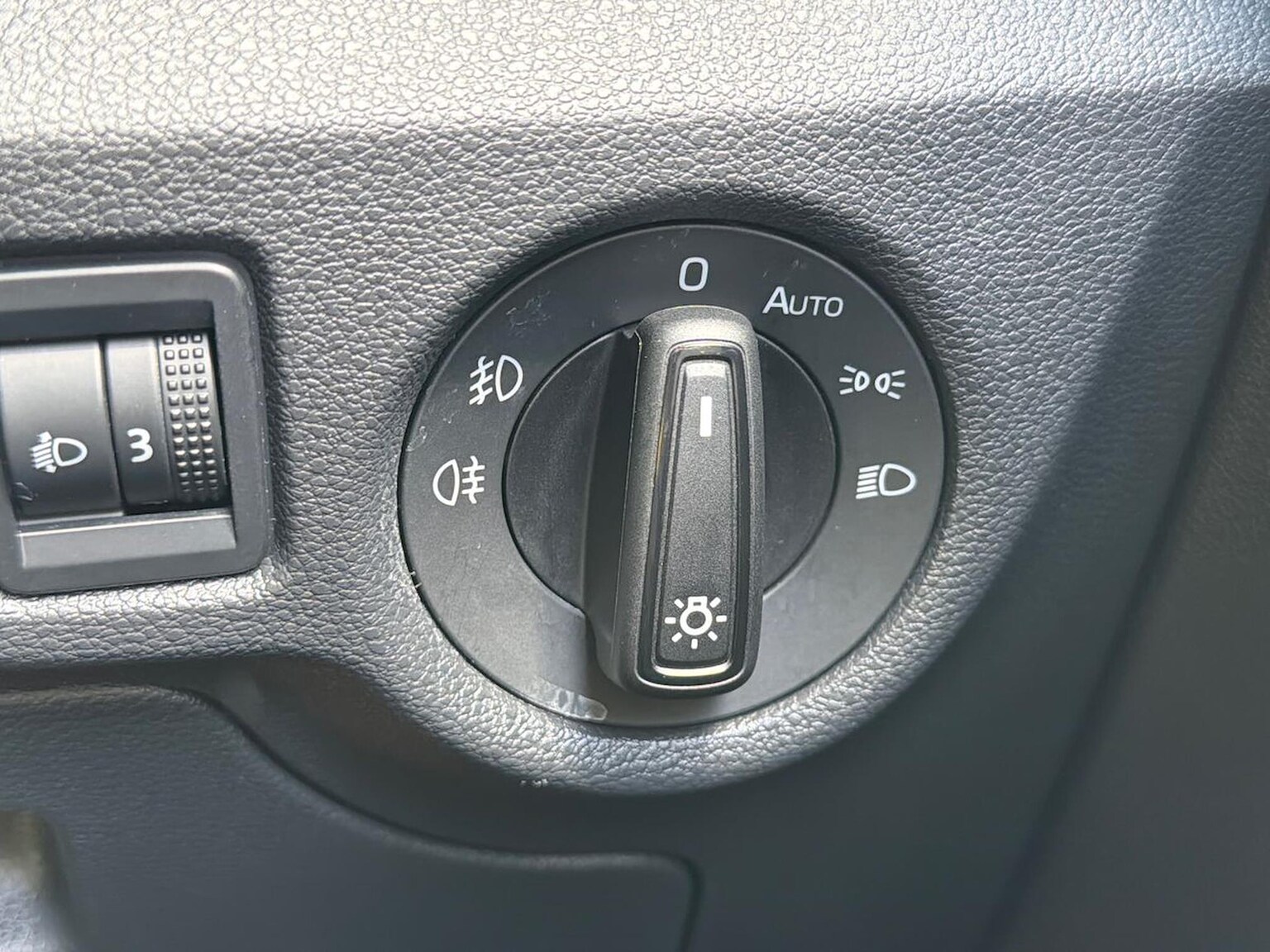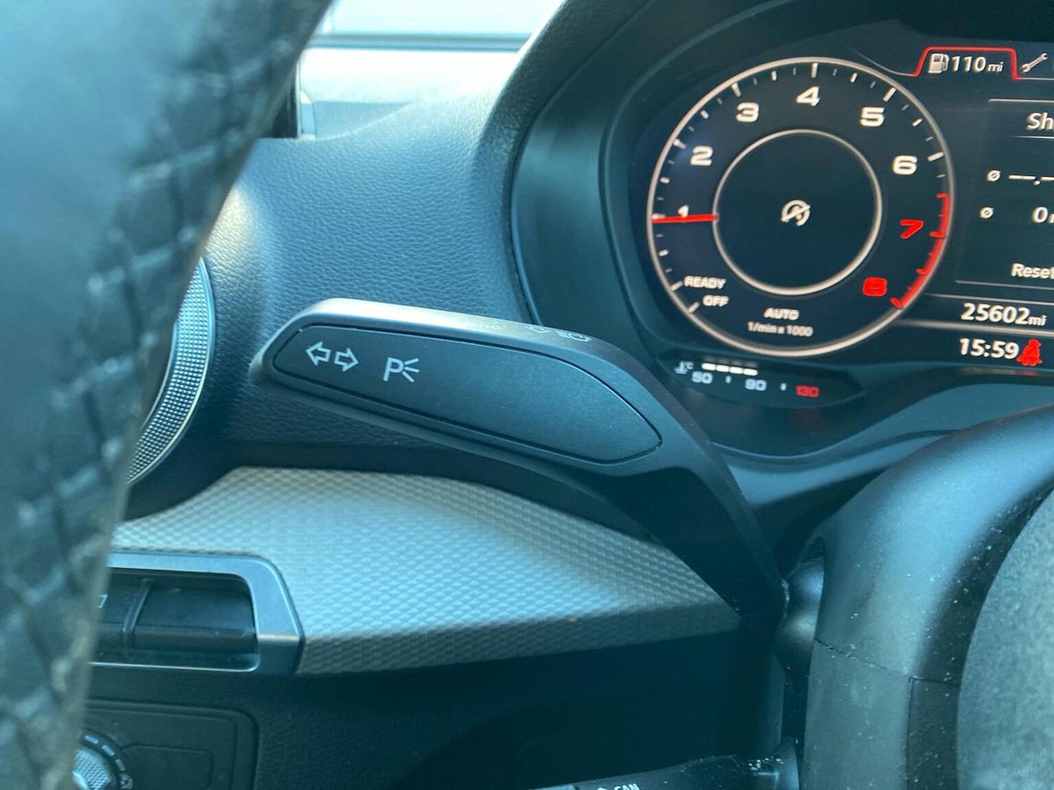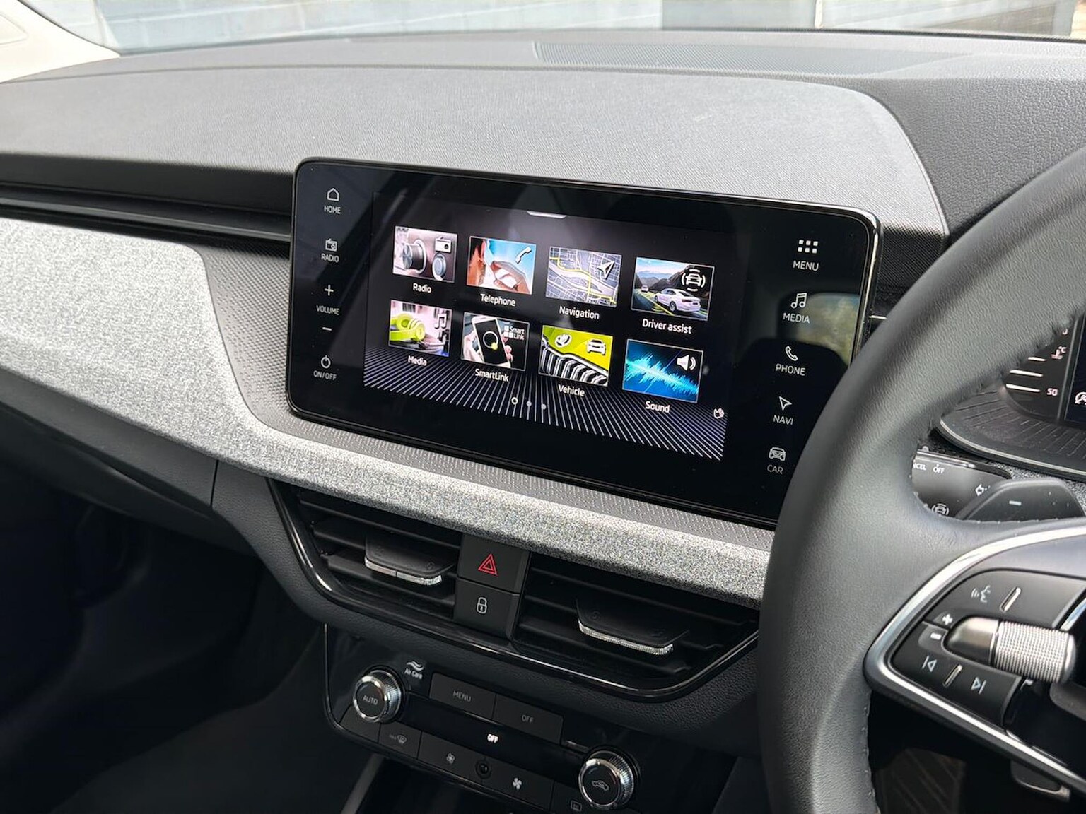 "3 spoke leather trimmed steering wheel with audio control",