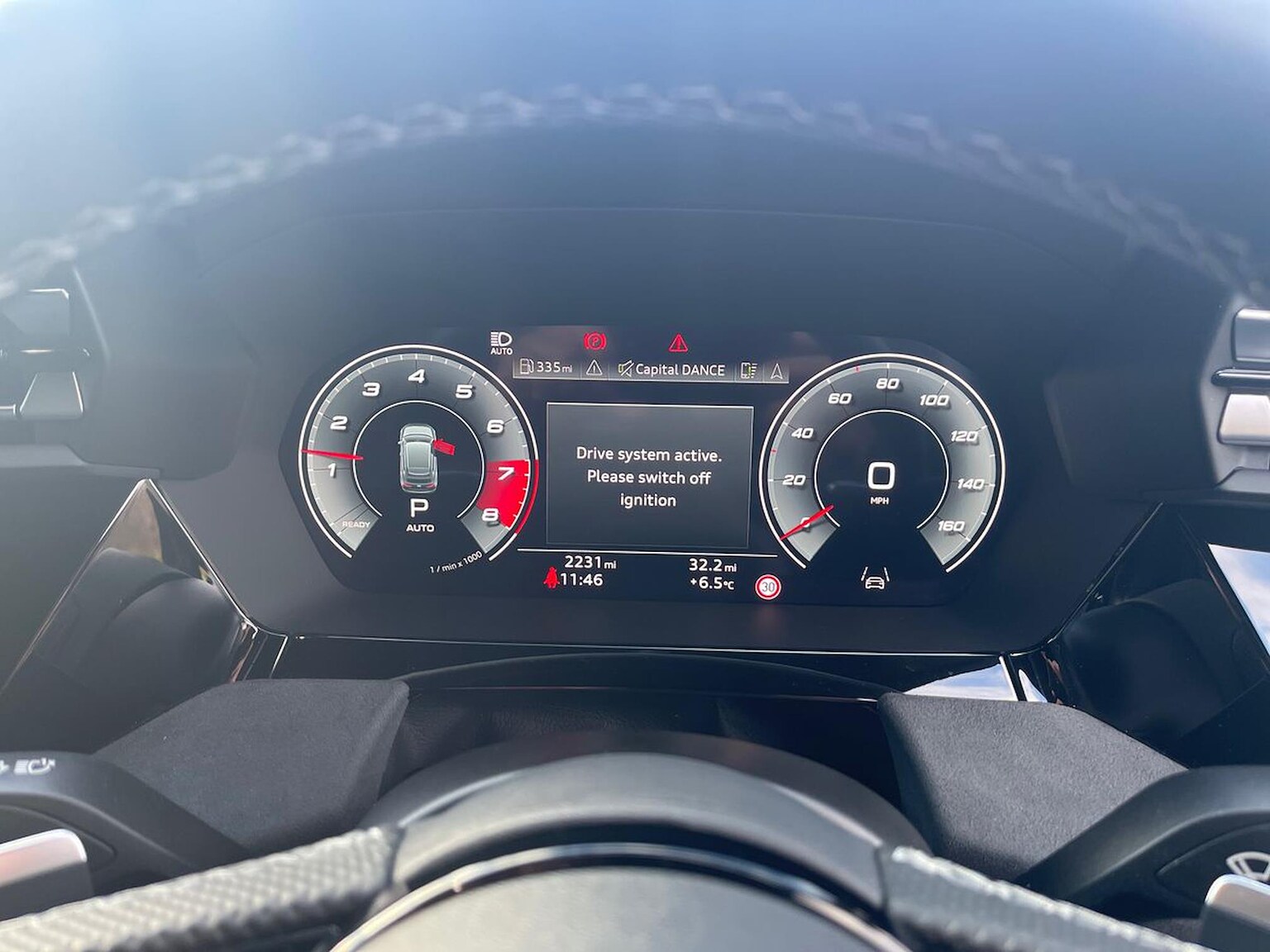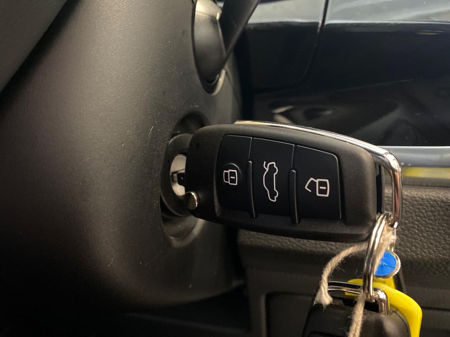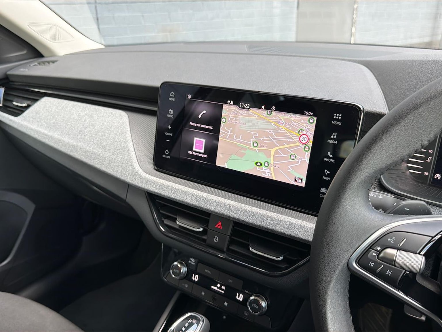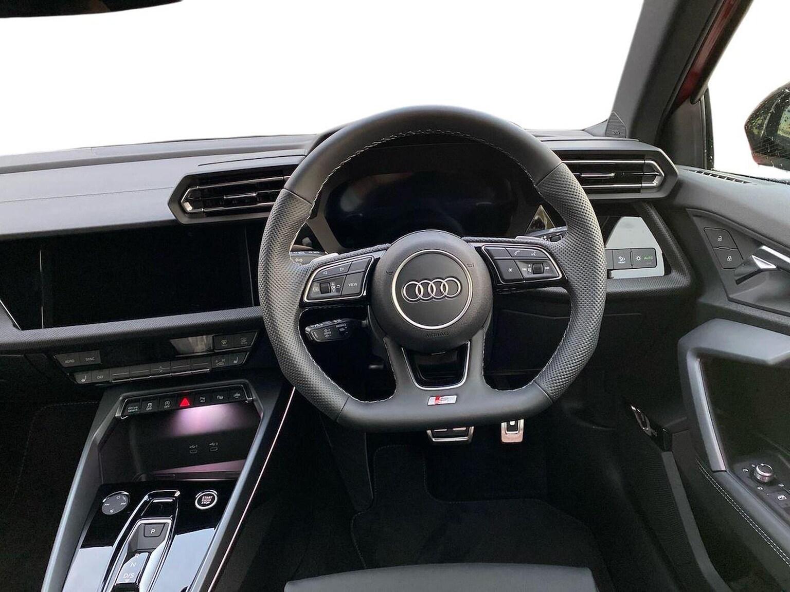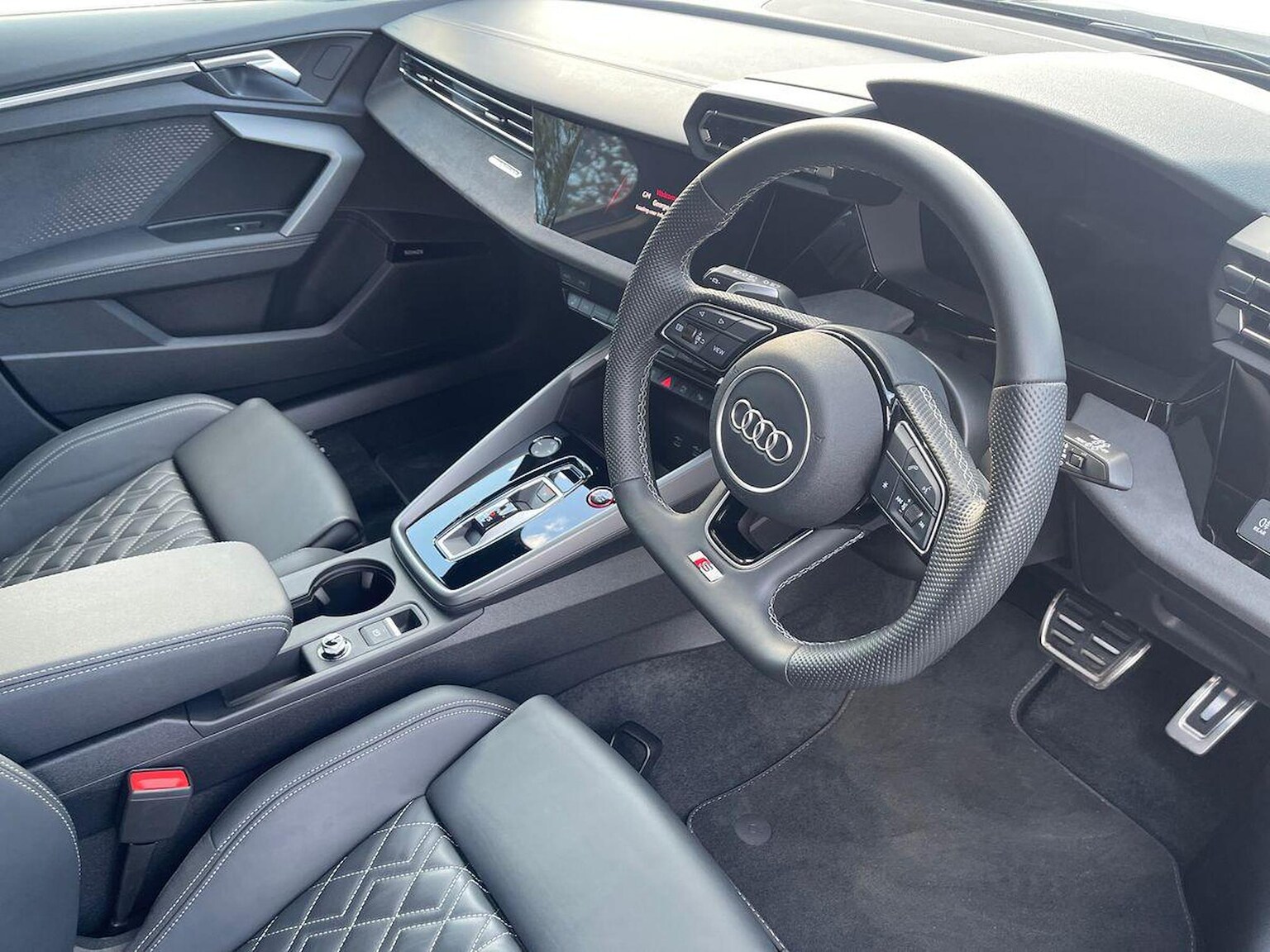 "3 spoke leather trimmed steering wheel with audio control",