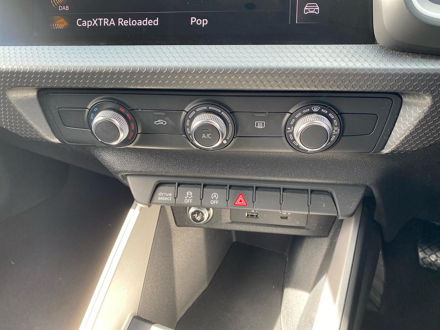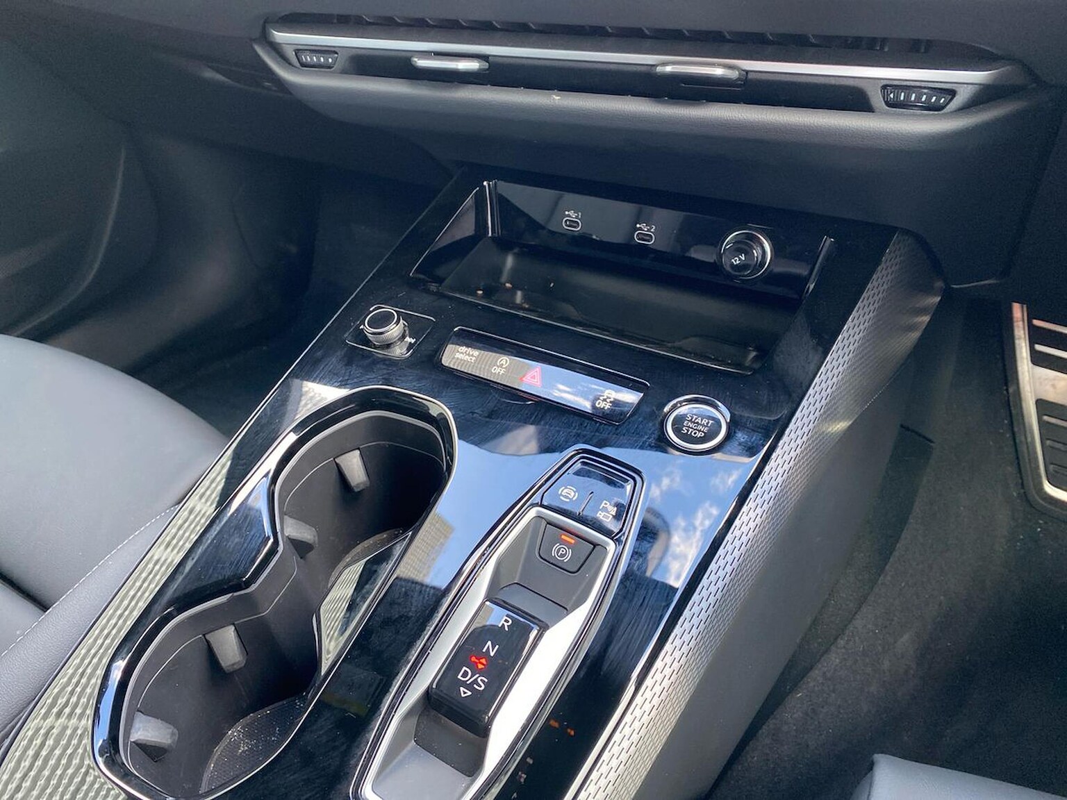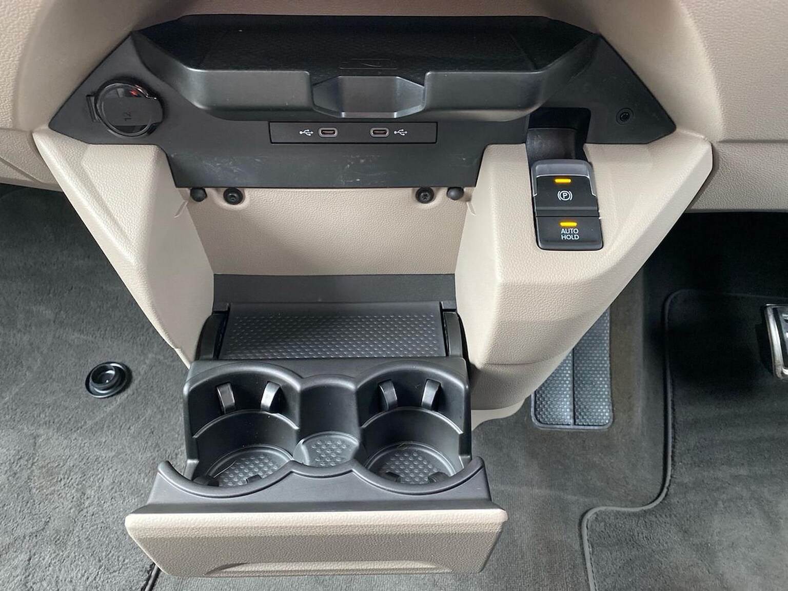 "Centre console with opening armrest, 2x cupholders, 12v and USB",
