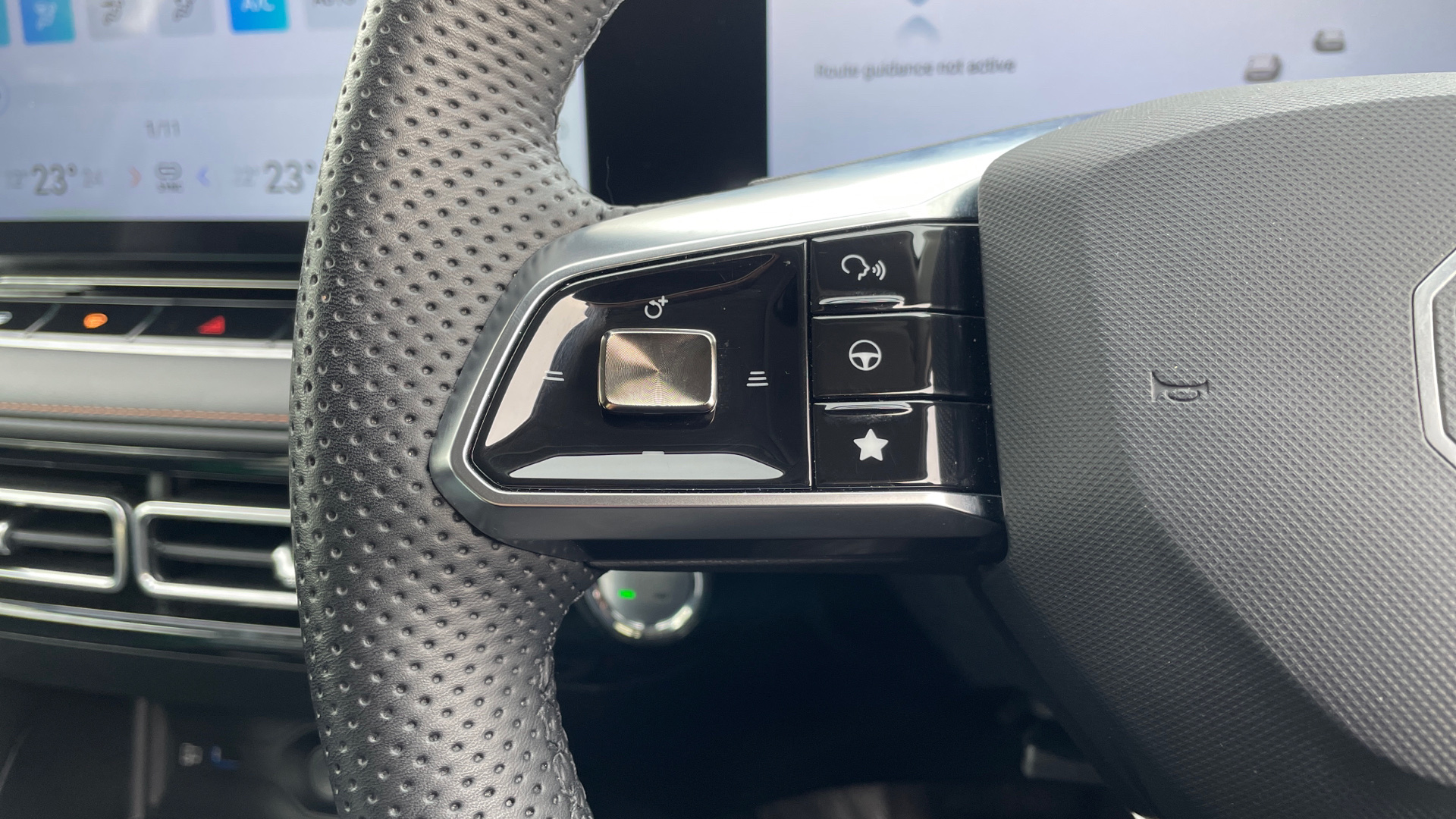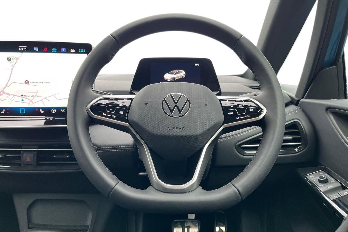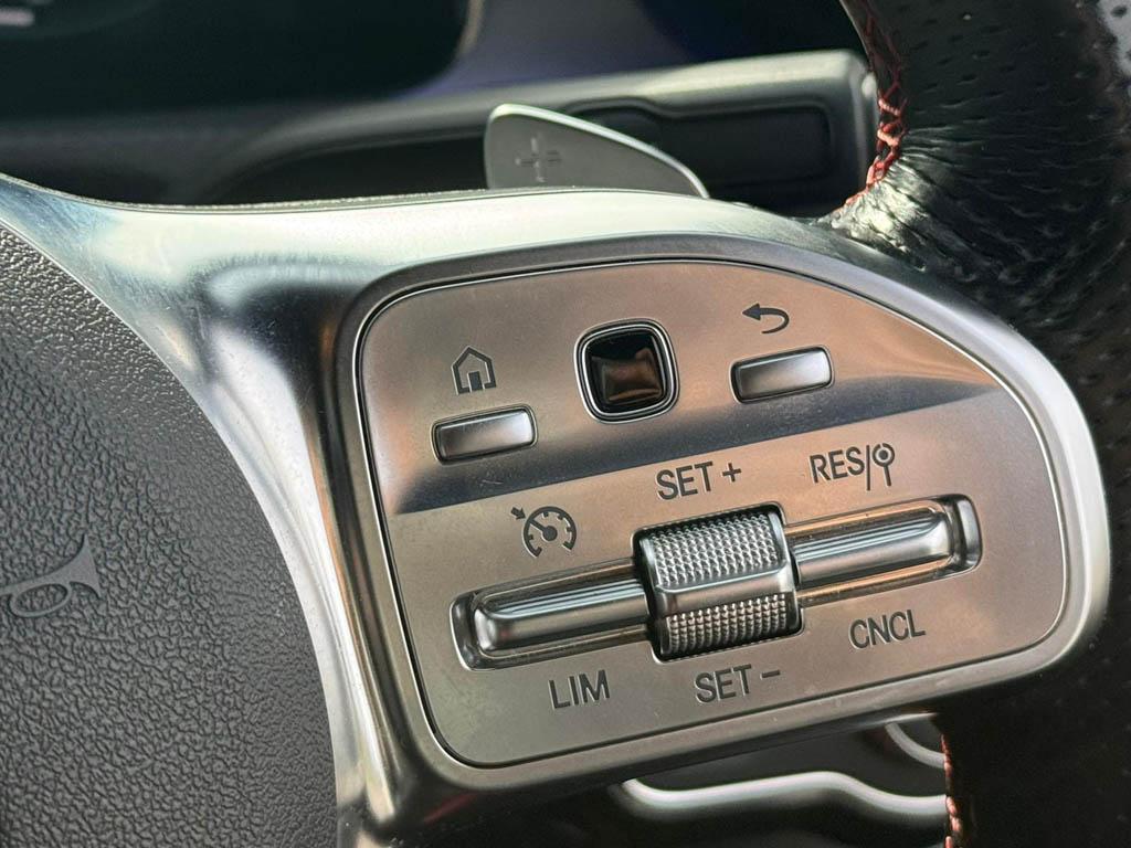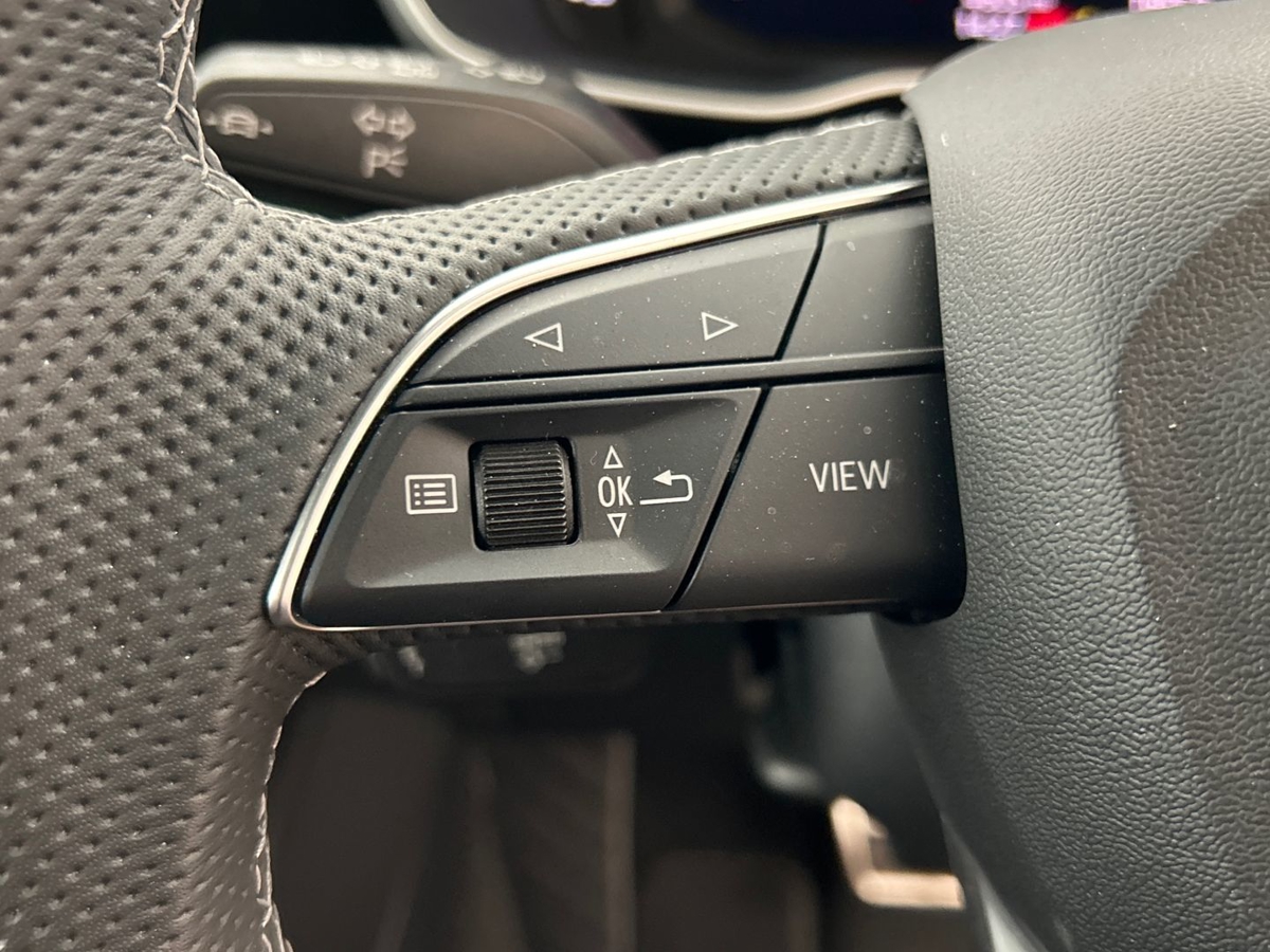 "Four spoke multifunction leather steering wheel with shift paddles for recuperation",