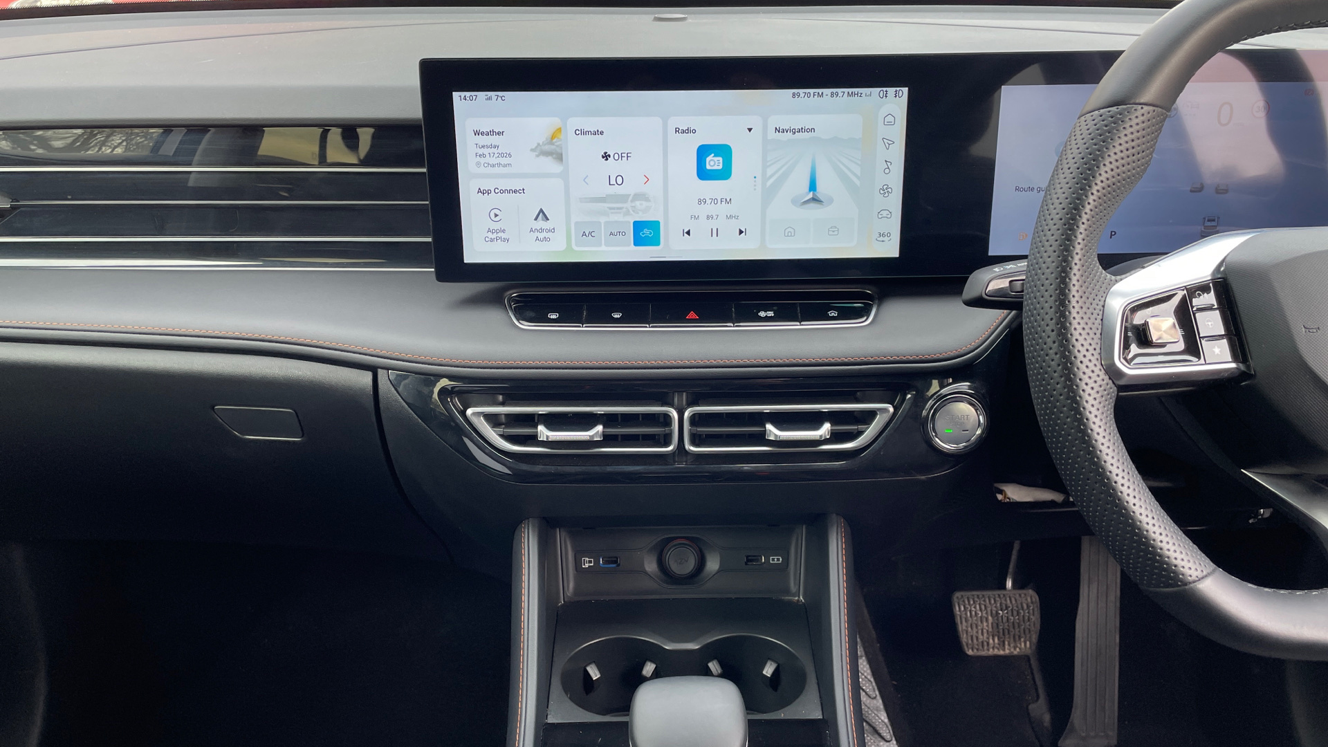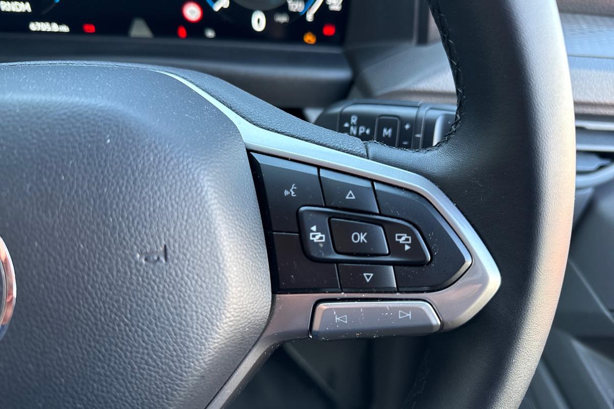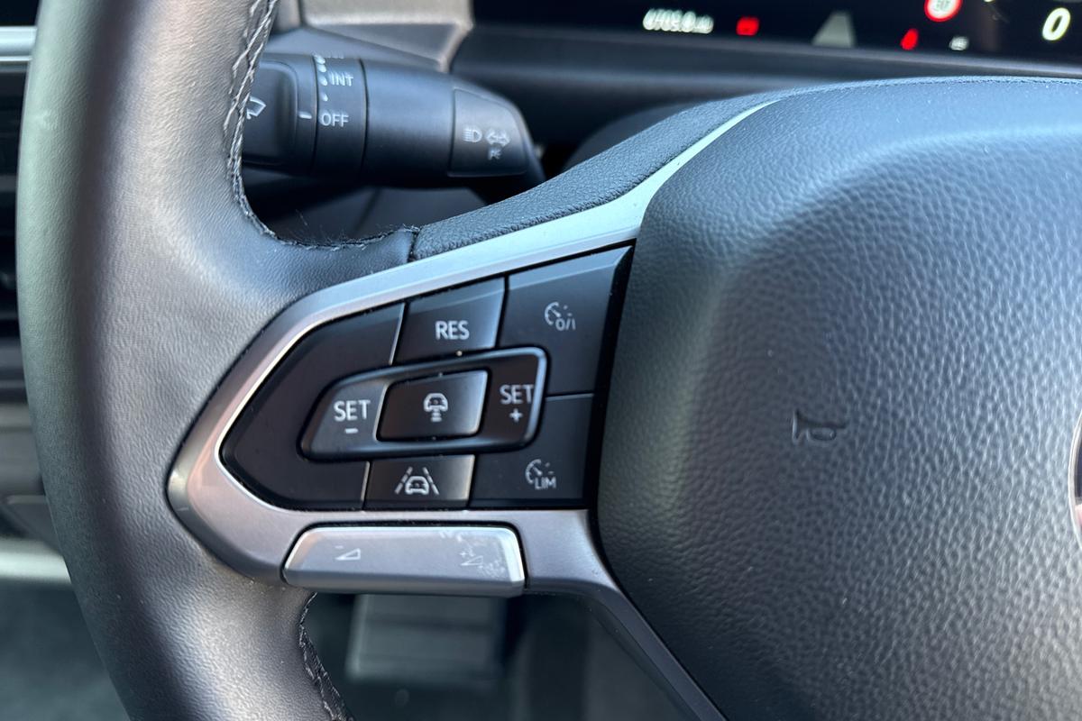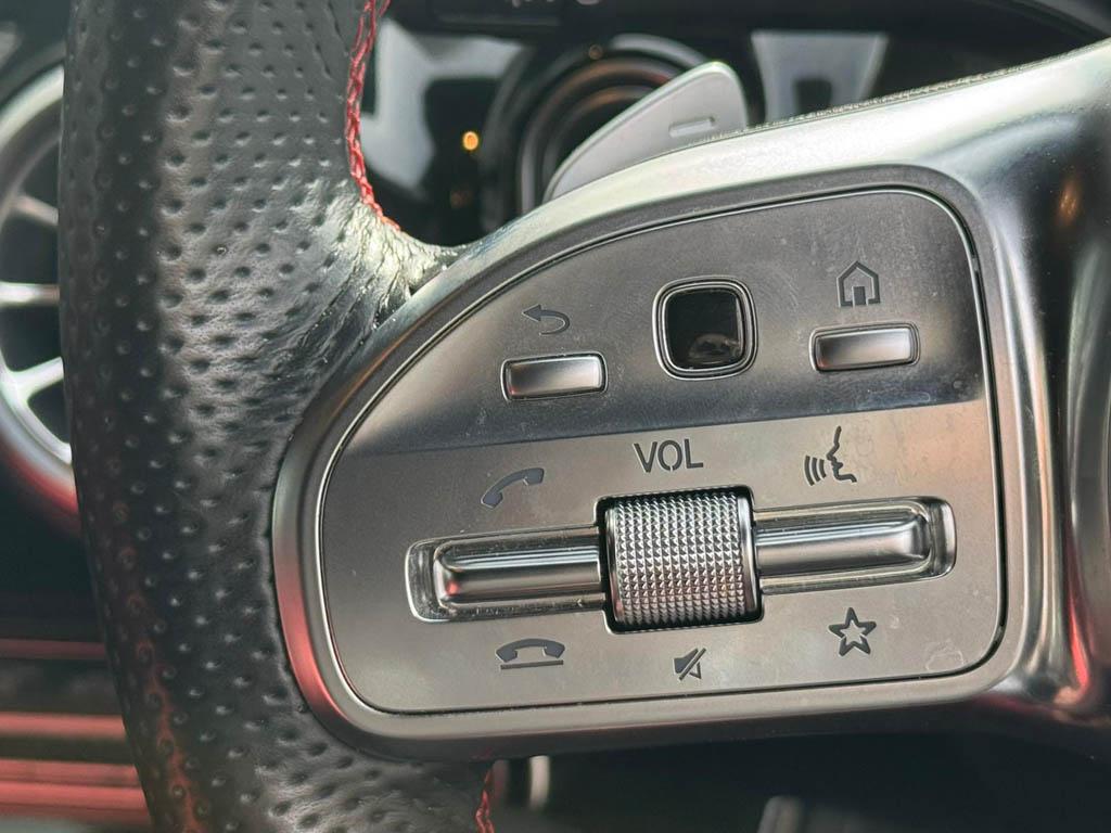 "Four spoke multifunction leather steering wheel with shift paddles for recuperation",