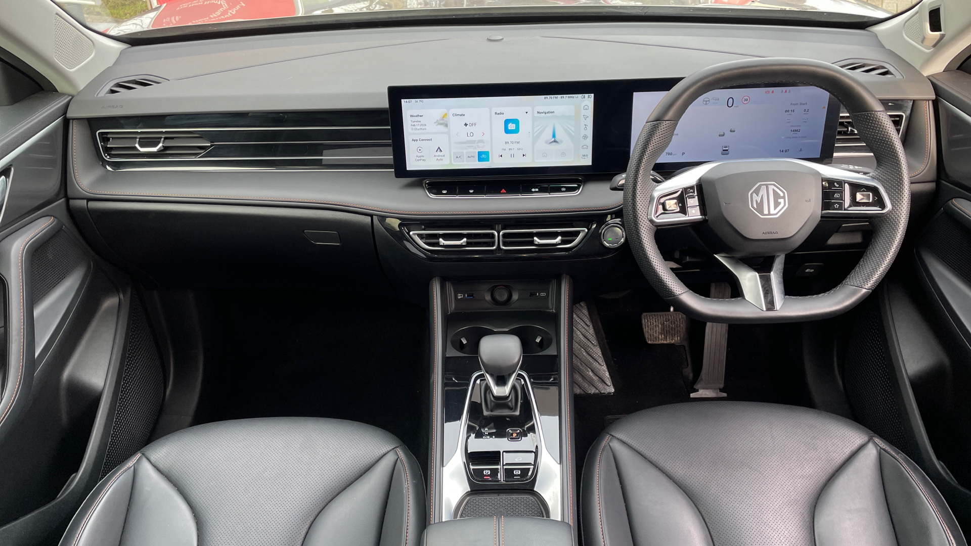 "Twin leather upholstery",