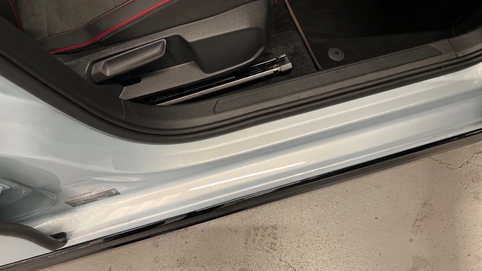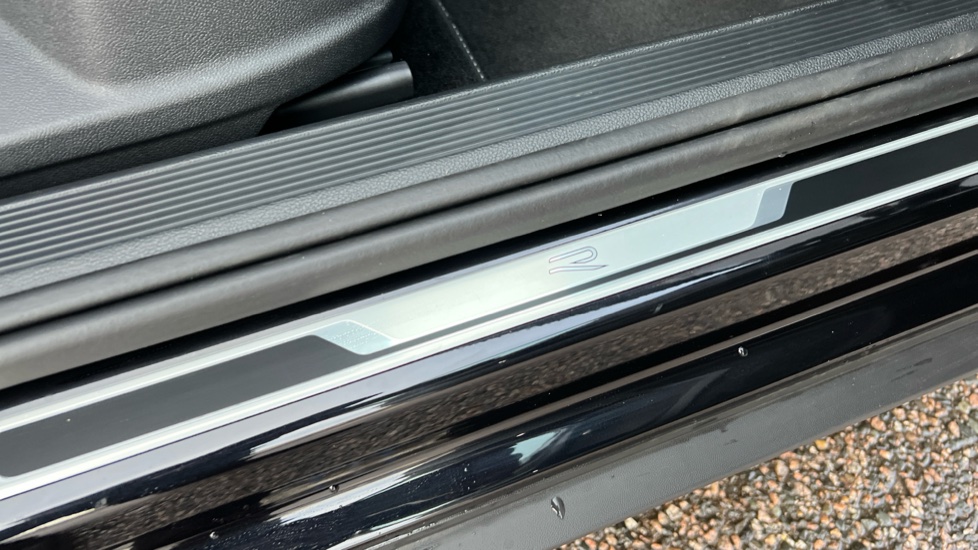 "Front scuff plates with R Line logo",
