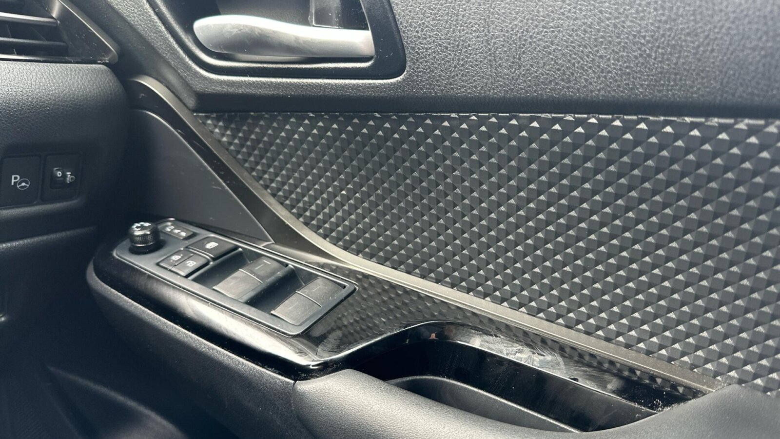 "Piano black decorative inserts in dashboard and front door trim panels"