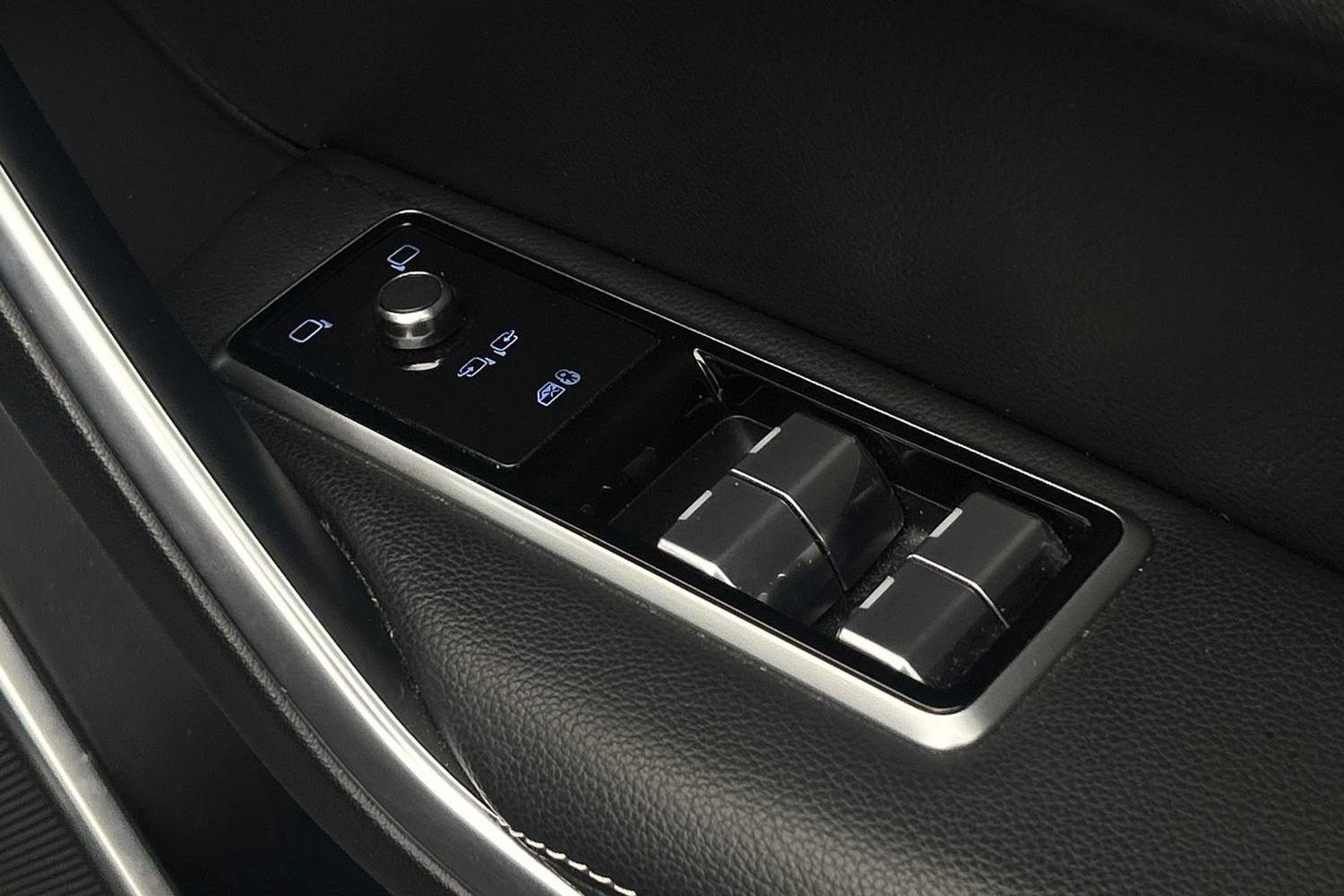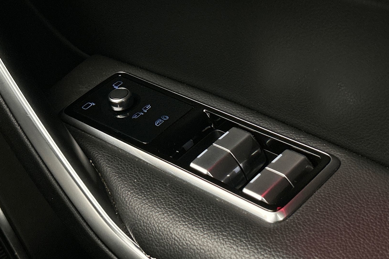 "Power window switches with satin chrome inserts",