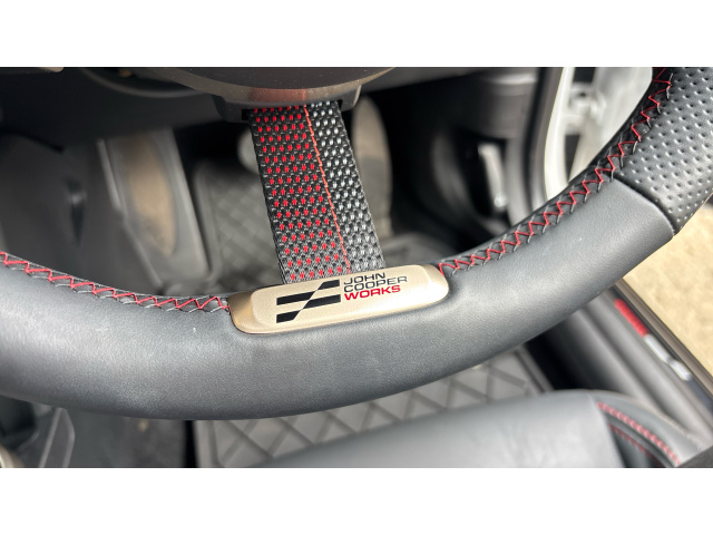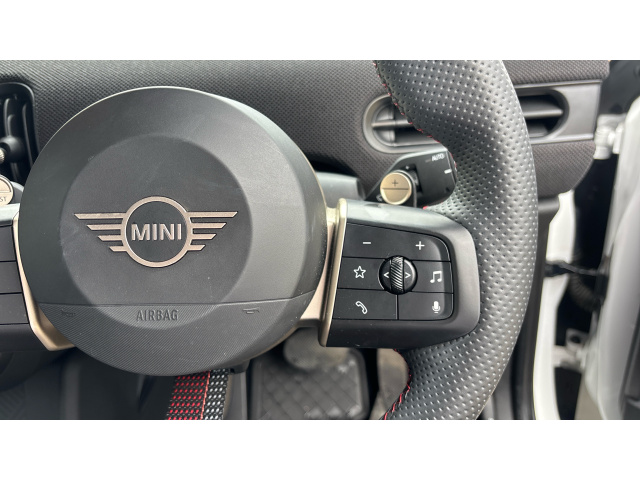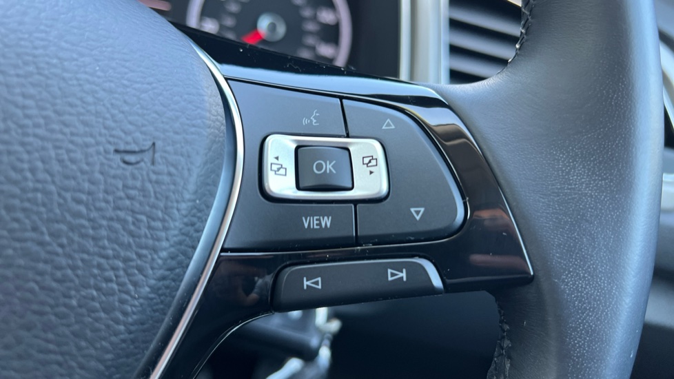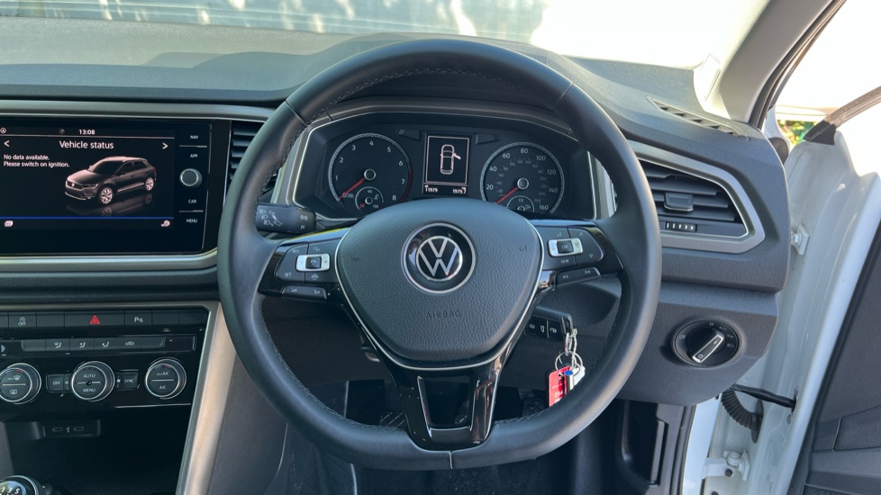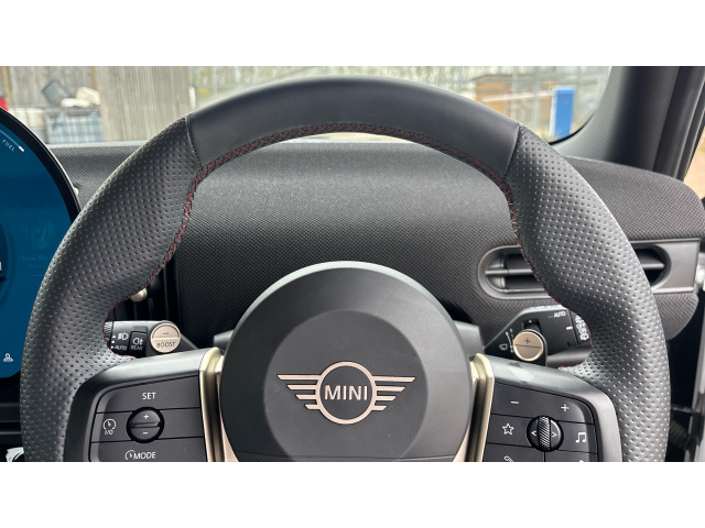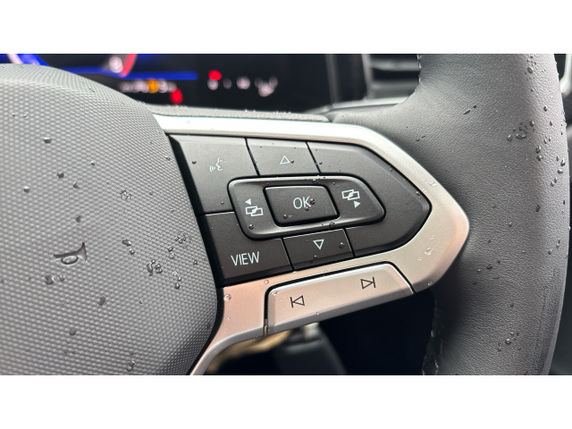 "Three spoke leather wrapped multifunction steering wheel"
