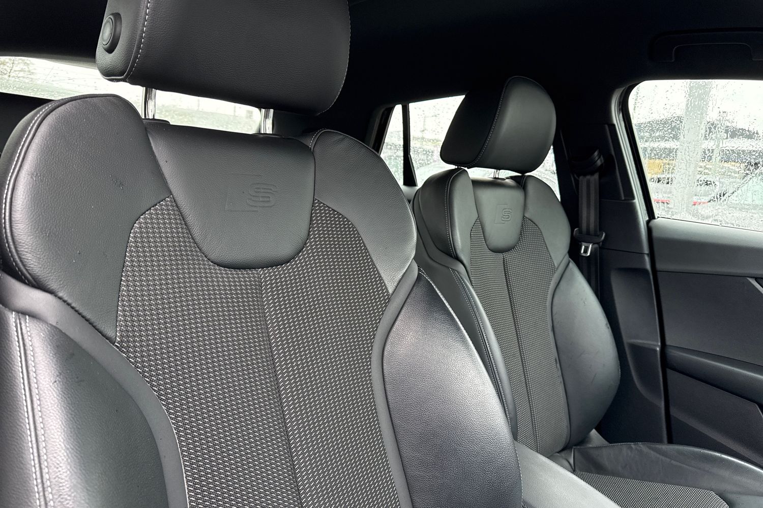 "Leather/artificial leather upholstery combination with S emblem + front sports seats",