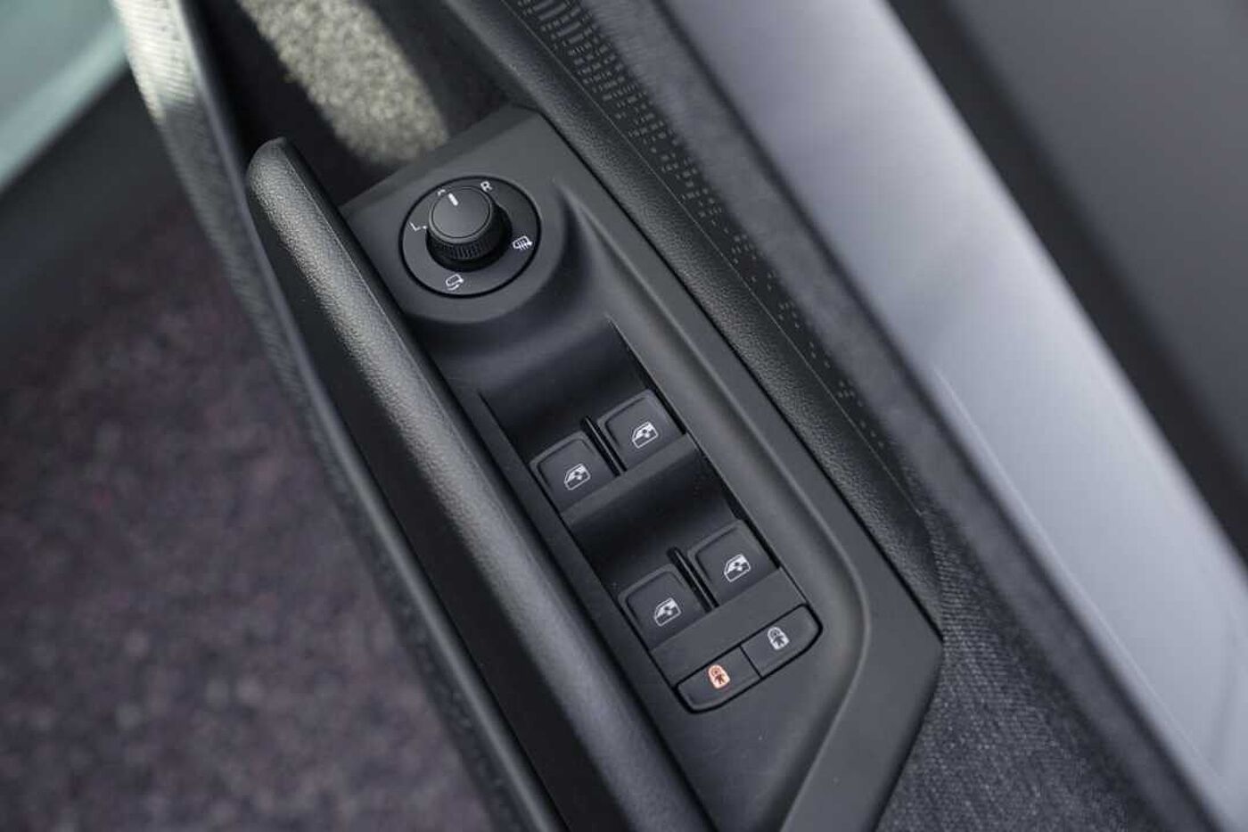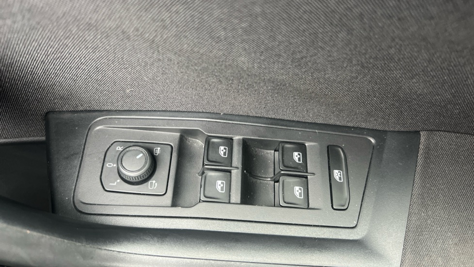 "Electric adjustable heated folding door mirrors with boarding spots and welcome logo",