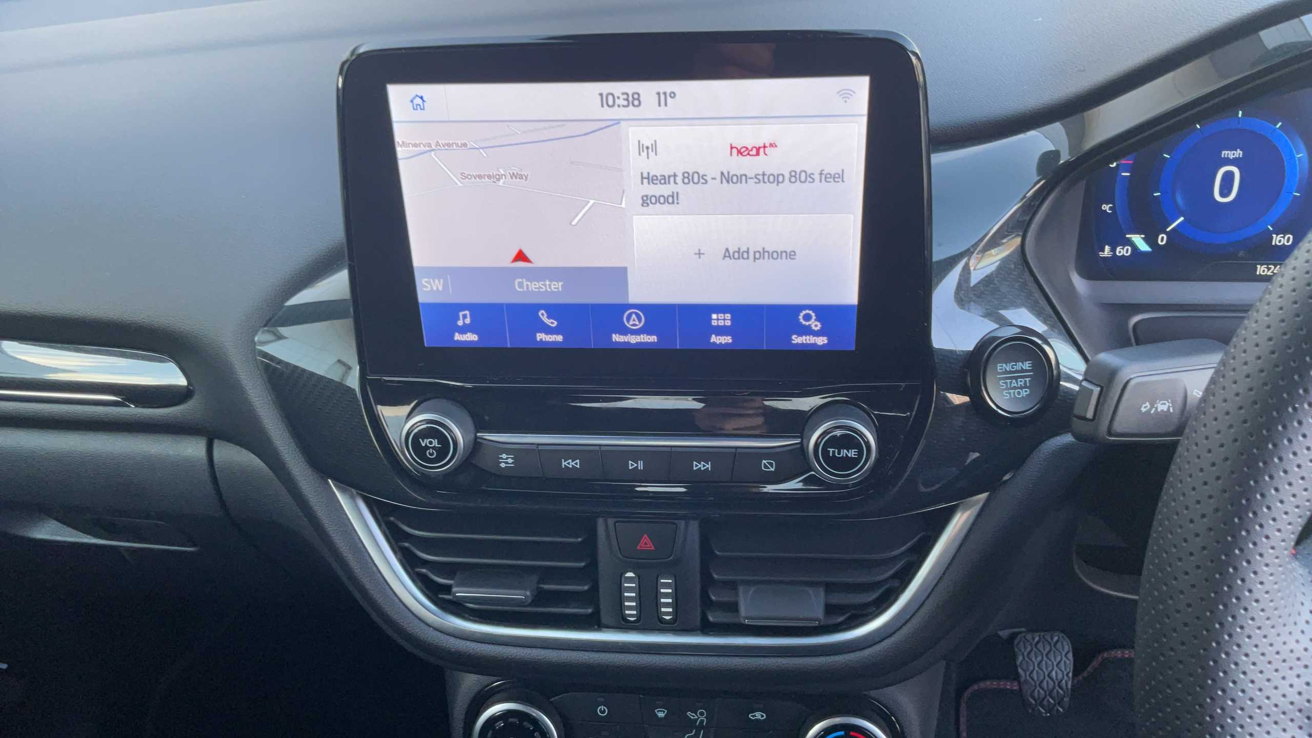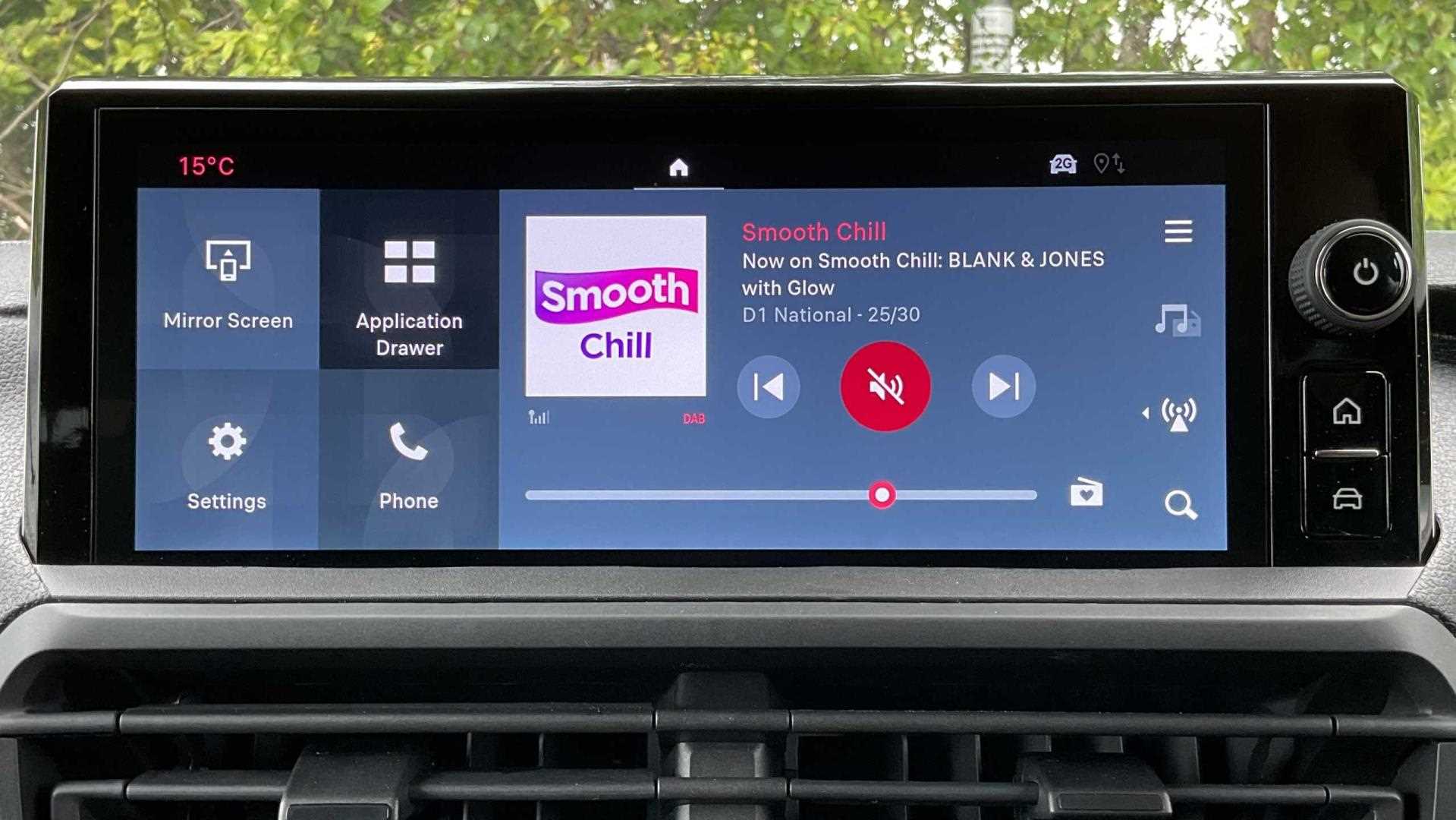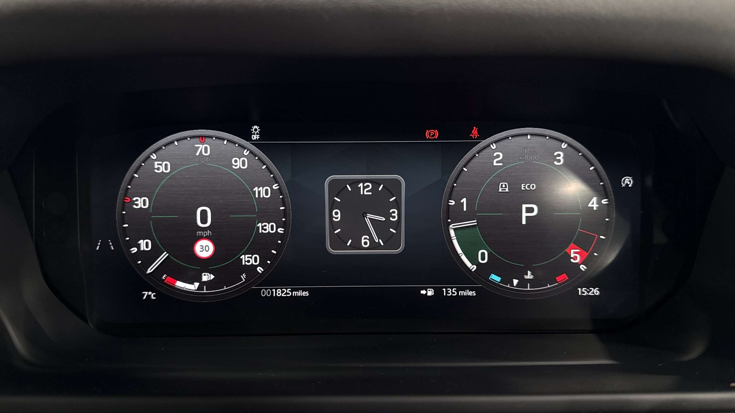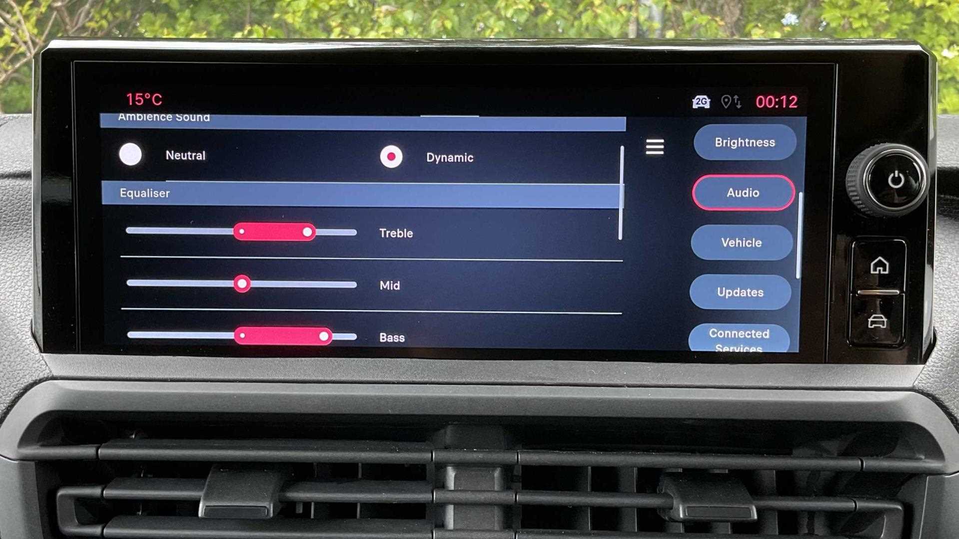 "Central facia display with digital clock, outside air temperature and audio information",