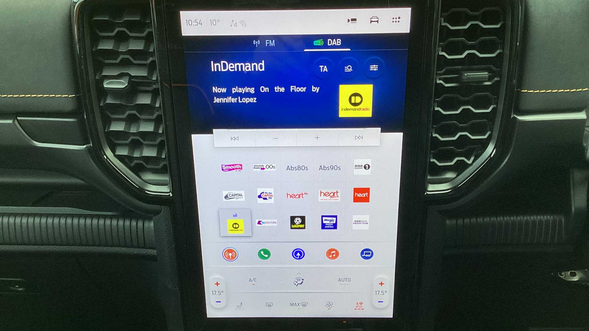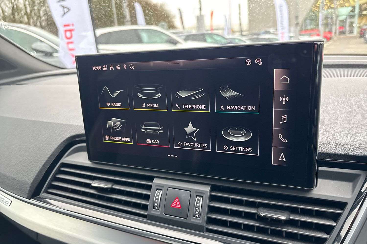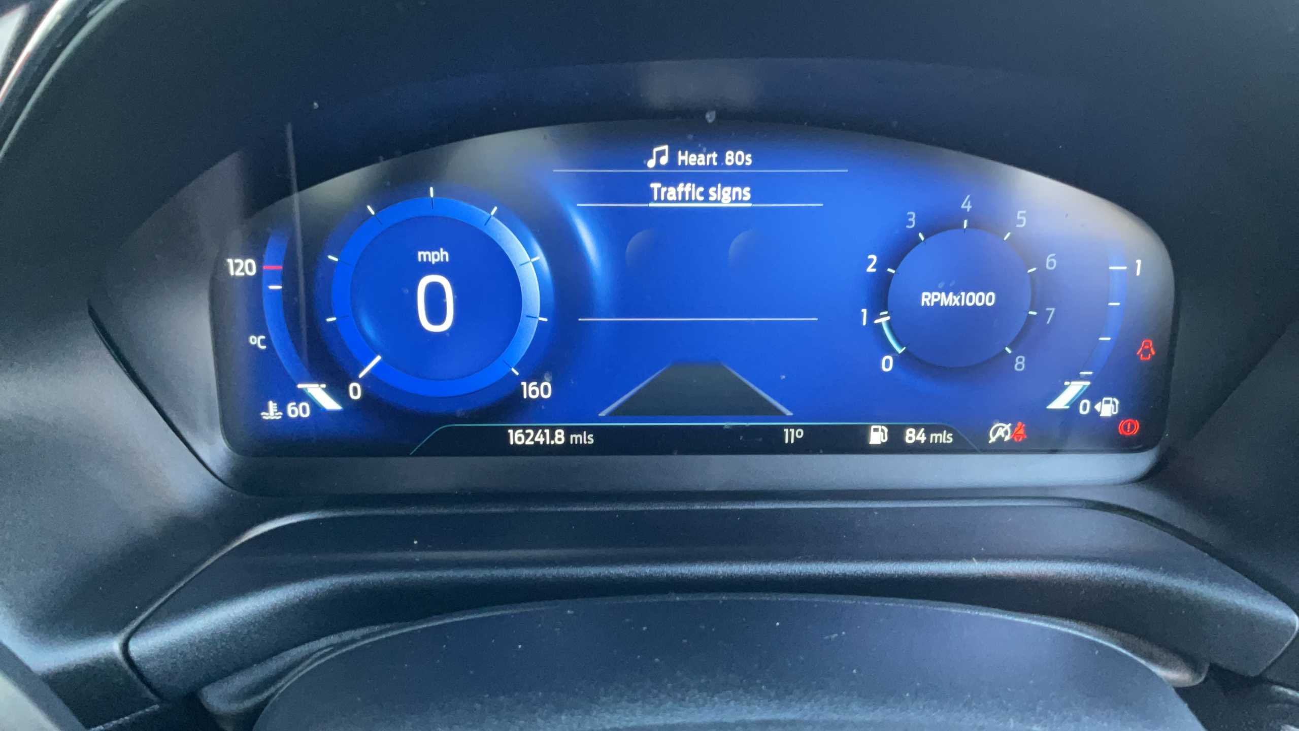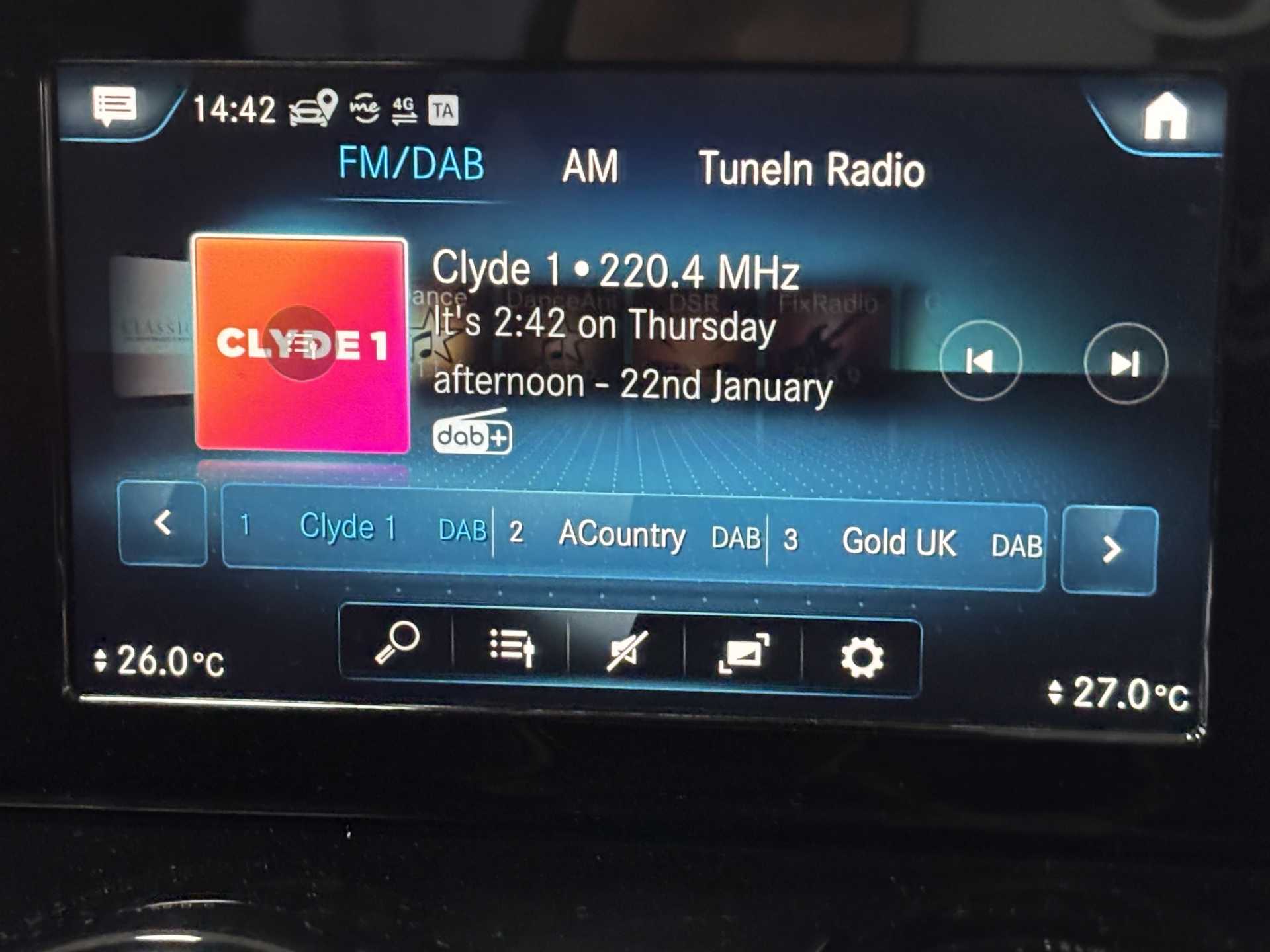 "Central facia display with digital clock, outside air temperature and audio information",