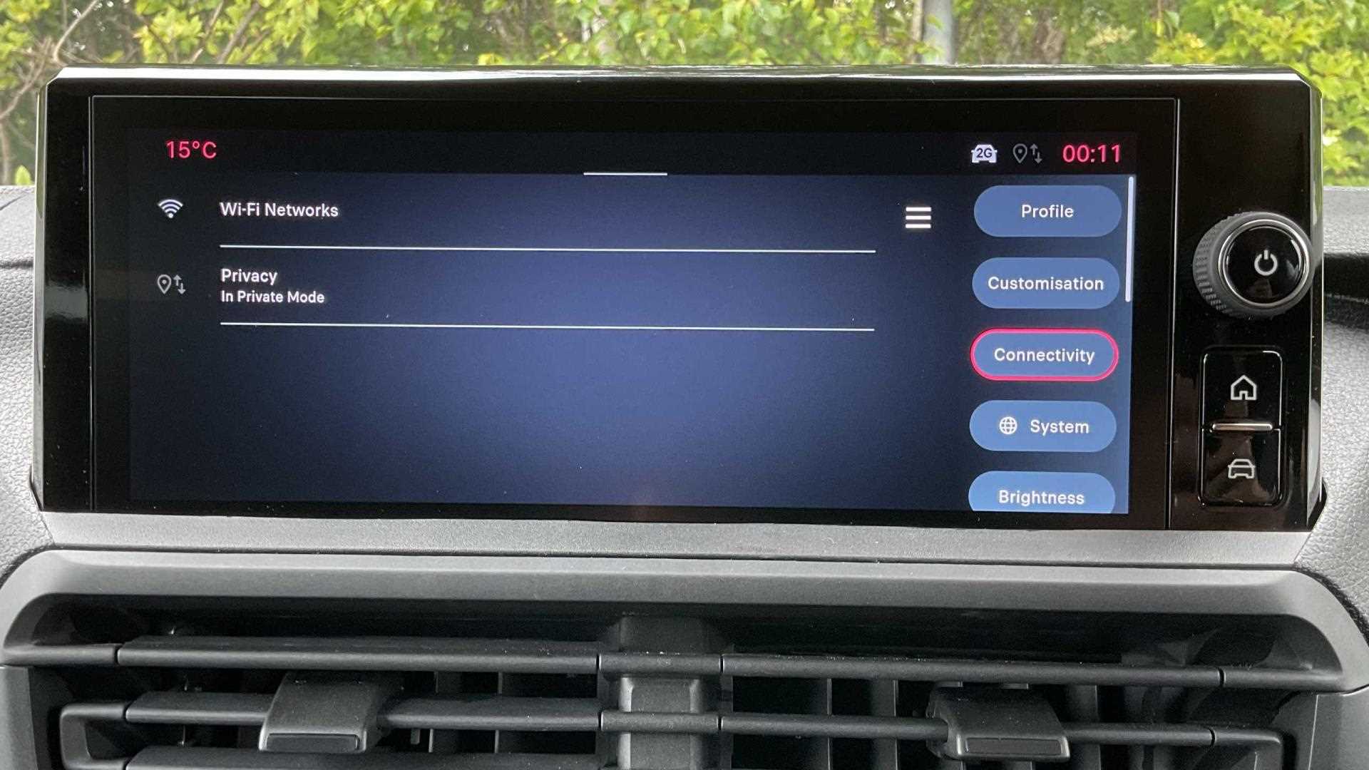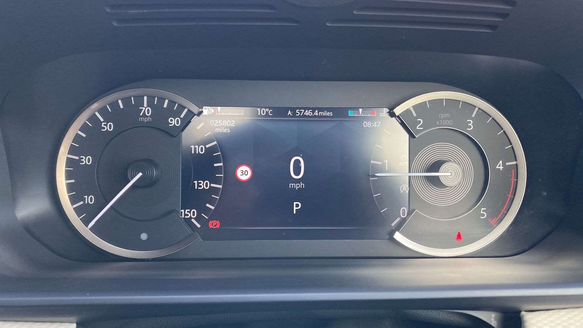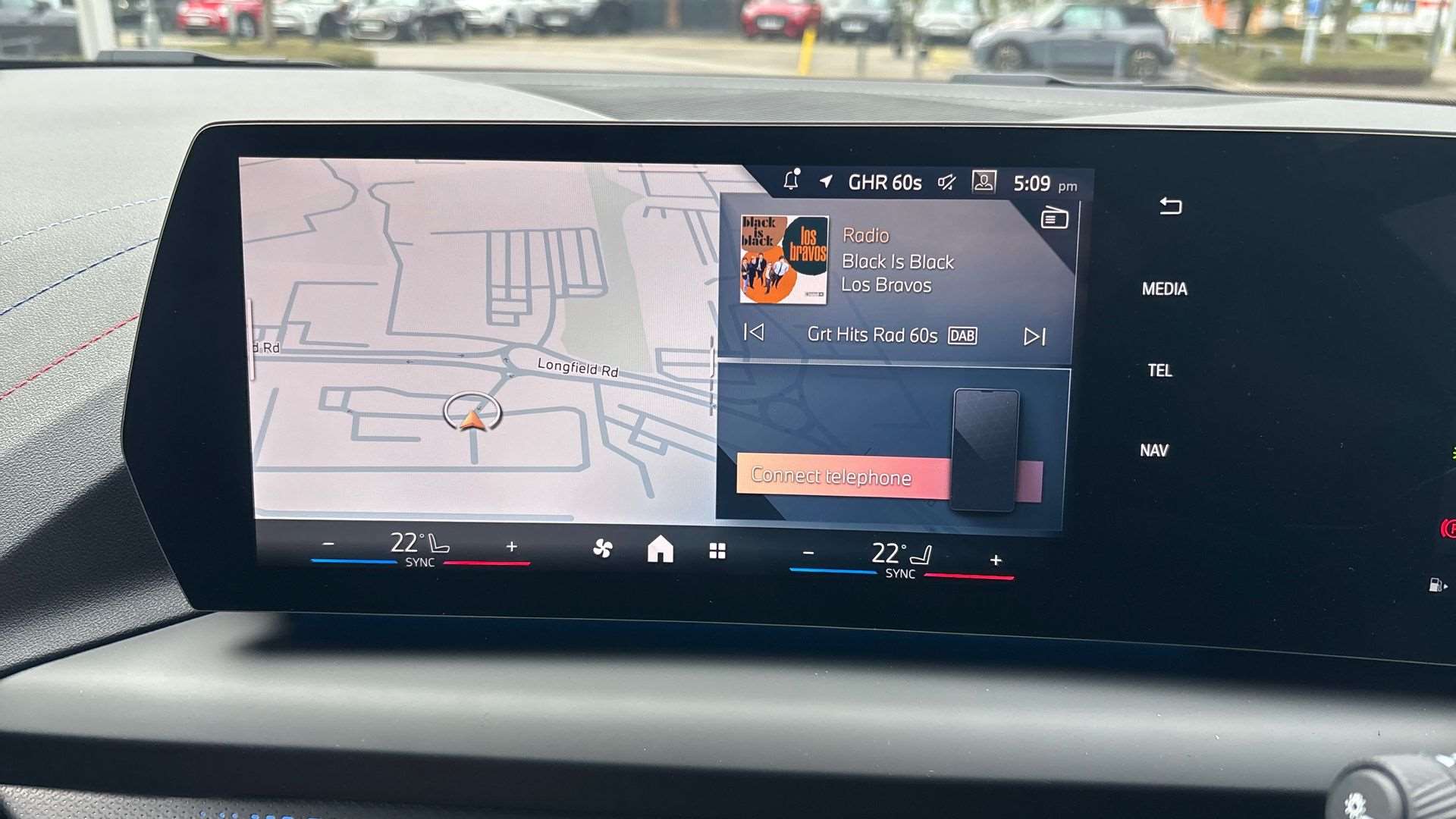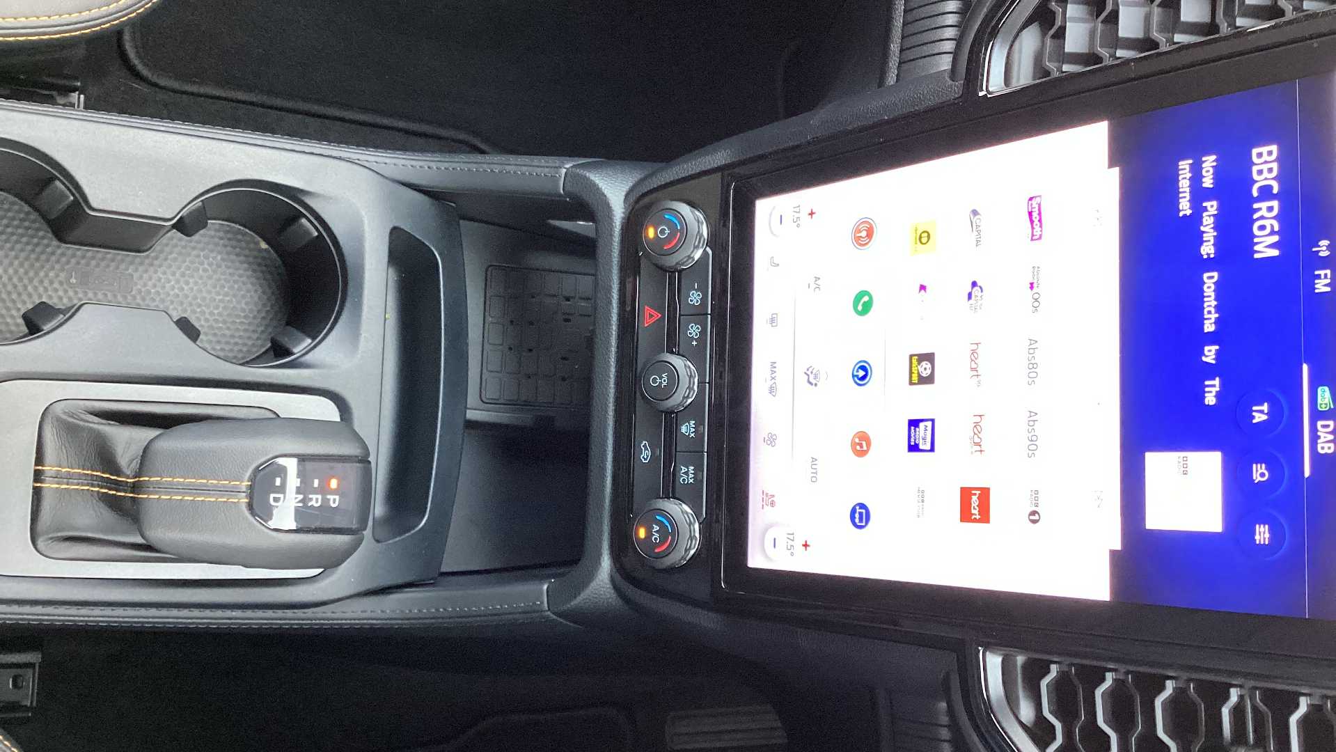 "Central facia display with digital clock, outside air temperature and audio information",