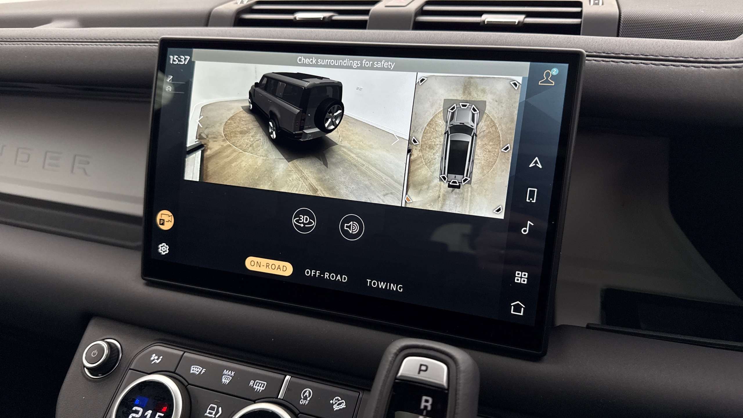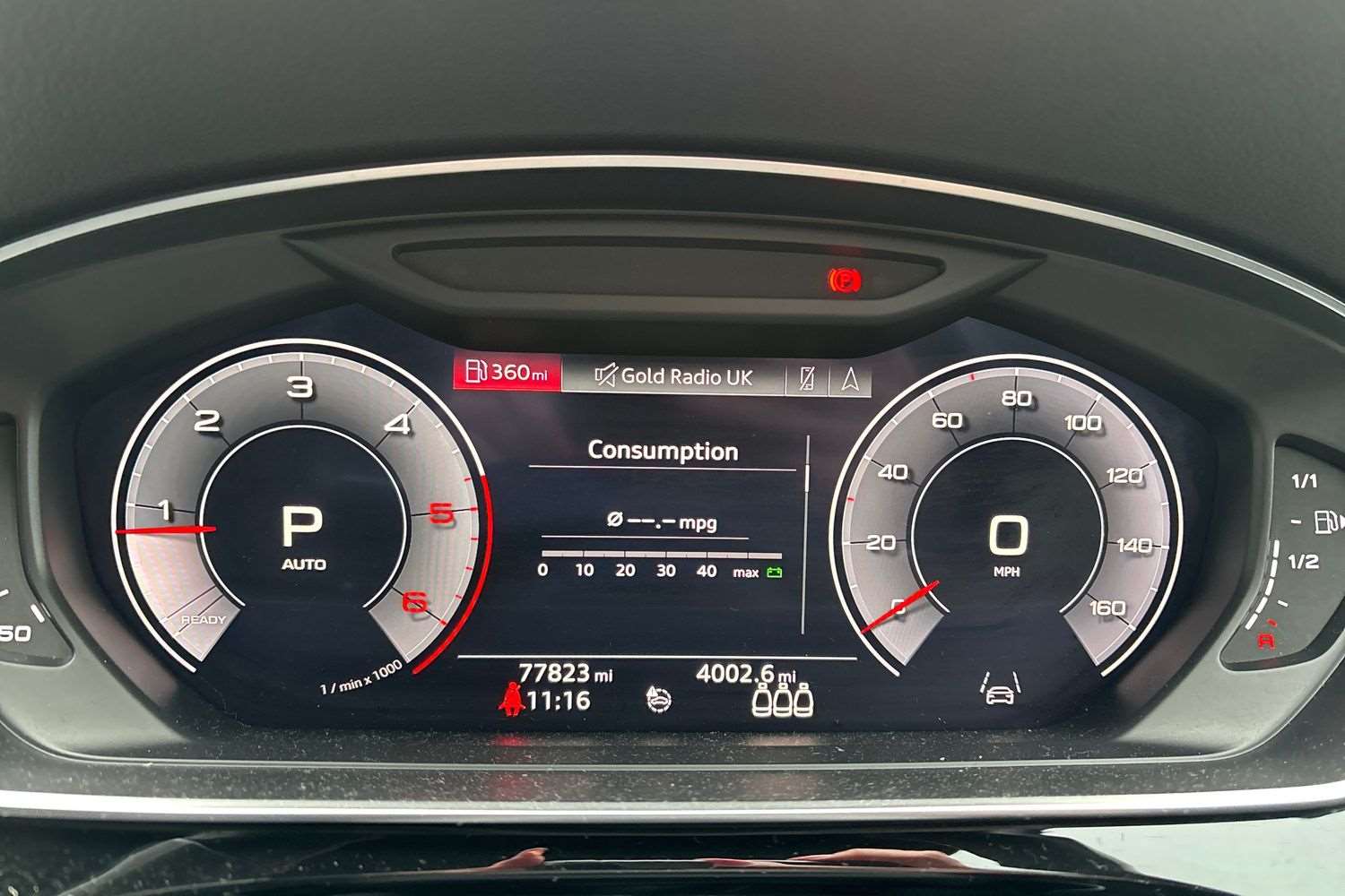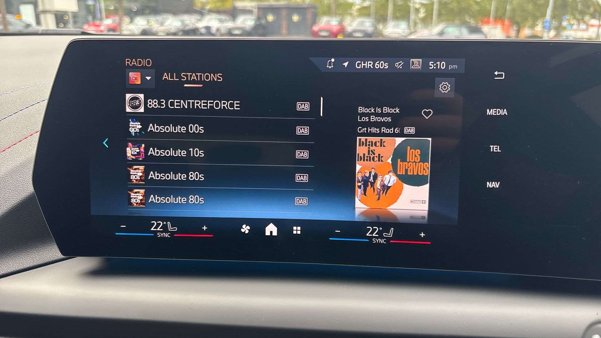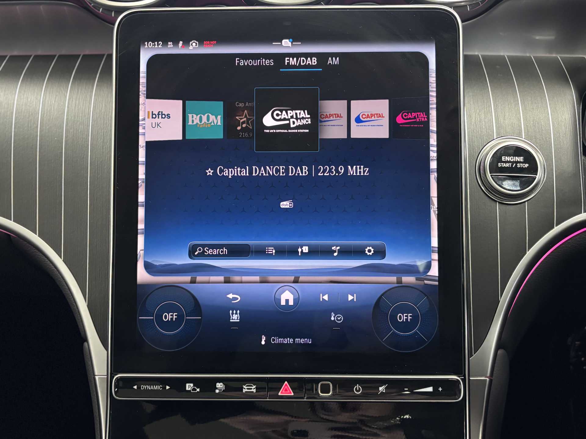 "Central facia display with digital clock, outside air temperature and audio information",