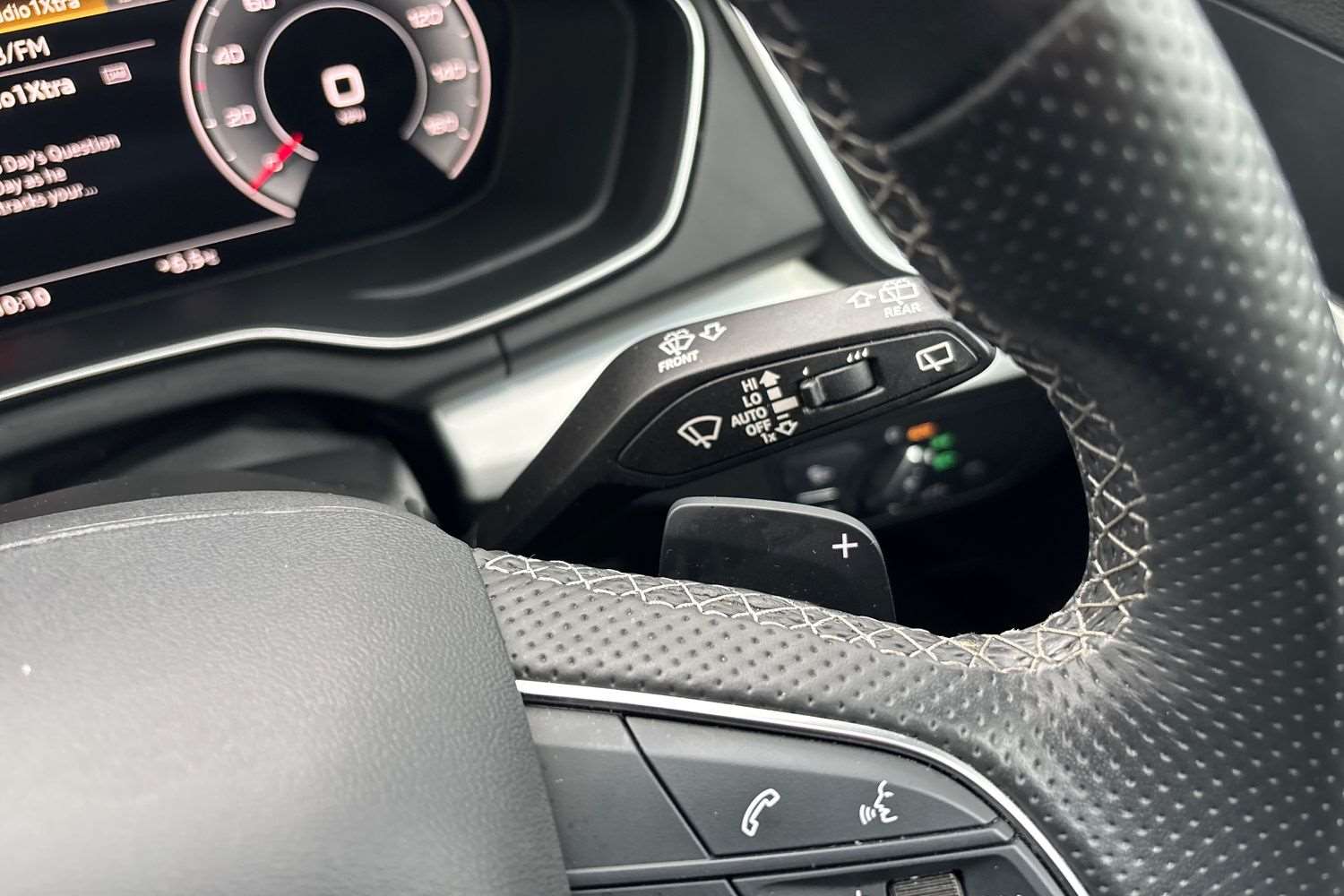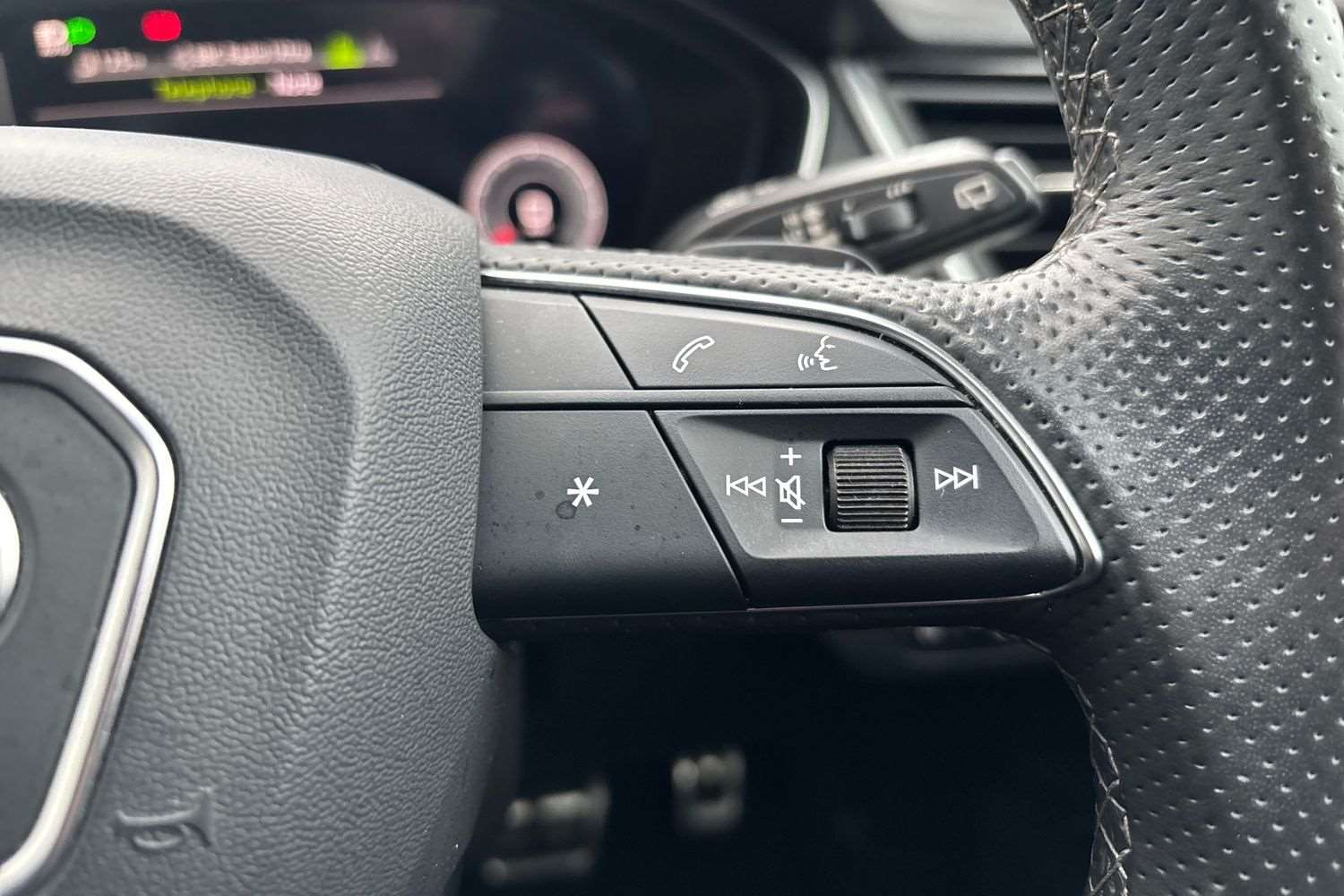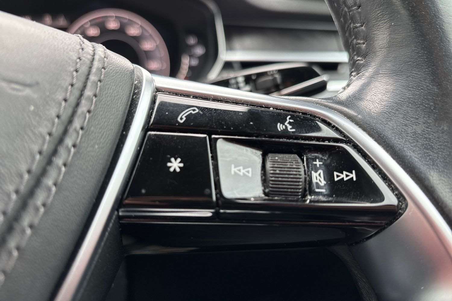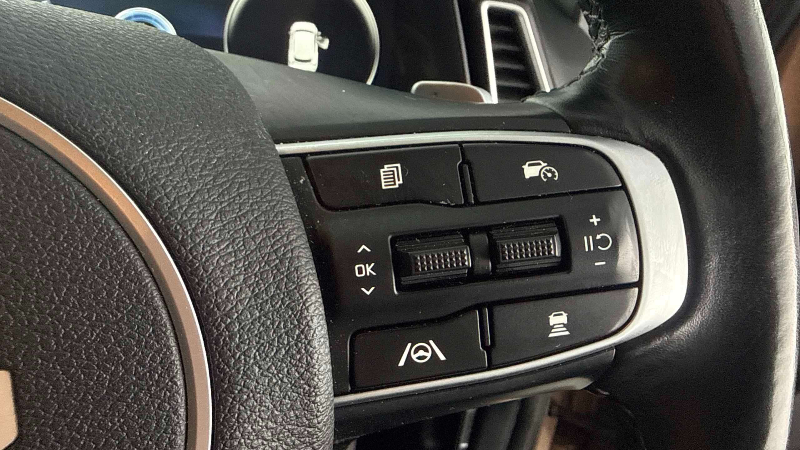 "Infotainment remote controls right side of steering wheel, telephone buttons on left side",