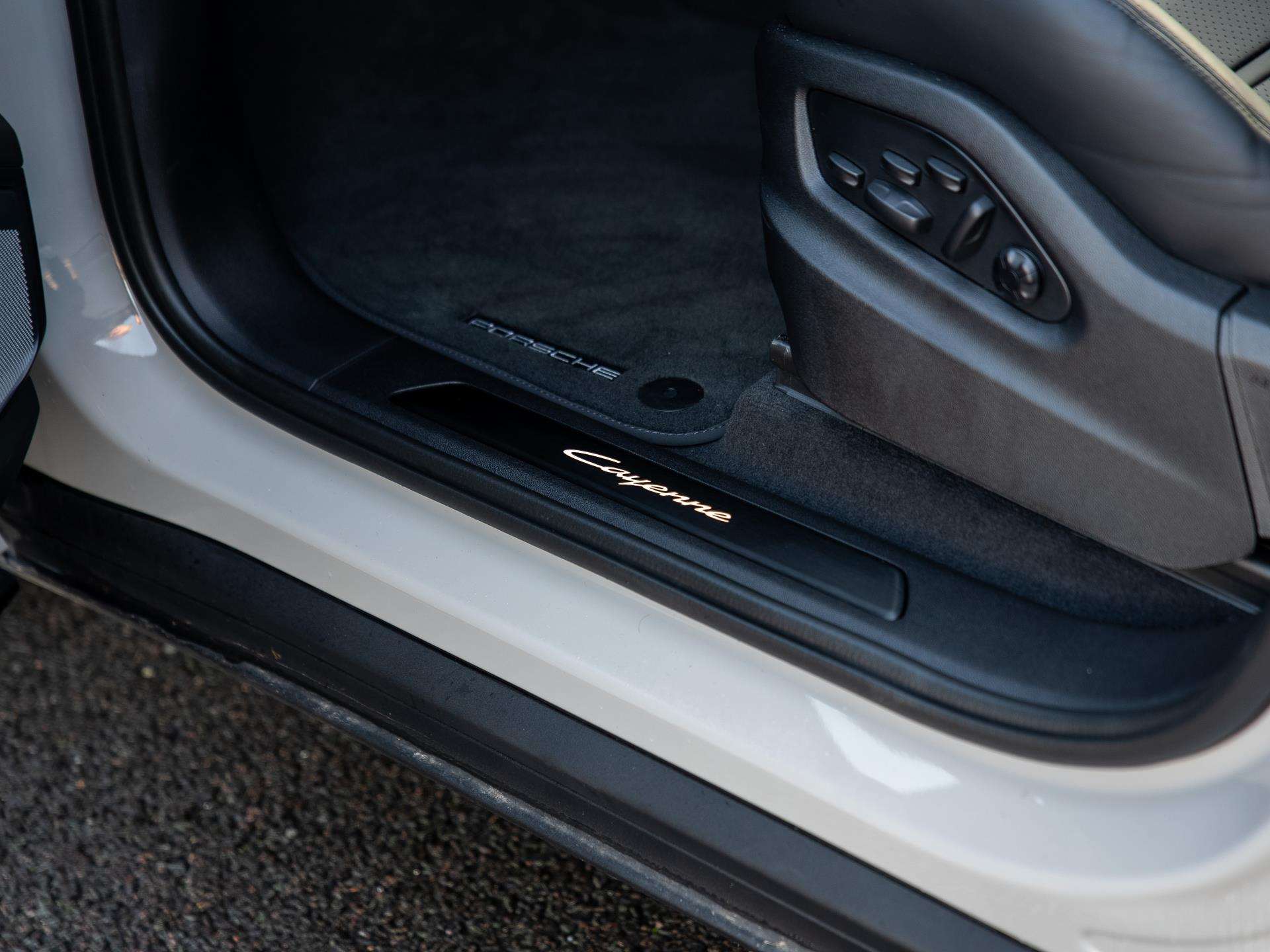 "Liquid palladium cloth inserts on door trim",