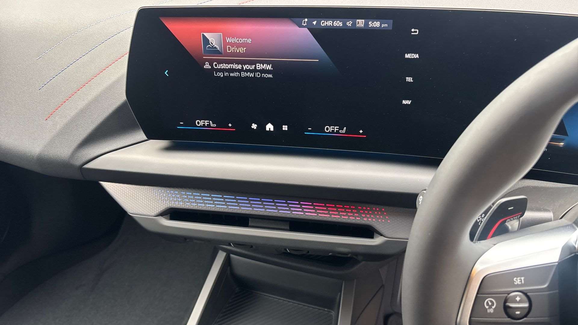 "Black dashboard strip",