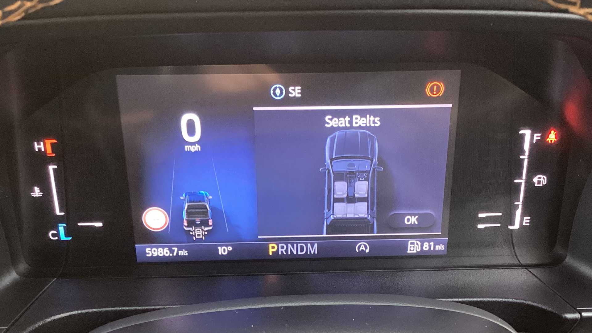 "Front seatbelt unfastened audible warning and warning light",